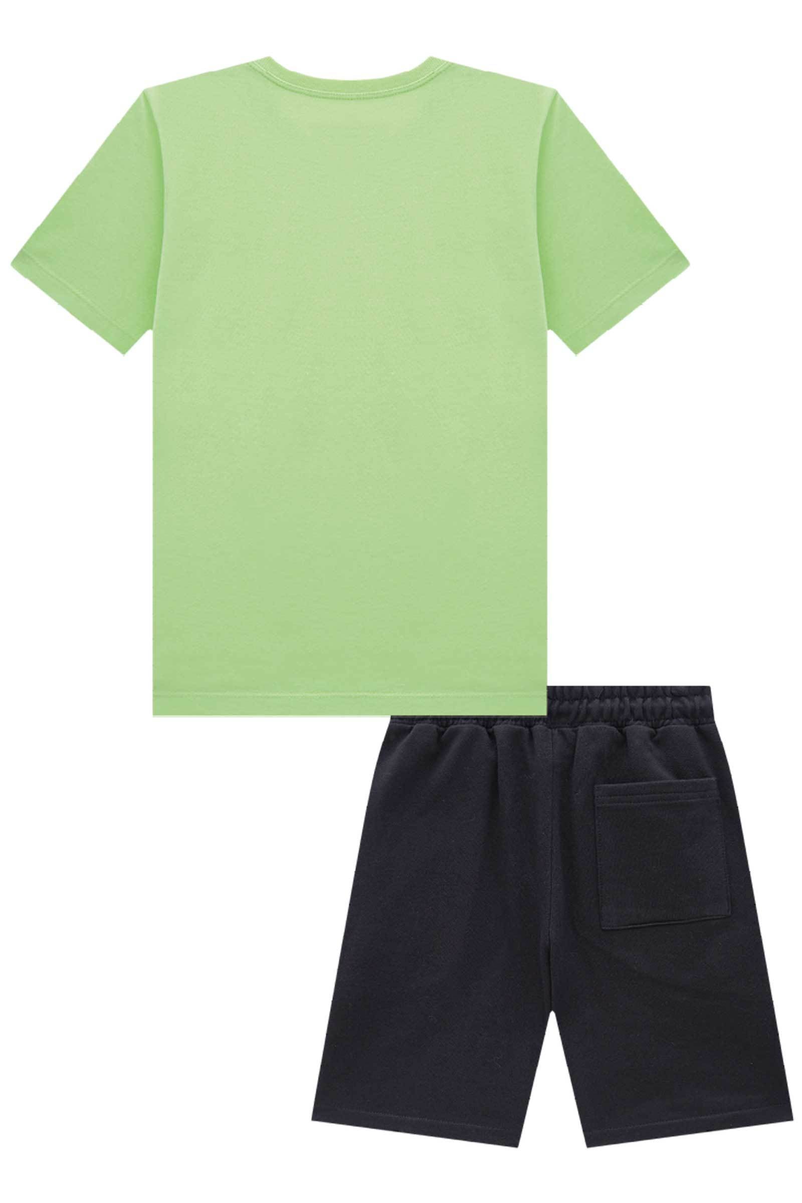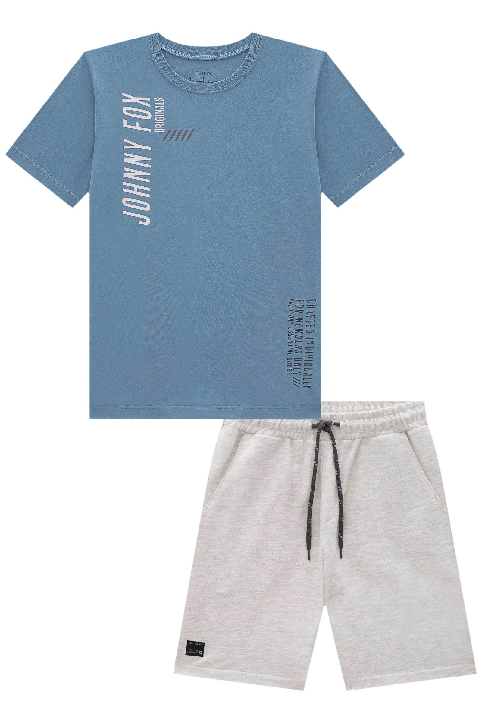 Conjunto de Camiseta em Meia Malha e Bermuda em Moletom sem Pelúcia 85073 Johnny Fox Teen Menino