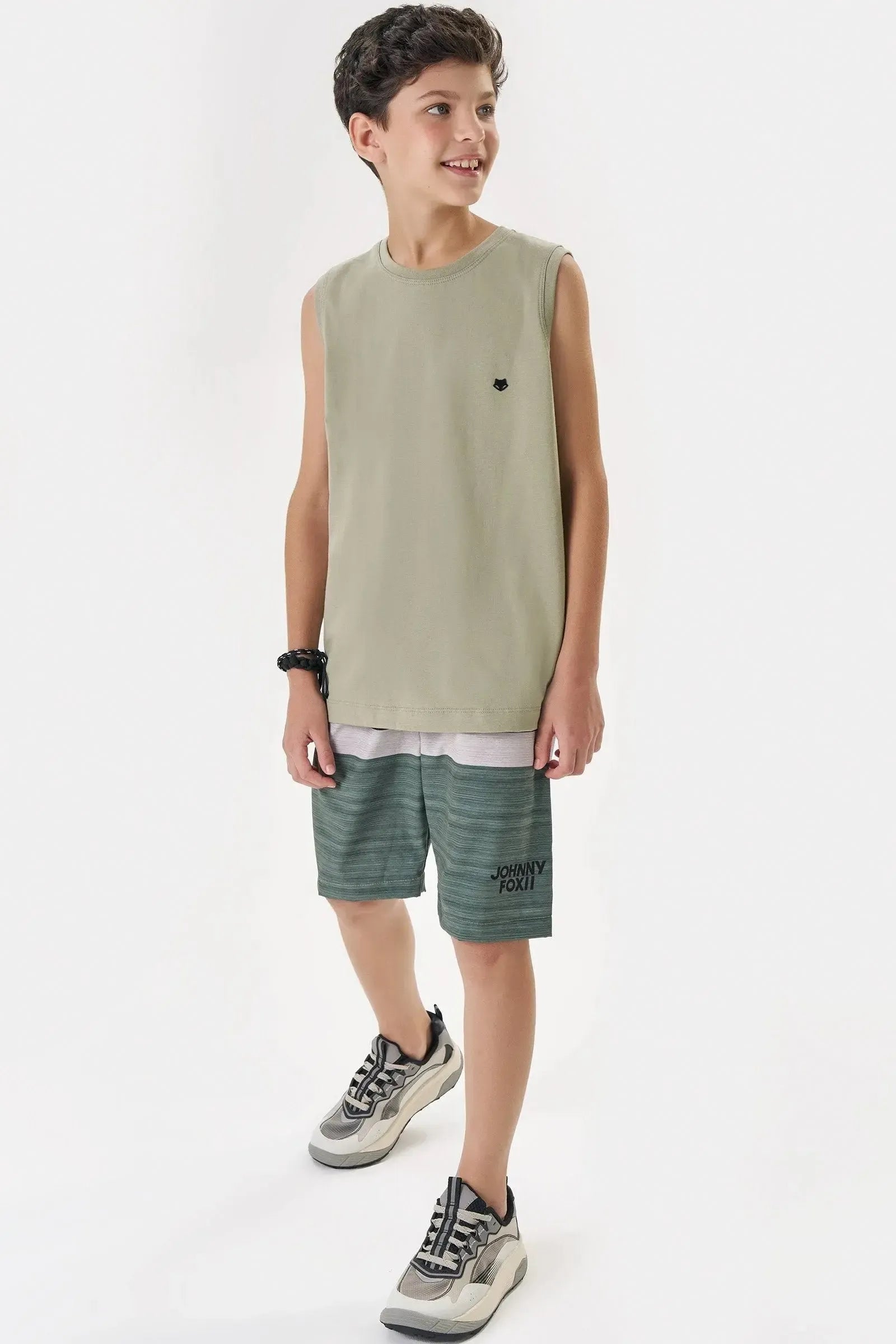 O conjunto de regata em meia malha e bermuda em nylon ergonomic com elastano, oferece um toque suave e agradável para acompanhar as aventuras dos meninos. Disponível em uma cor alegre e moderna - verde - é perfeito para combinar com diversos looks! A sublimação divertida, adiciona um charme especial à peça.