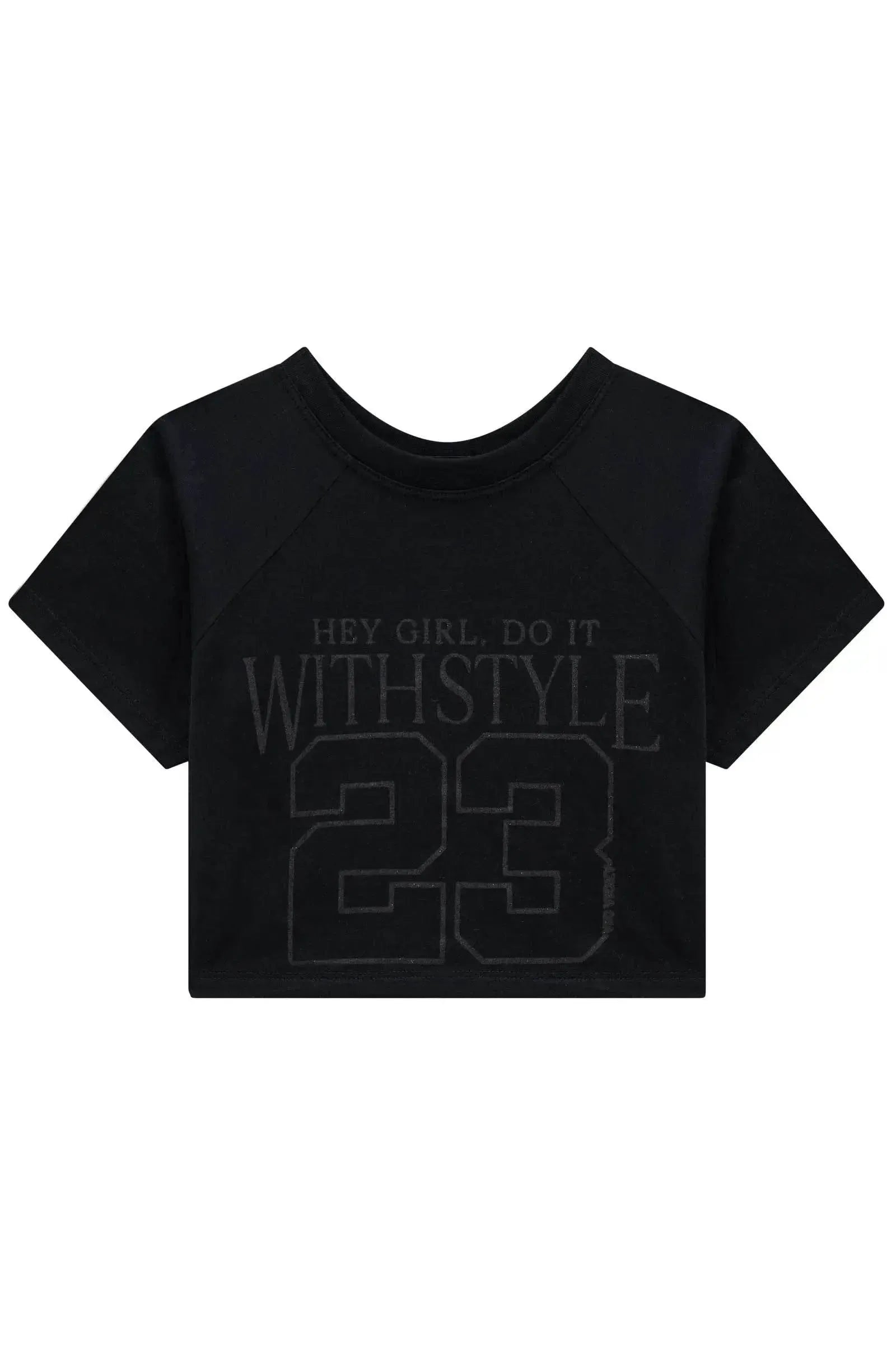 A blusa raglan cropped em meia malha, é uma peça delicada e cheia de charme, perfeita para as meninas que amam cores e brilho! disponível em uma cor super estilosa - preto - ela oferece um toque super macio e confortável, ideal para o dia a dia e para manter a pele fresquinha! A estampa em glitter, adiciona um charme especial à peça.