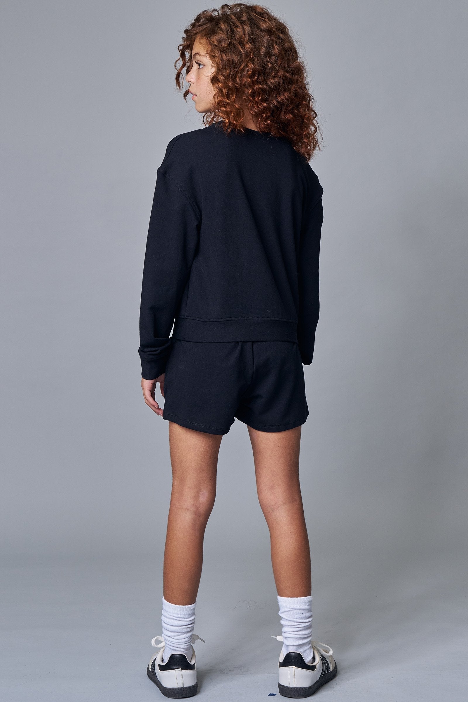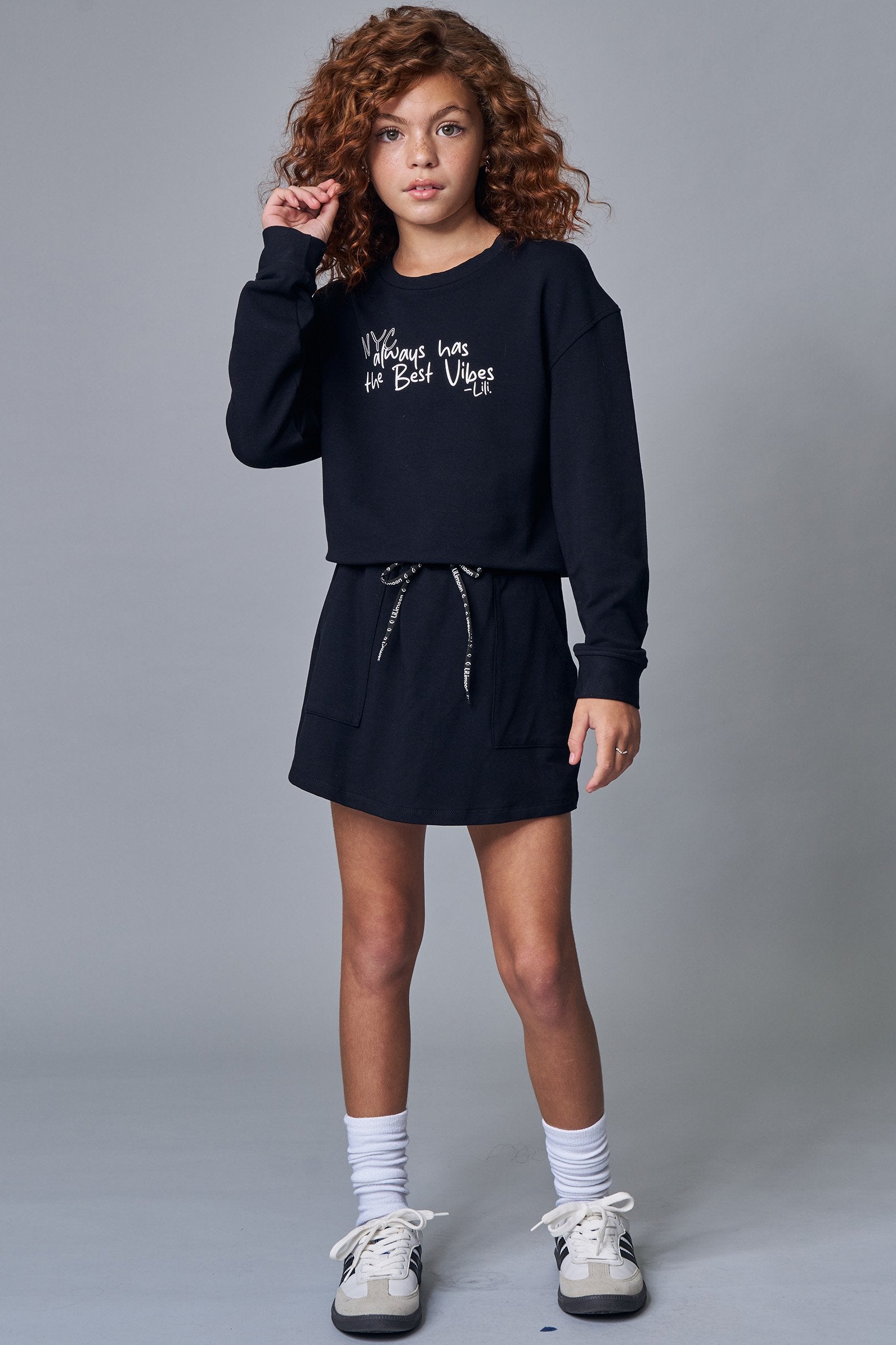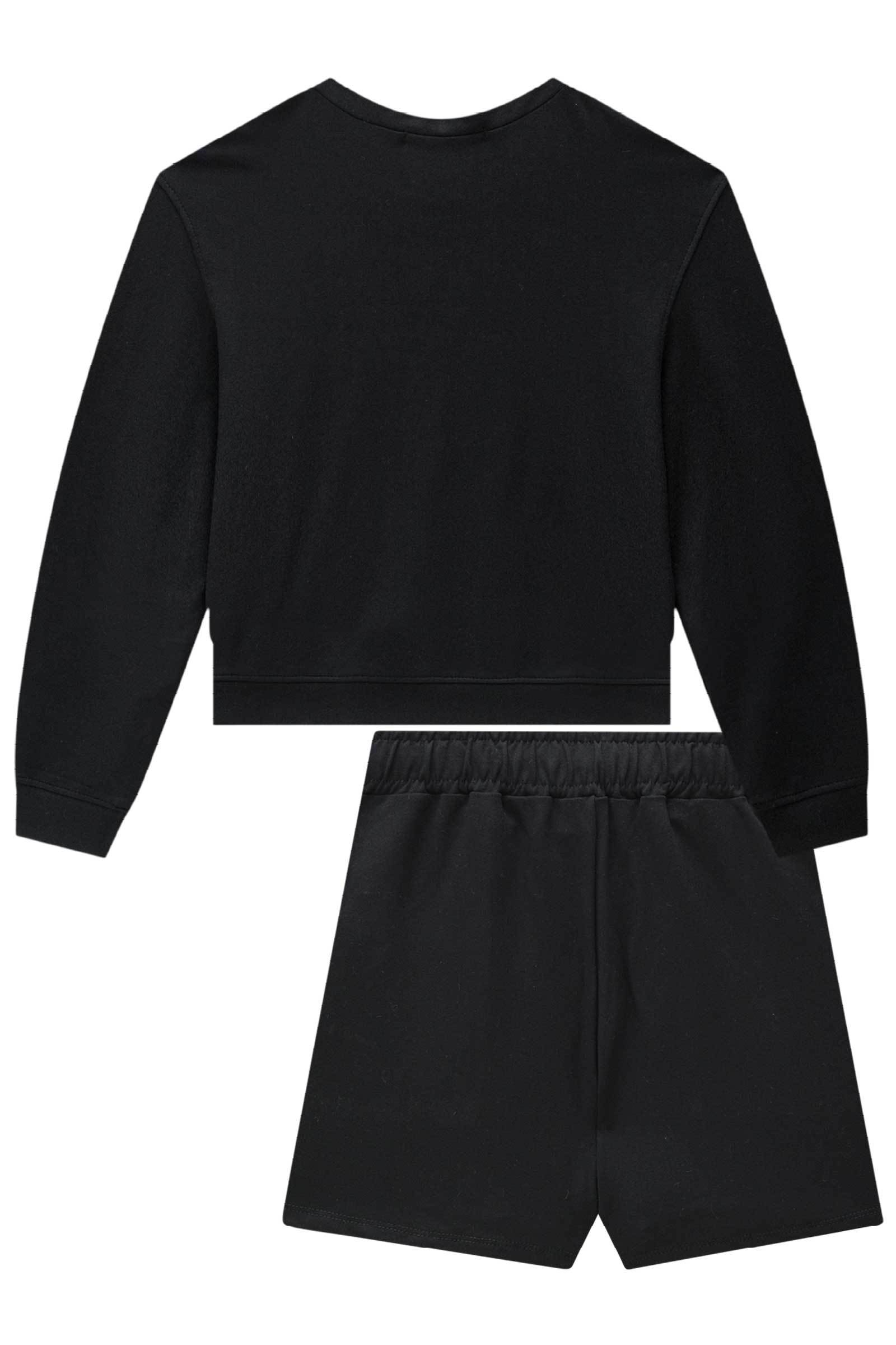 O conjunto de blusão boxy e short saia em molevisco, é a escolha perfeita para as meninas que amam um look cheio de conforto, sem abrir mão do estilo no dia à dia! Disponível em uma cor super estilosa - preto - ela é uma peça essencial, perfeita para montar diversos looks e deixar o inverno das pequenas ainda mais estiloso! A estampa divertida, adiciona um charme especial à peça.