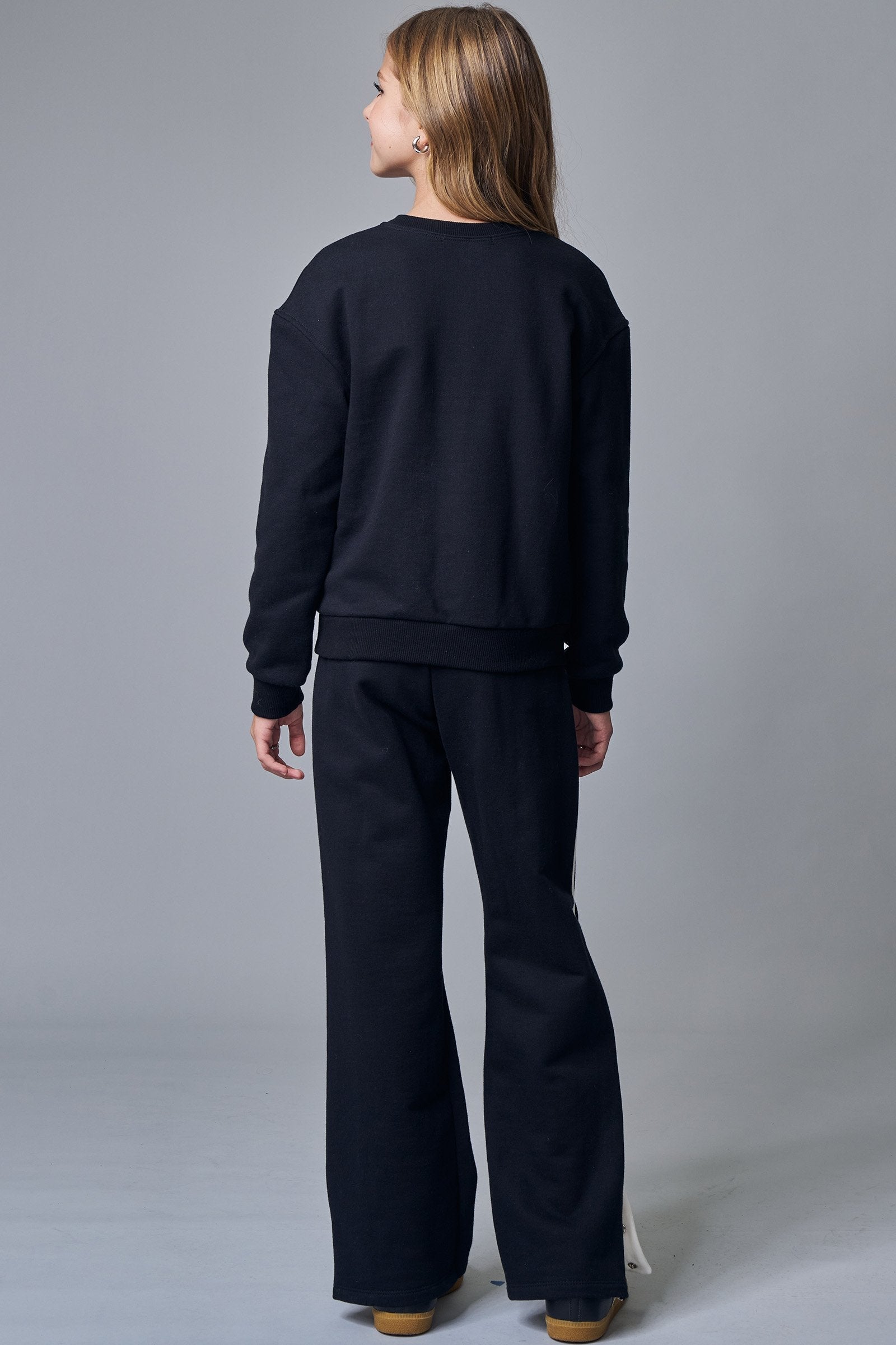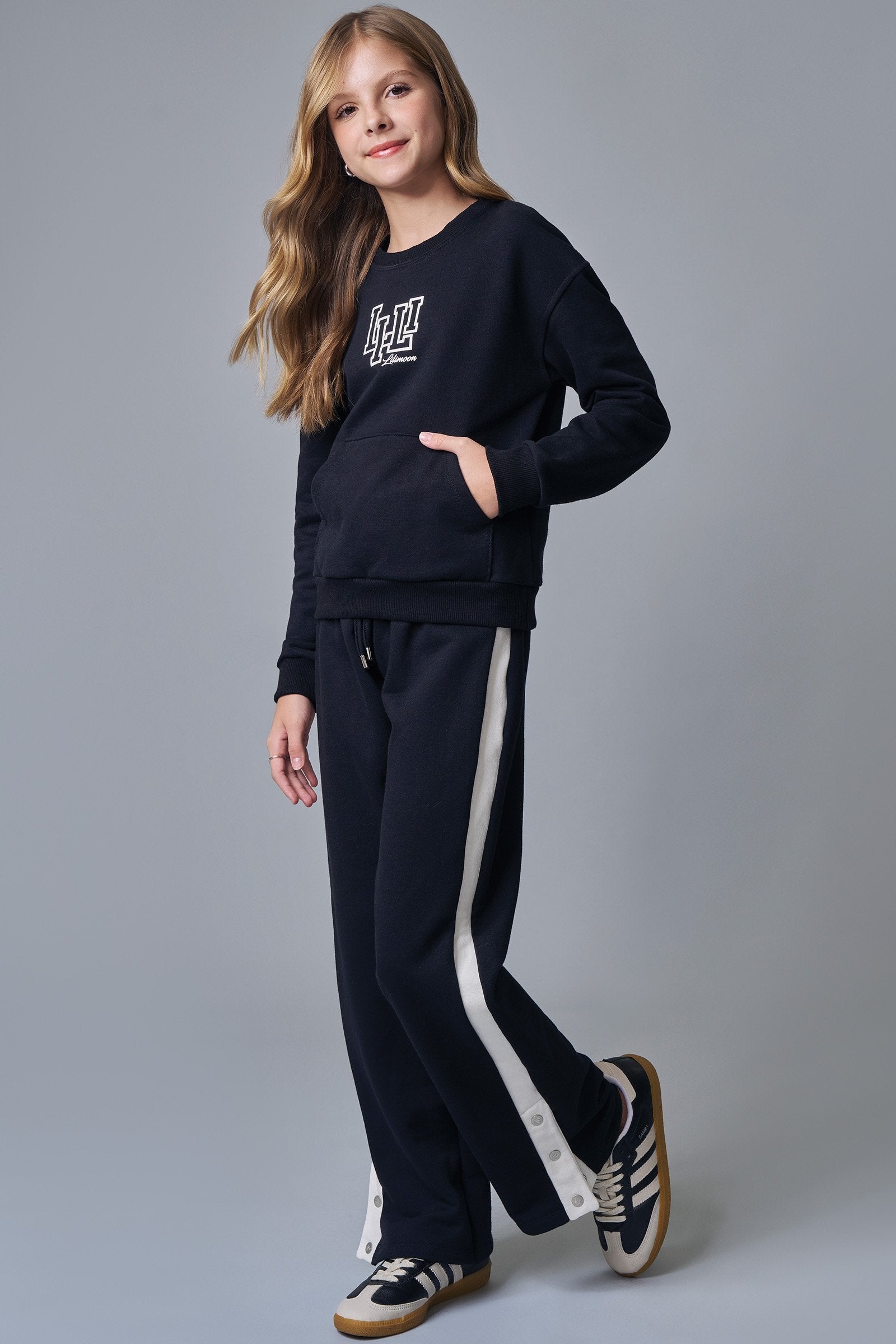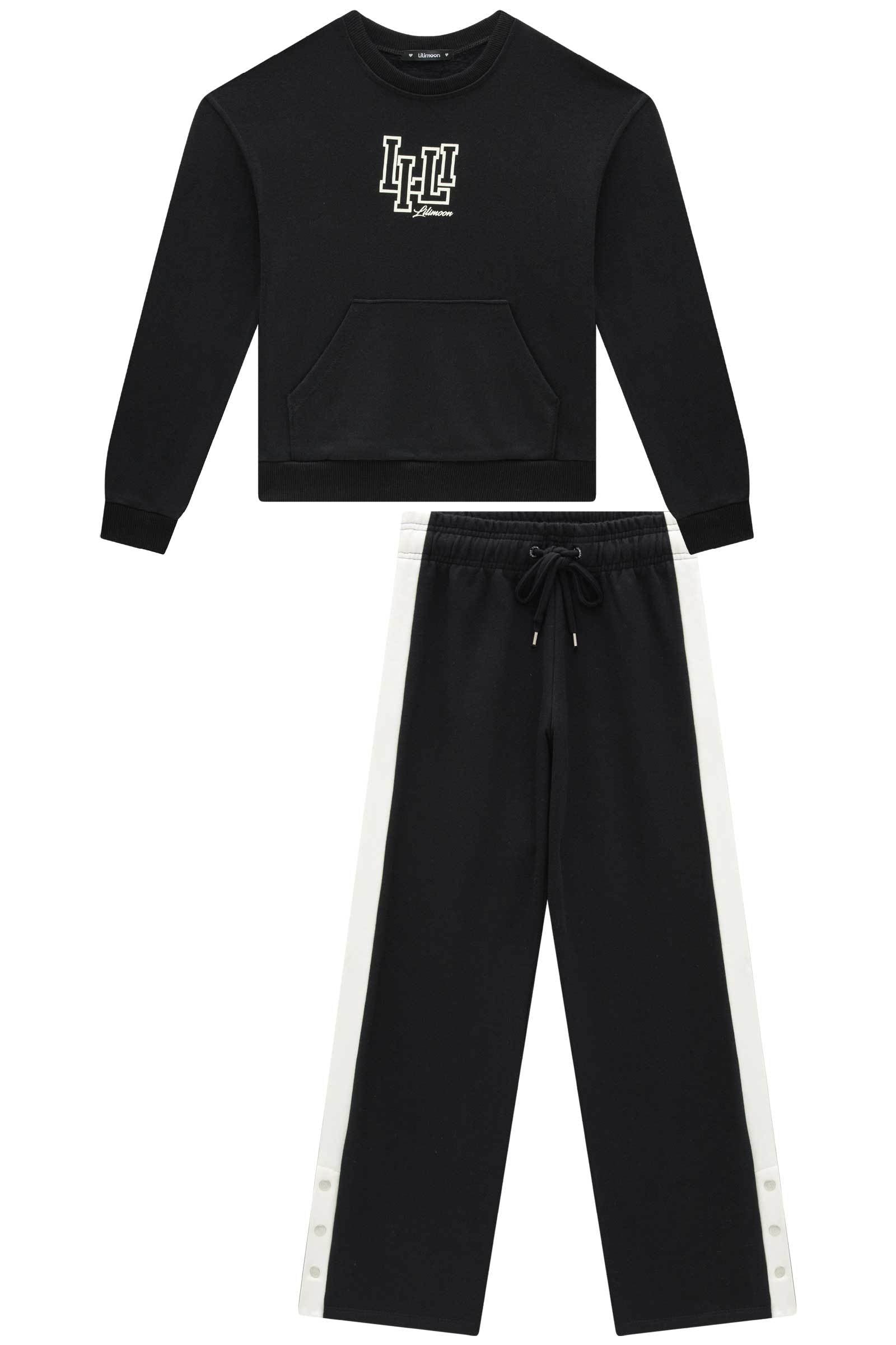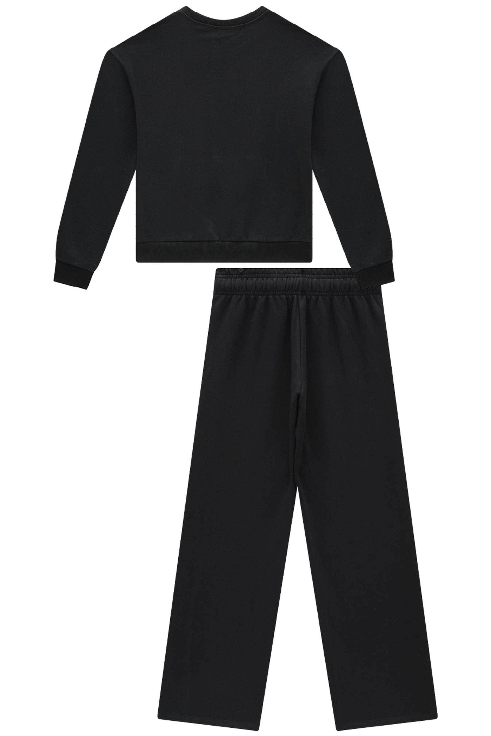 O conjunto de blusão e calça reta em moletom com pelúcia, é a escolha perfeita para as meninas que amam um look cheio de conforto, sem abrir mão do estilo no dia à dia! Disponível em uma cor super estilosa - preto - ela é uma peça essencial, perfeita para montar diversos looks e deixar o inverno das pequenas ainda mais estiloso! A estampa divertida, adiciona um charme especial à peça.