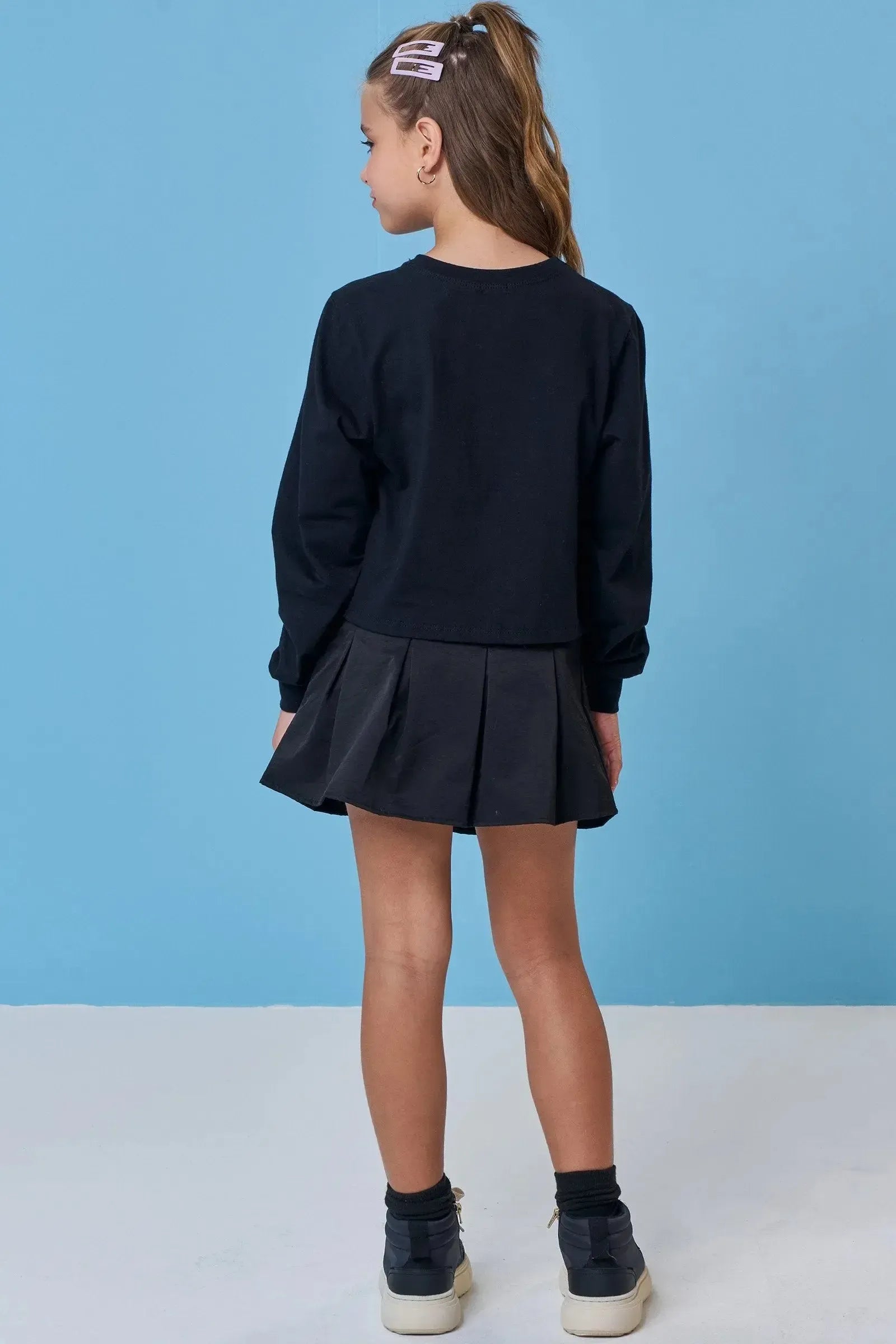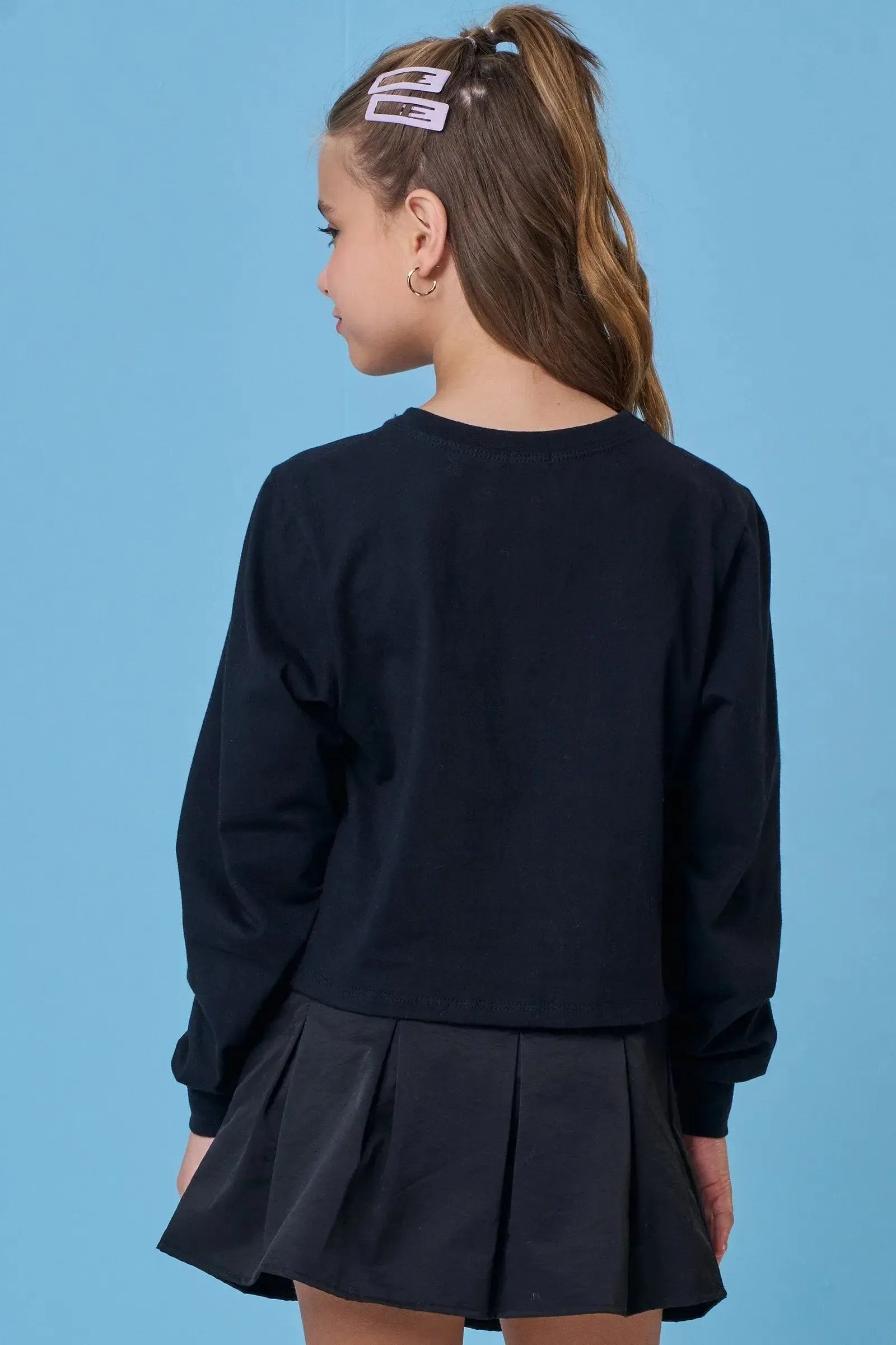 A blusa boxy over em meia malha, é a escolha perfeita para as meninas que amam um look cheio de conforto, sem abrir mão do estilo no dia à dia! Disponível em uma cor super estilosa - preto - ela é uma peça essencial, perfeita para montar diversos looks e deixar o inverno das pequenas ainda mais estiloso! A estampa divertida, adiciona um charme especial à peça.