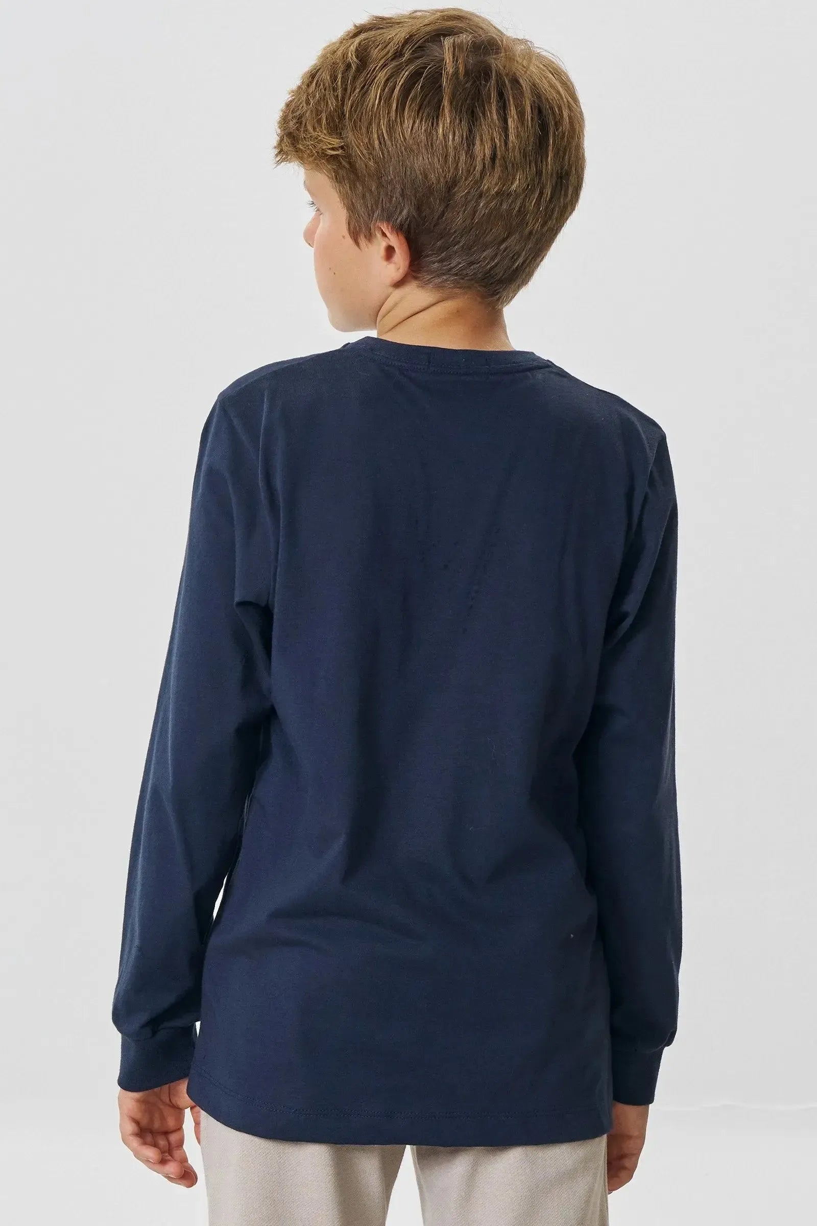 A camiseta em meia malha, é a escolha perfeita para os meninos que amam um look cheio de conforto, sem abrir mão do estilo no dia à dia! Disponível em duas cores super estilosas - cinza e marinho - ela é uma peça essencial, perfeita para montar diversos looks e deixar o inverno dos pequenos ainda mais estiloso! A estampa divertida, adiciona um charme especial à peça.