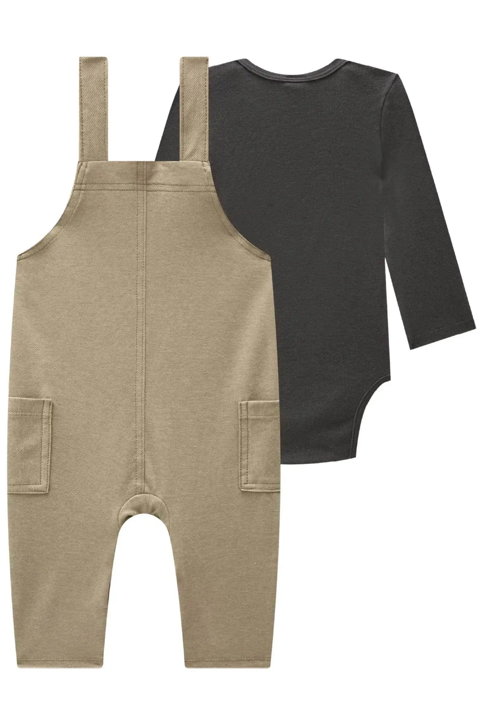O conjunto de body em ribana e jardineira em cotton jeans com elastano, é a escolha perfeita para os meninos que amam um look cheio de conforto, sem abrir mão do estilo no dia à dia! Disponível em uma cor super estilosa - bege - ela é uma peça essencial, perfeita para montar diversos looks e deixar o inverno dos pequenos ainda mais estiloso!