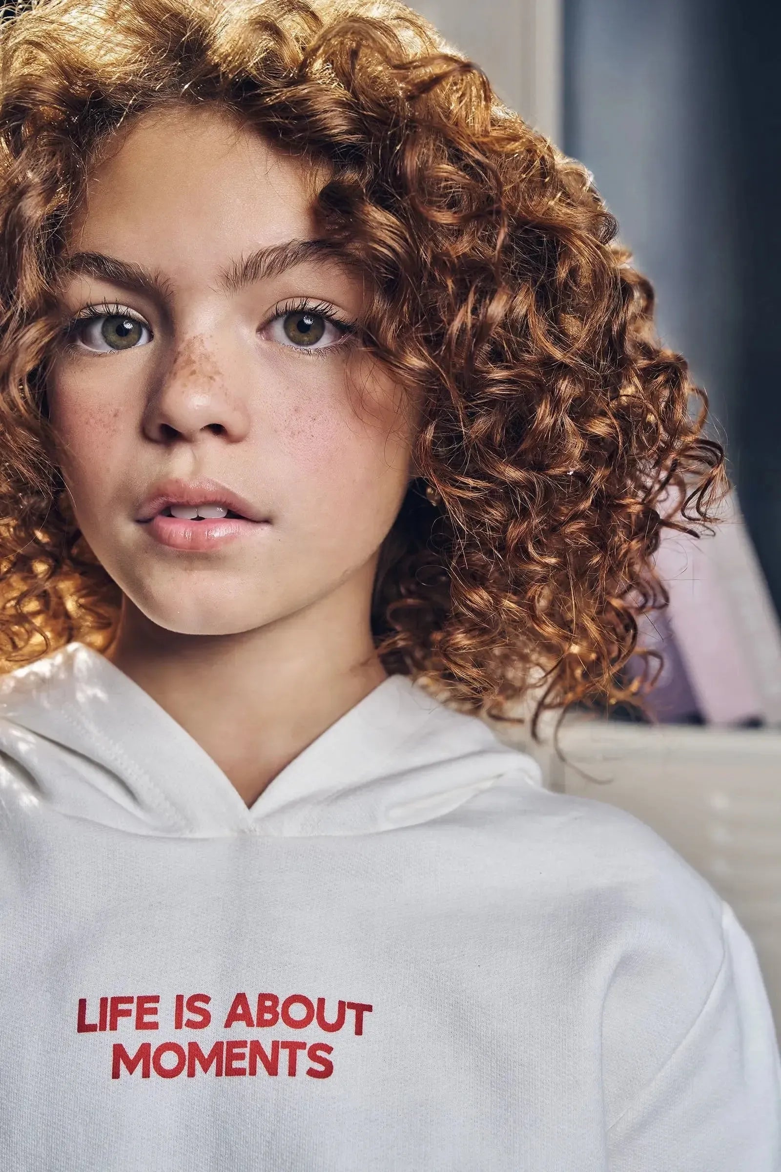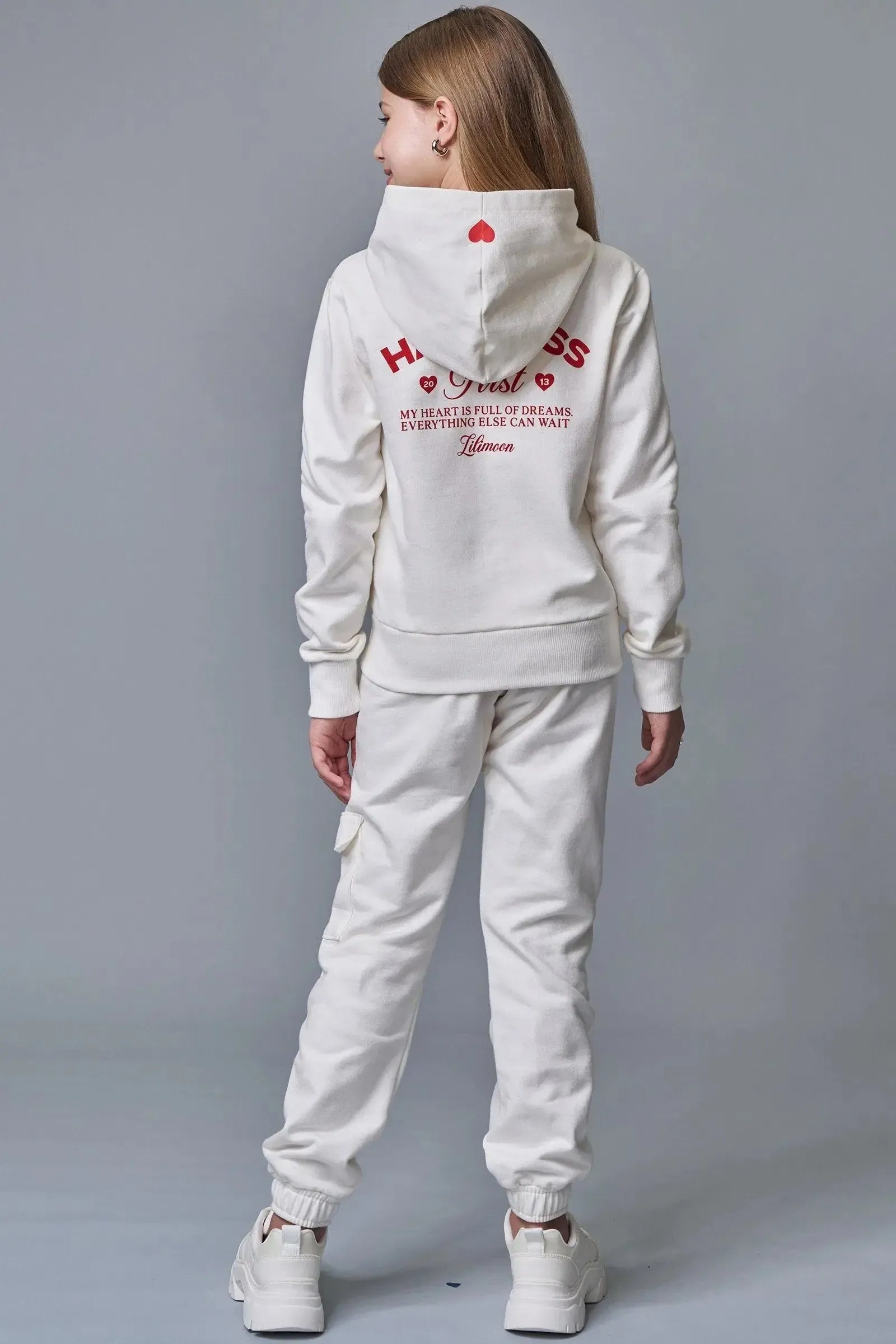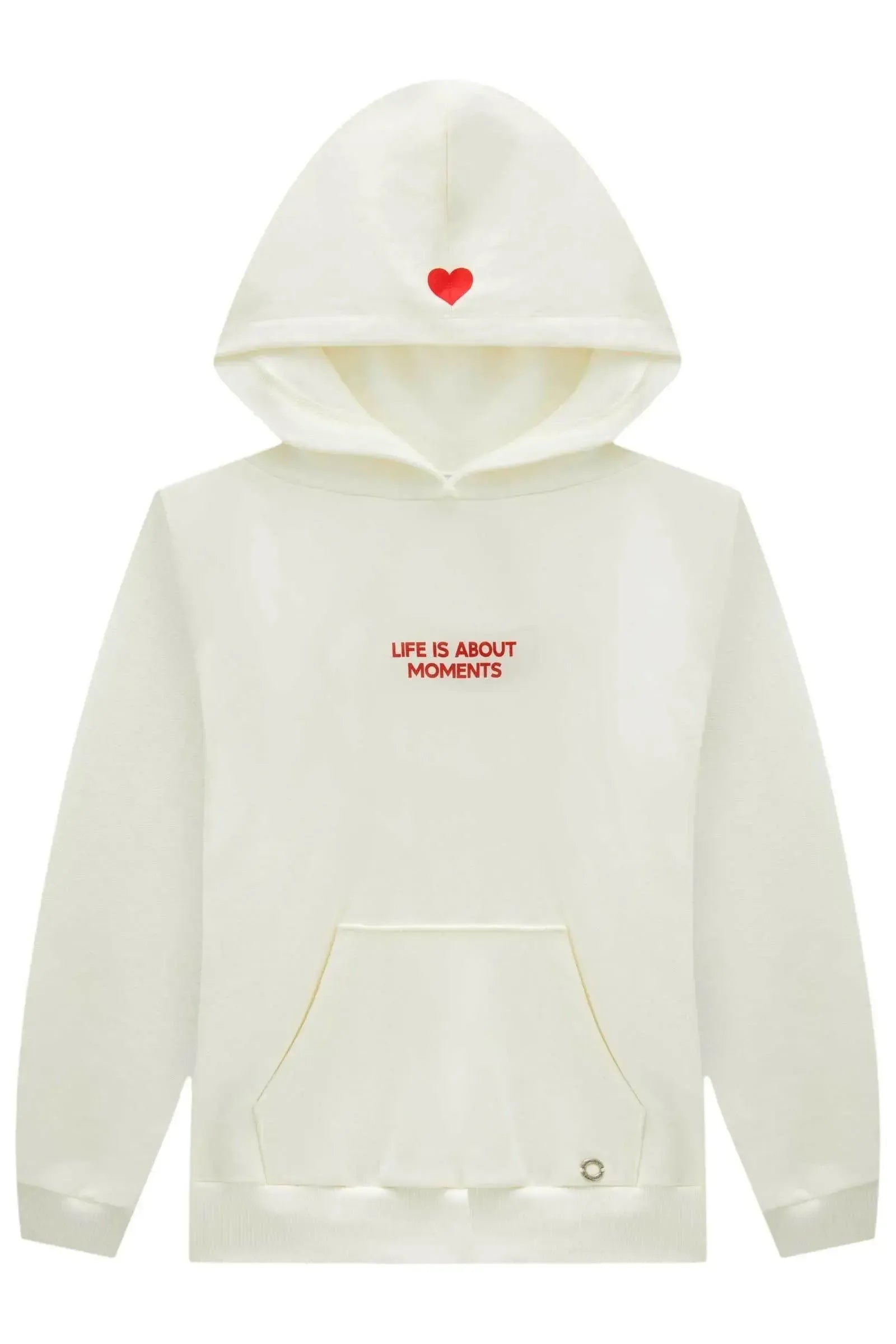 O blusão com capuz em moletom com pelúcia, é a escolha perfeita para as meninas que amam um look cheio de conforto, sem abrir mão do estilo no dia à dia! Disponível em uma cor super estilosa - off white - ela é uma peça essencial, perfeita para montar diversos looks e deixar o inverno das pequenas ainda mais estiloso! A estampa divertida, adiciona um charme especial à peça.
