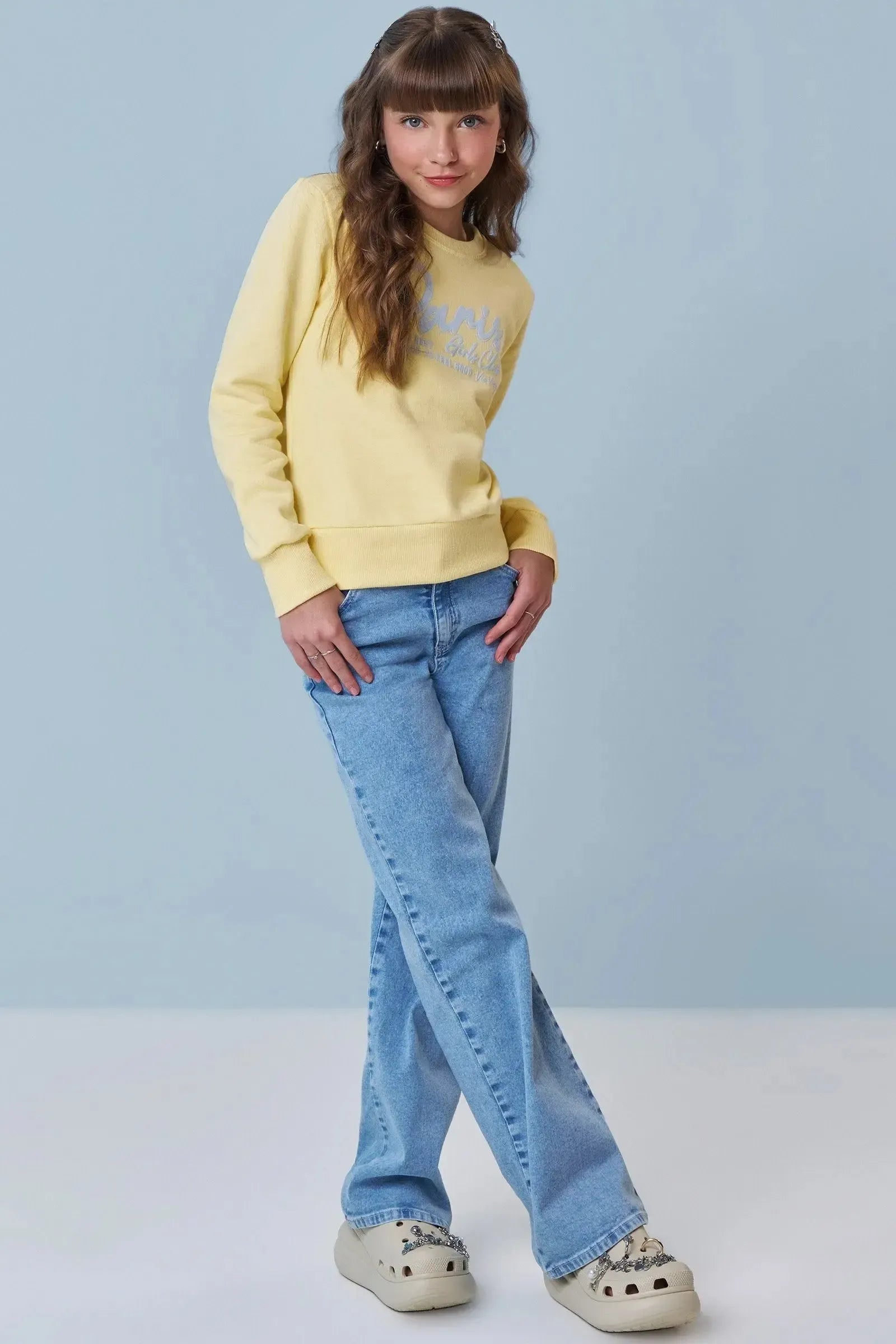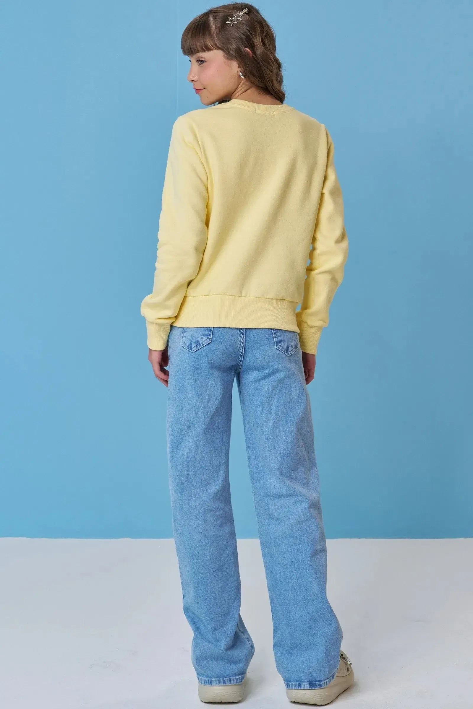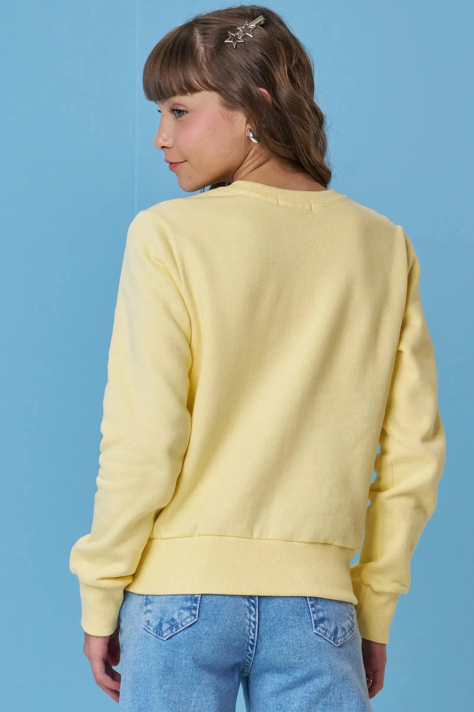 O blusão em moletom com pelúcia, é a escolha perfeita para as meninas que amam um look cheio de conforto, sem abrir mão do estilo no dia à dia! Disponível em uma cor super estilosa - amarelo - ela é uma peça essencial, perfeita para montar diversos looks e deixar o inverno das pequenas ainda mais estiloso! A estampa em puff, adiciona um charme especial à peça.