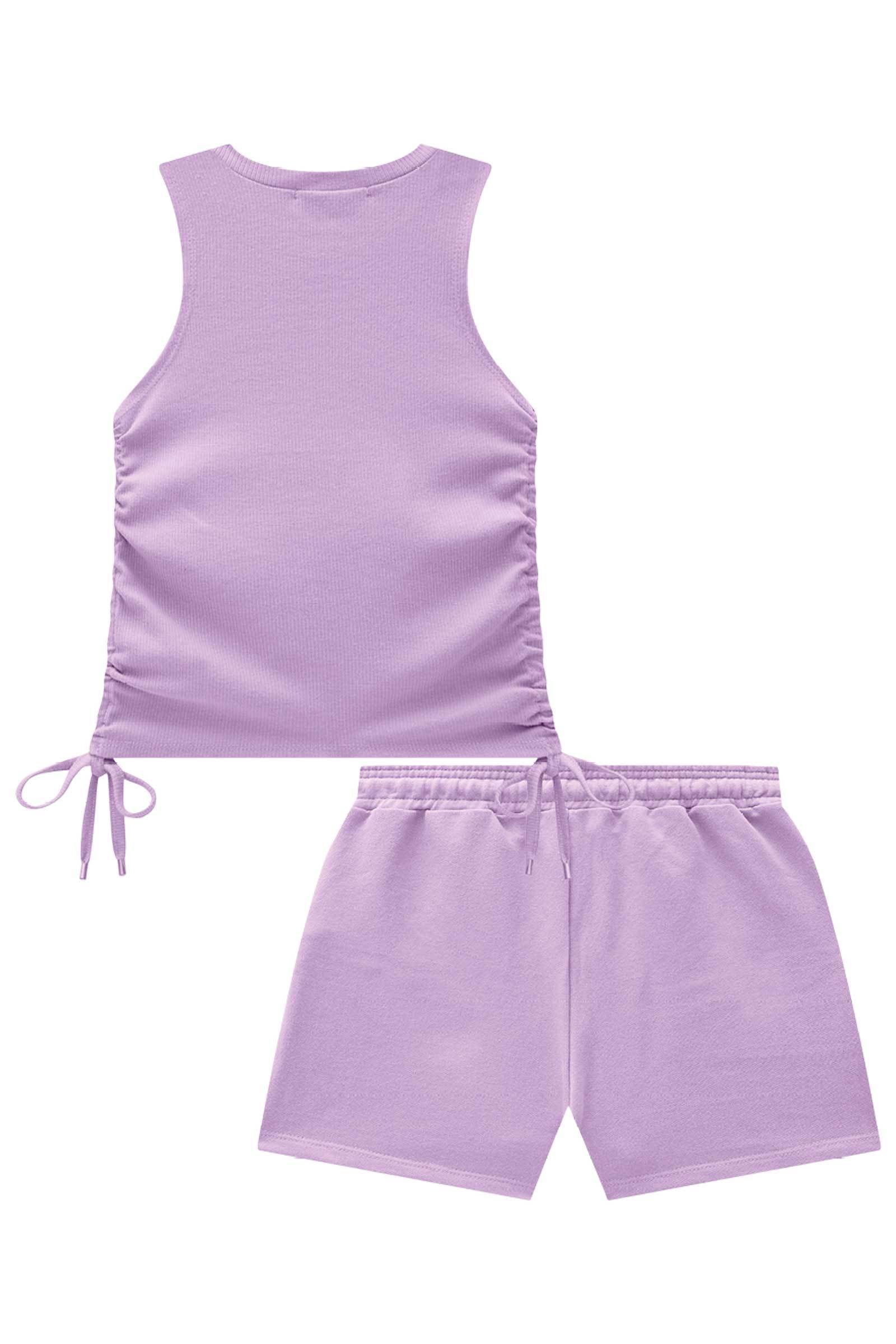 O conjunto de regata cropped em canelado e shorts em moletom sem pelúcia é perfeito para quem busca conforto, leveza e muito estilo. Disponível em duas cores super estilosas - cinza e lilás - este conjunto é a escolha ideal para os dias mais quentes. A estampa de borboleta com foil prata, adiciona um charme especial à peça.