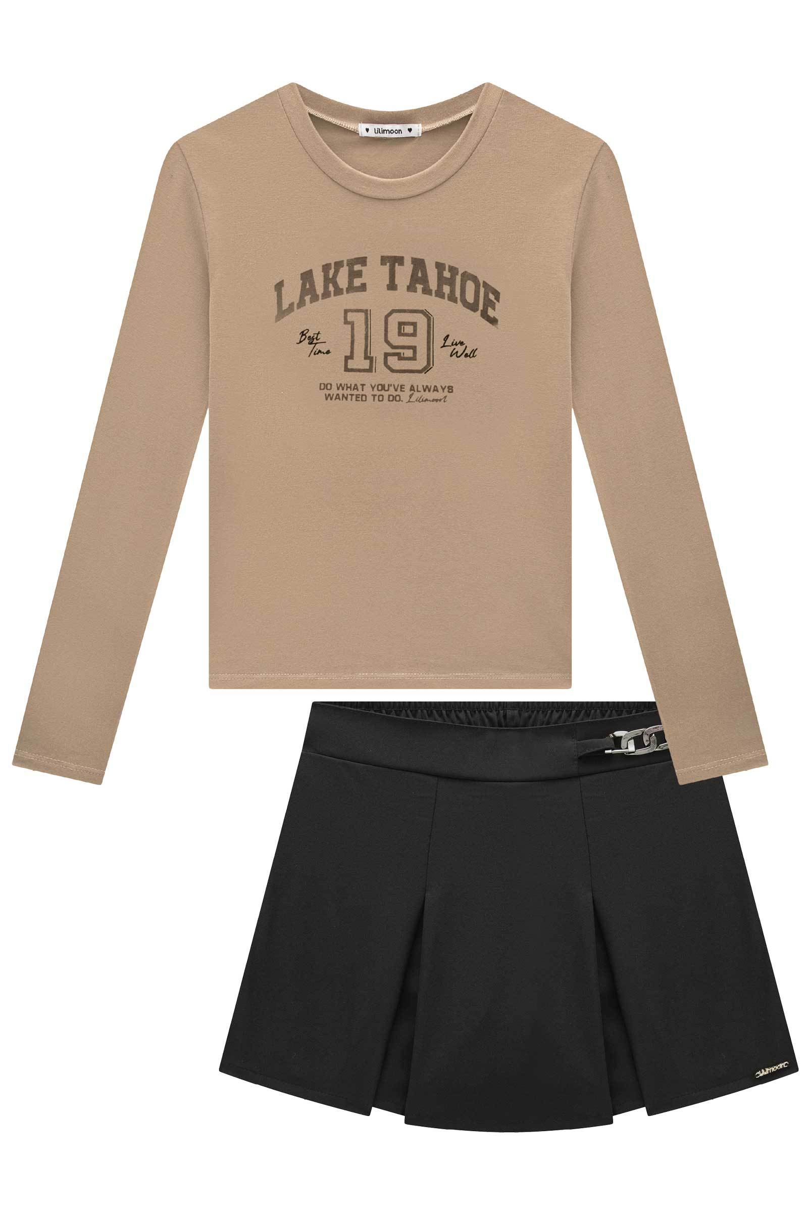 Conjunto de Blusa em Cotton e Short Saia em Alfaiataria Pergamon 90749 Lilimoon Teen Menina