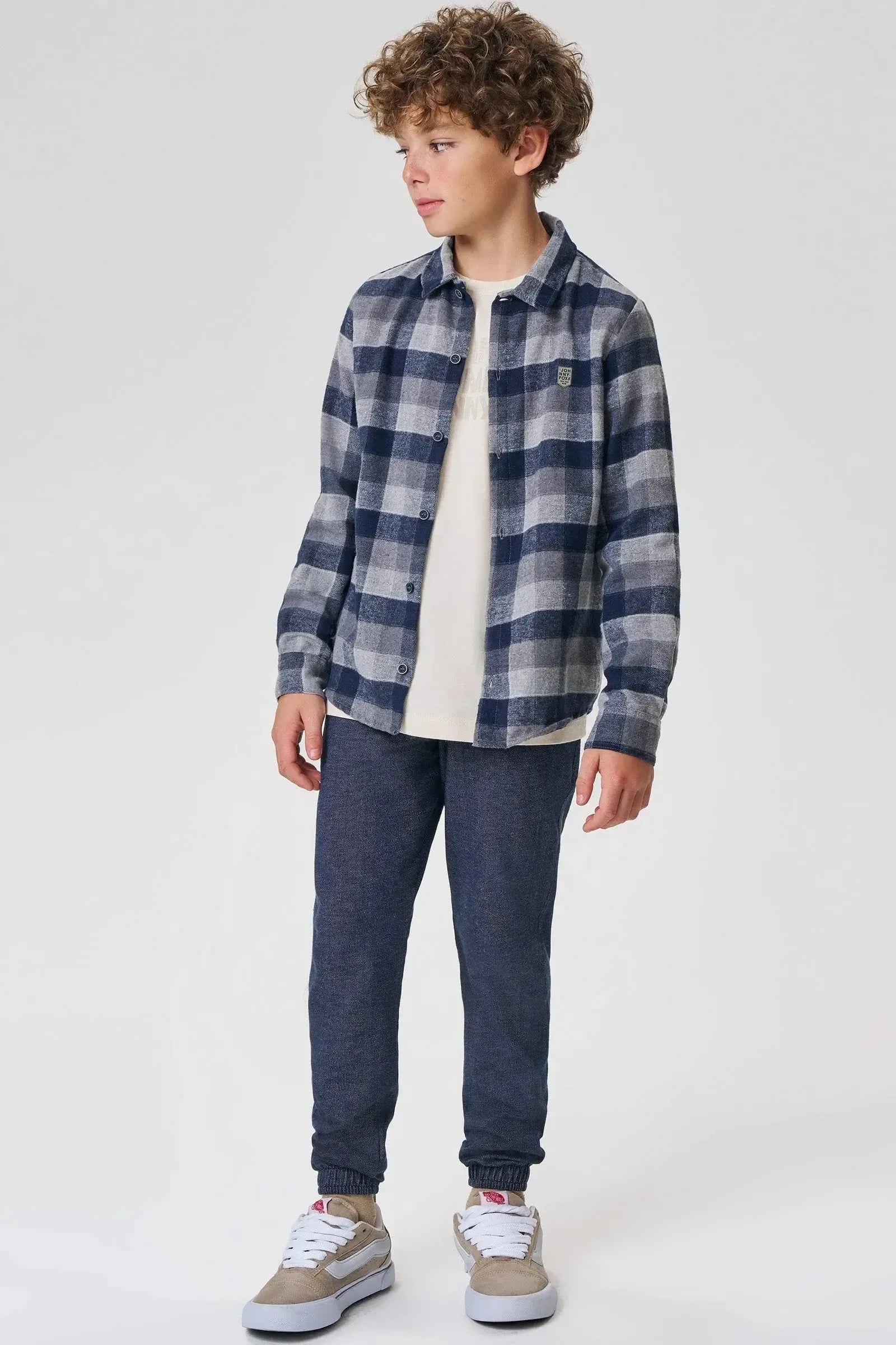 A calça jogger em malha denim com elastano, é a escolha perfeita para os meninos que amam um look cheio de conforto, sem abrir mão do estilo no dia à dia! Disponível em duas cores super estilosas - caqui e marinho - ela é uma peça essencial, perfeita para montar diversos looks e deixar o inverno dos pequenos ainda mais estiloso!