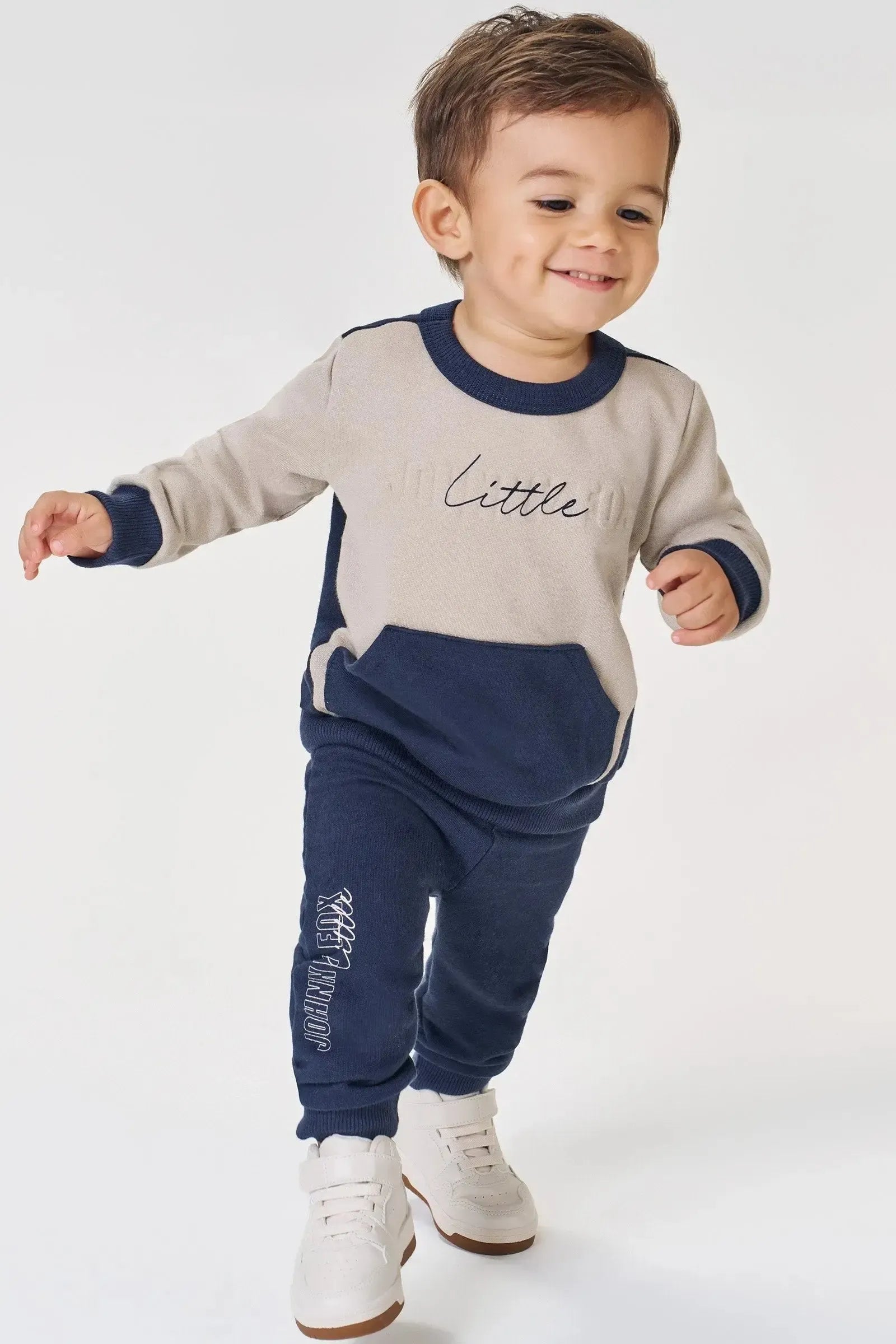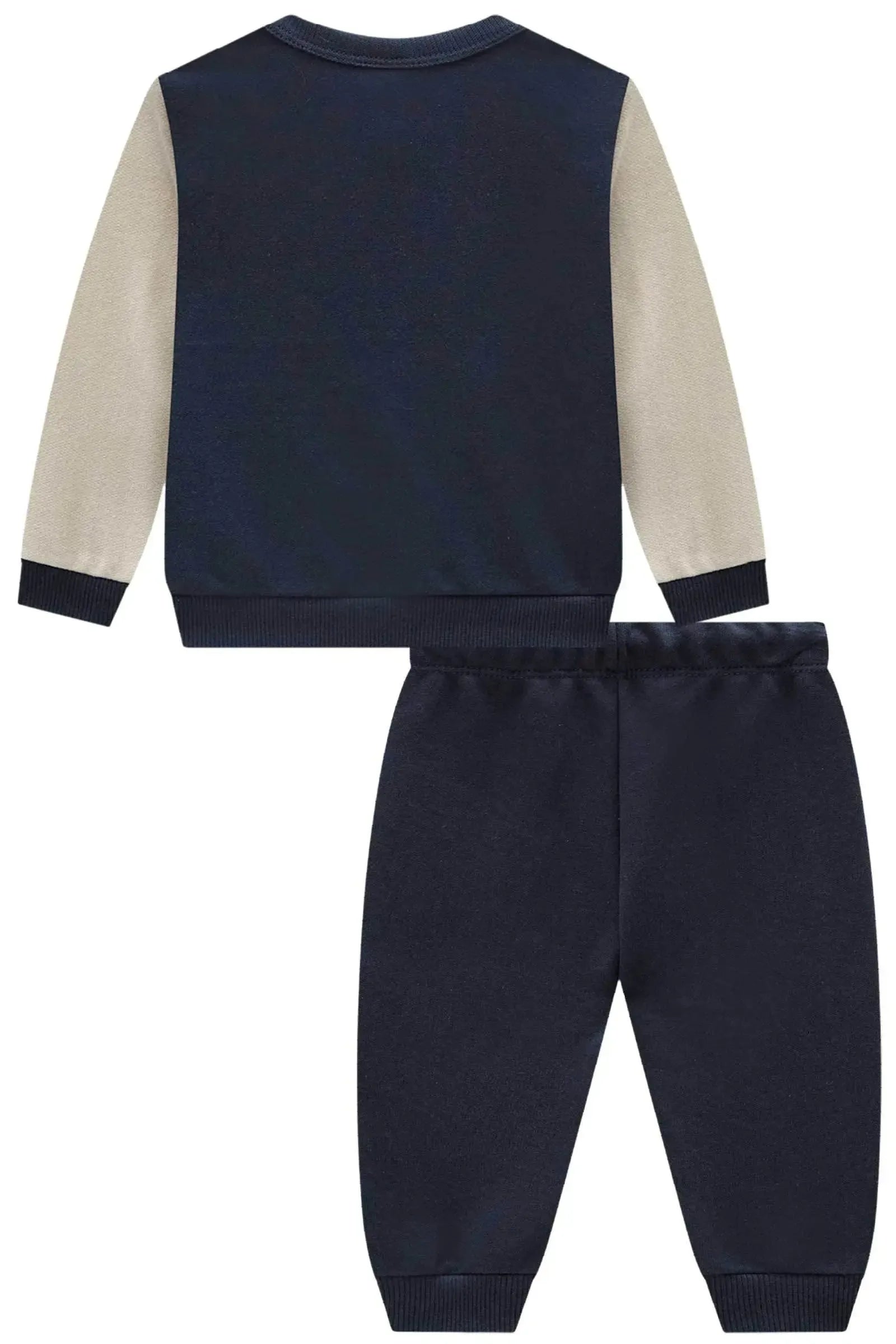 O conjunto de blusão e calça jogger em moletom sem pelúcia, é a escolha perfeita para os meninos que amam um look cheio de conforto, sem abrir mão do estilo no dia à dia! Disponível em uma cor super estilosa - marinho - ela é uma peça essencial, perfeita para montar diversos looks e deixar o inverno dos pequenos ainda mais estiloso! A estampa divertida, adiciona um charme especial à peça.
