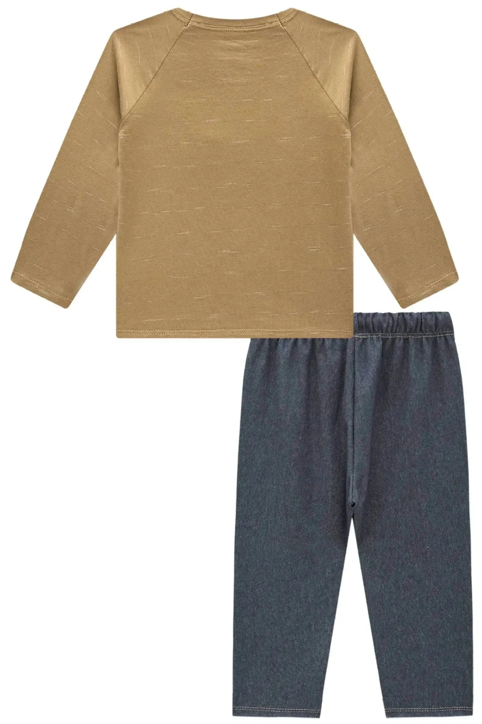 O conjunto de camiseta em malha jet e calça comfy em cotton jeans com elastano, é a escolha perfeita para os meninos que amam um look cheio de conforto, sem abrir mão do estilo no dia à dia! Disponível em uma cor super estilosa - bege - ela é uma peça essencial, perfeita para montar diversos looks e deixar o inverno dos pequenos ainda mais estiloso! A estampa divertida, adiciona um charme especial à peça.
