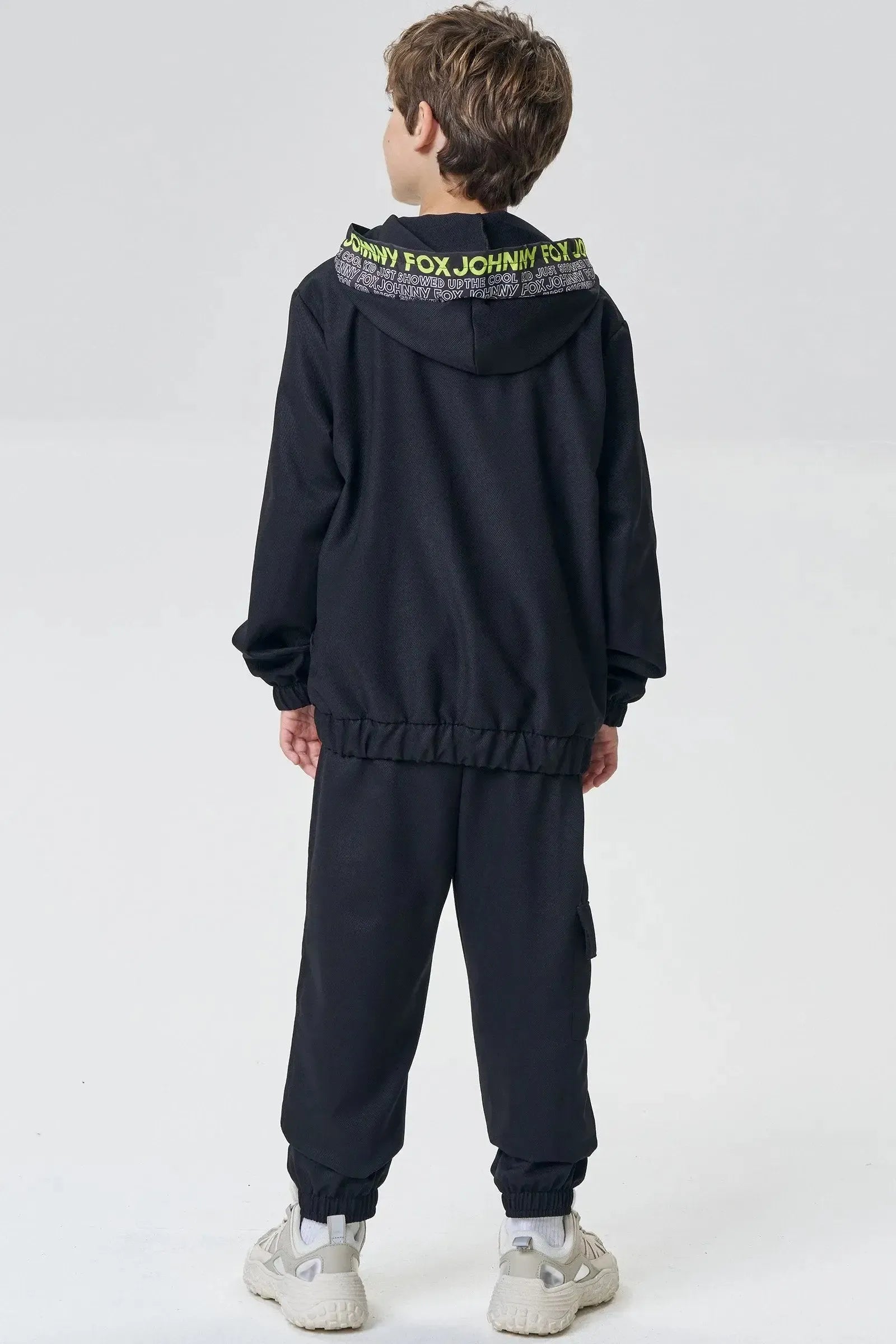 O conjunto de jaqueta e calça jogger em hidronatic com elastano, é a escolha perfeita para os meninos que amam um look cheio de conforto, sem abrir mão do estilo no dia à dia! Disponível em uma cor super estilosa - preto - ela é uma peça essencial, perfeita para montar diversos looks e deixar o inverno dos pequenos ainda mais estiloso! A sublimação divertida, adiciona um charme especial à peça.