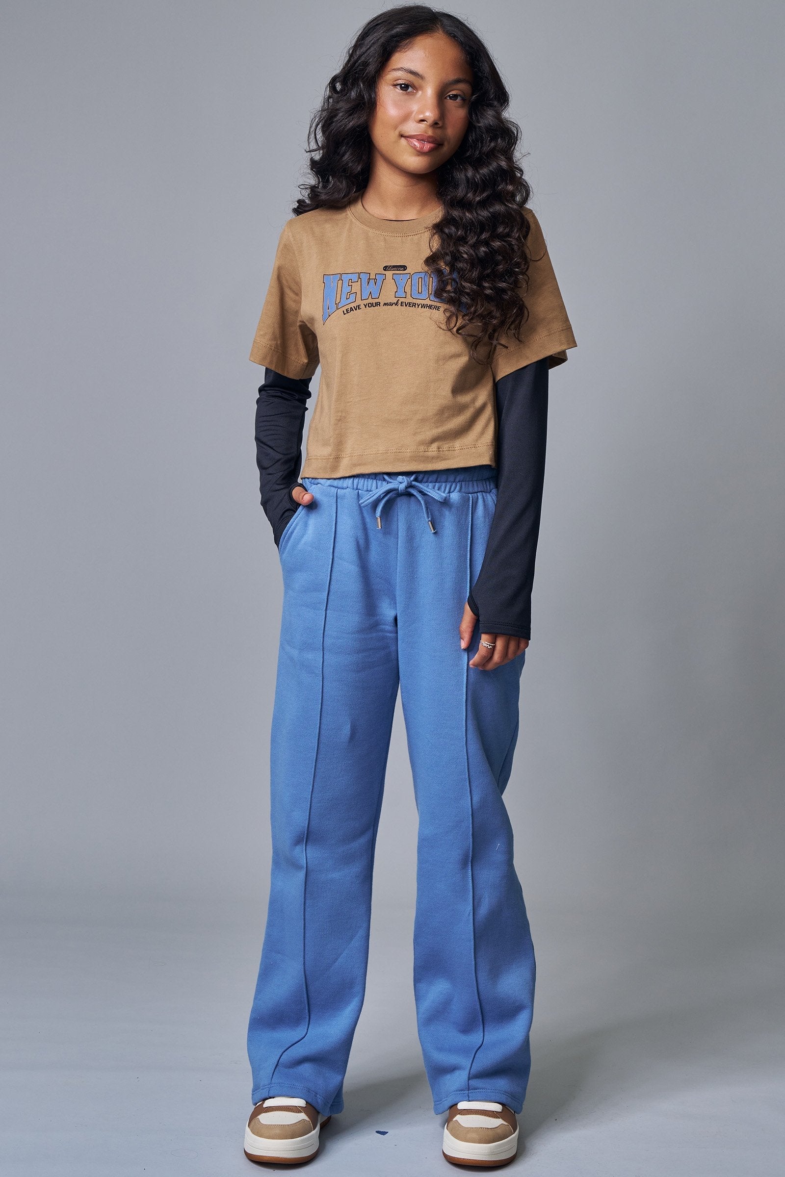 A calça wide leg em moletom com pelúcia, é a escolha perfeita para as meninas que amam um look cheio de conforto, sem abrir mão do estilo no dia à dia! Disponível em duas cores super estilosas - azul e preto - ela é uma peça essencial, perfeita para montar diversos looks e deixar o inverno das pequenas ainda mais estiloso!