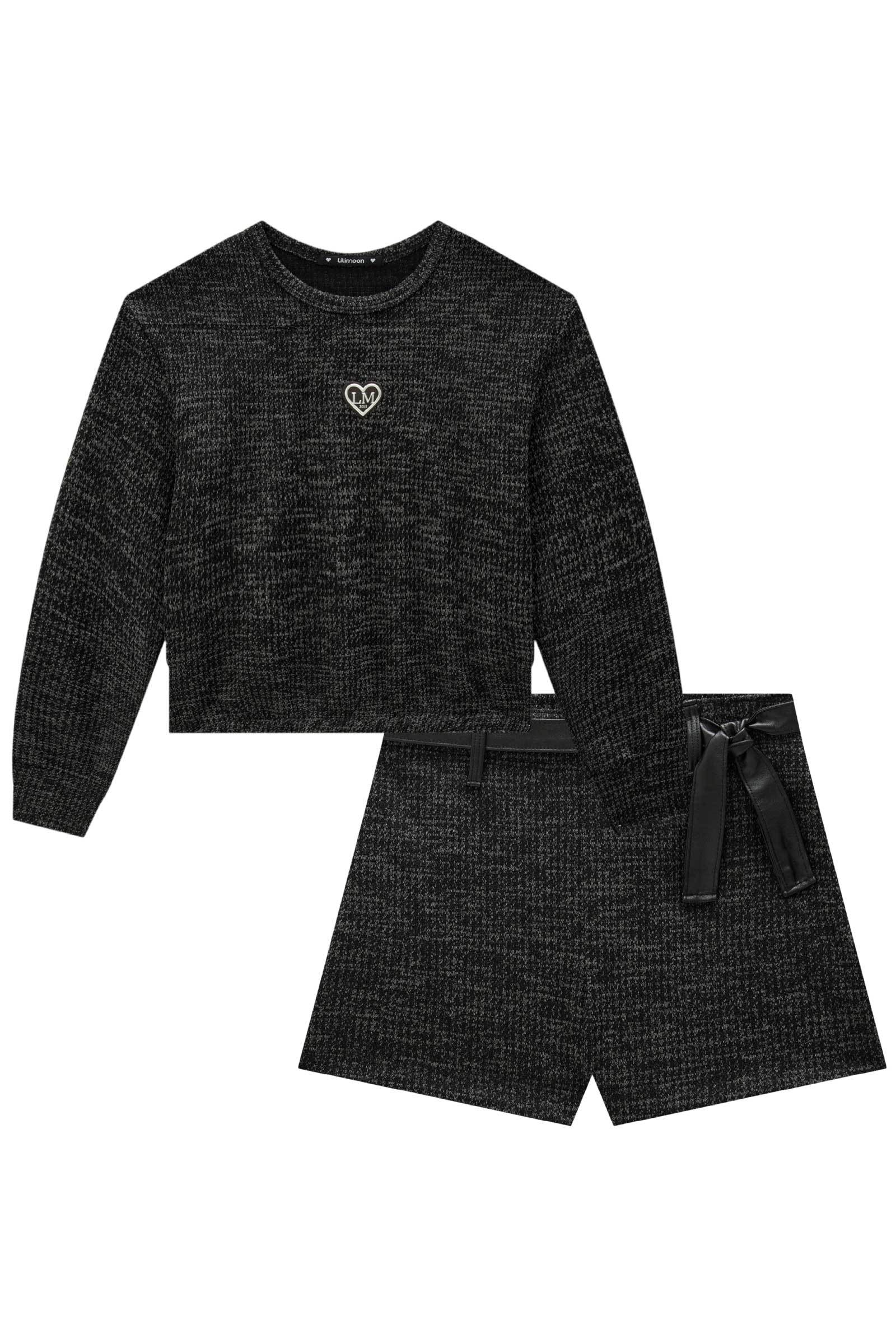 O conjunto de blusa boxy e shorts em tweed drika, é a escolha perfeita para as meninas que amam um look cheio de conforto, sem abrir mão do estilo no dia à dia! Disponível em uma cor super estilosa - cinza - ela é uma peça essencial, perfeita para montar diversos looks e deixar o inverno das pequenas ainda mais estiloso! O aviamento personalizado, adiciona um charme especial à peça.