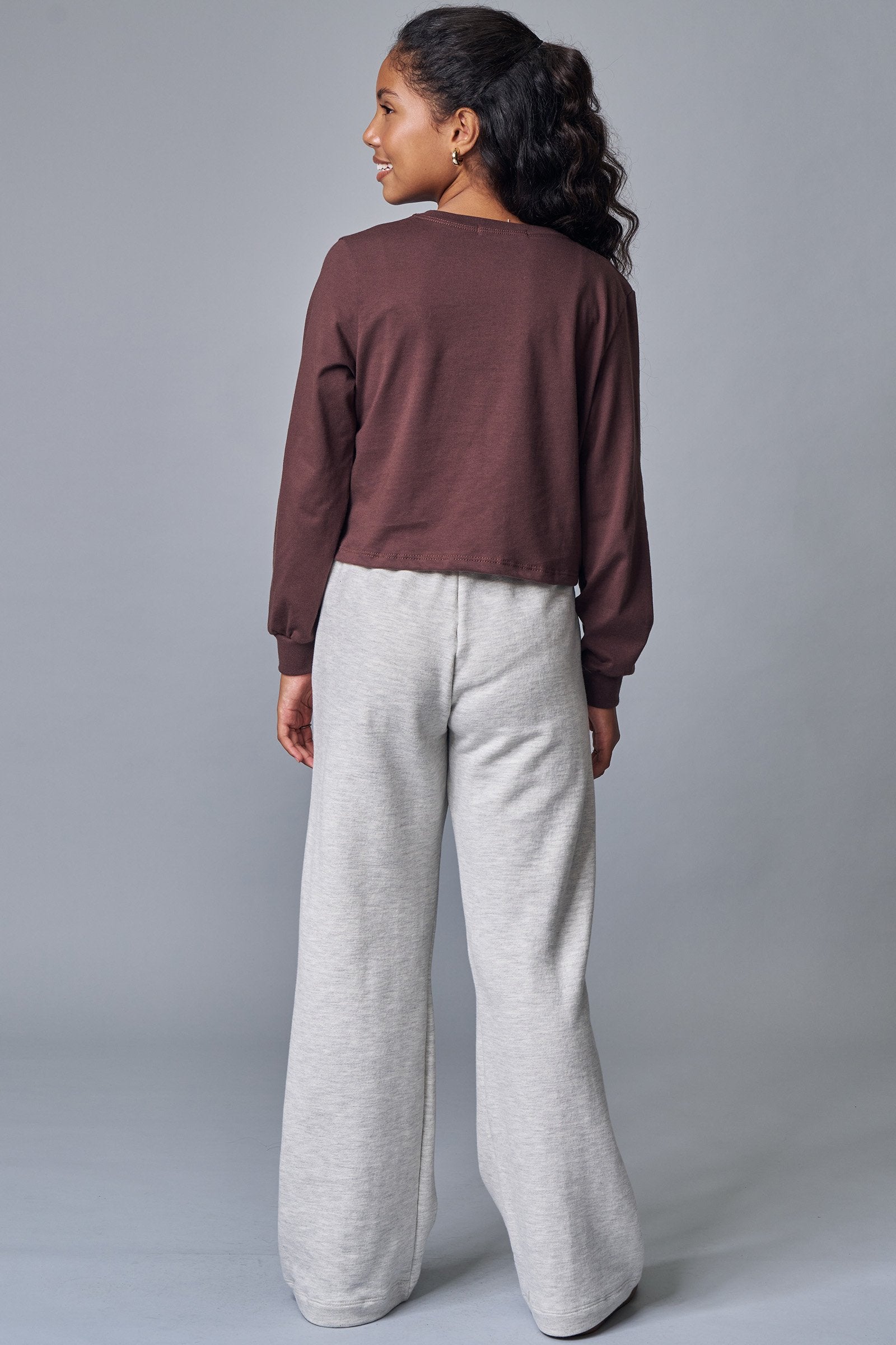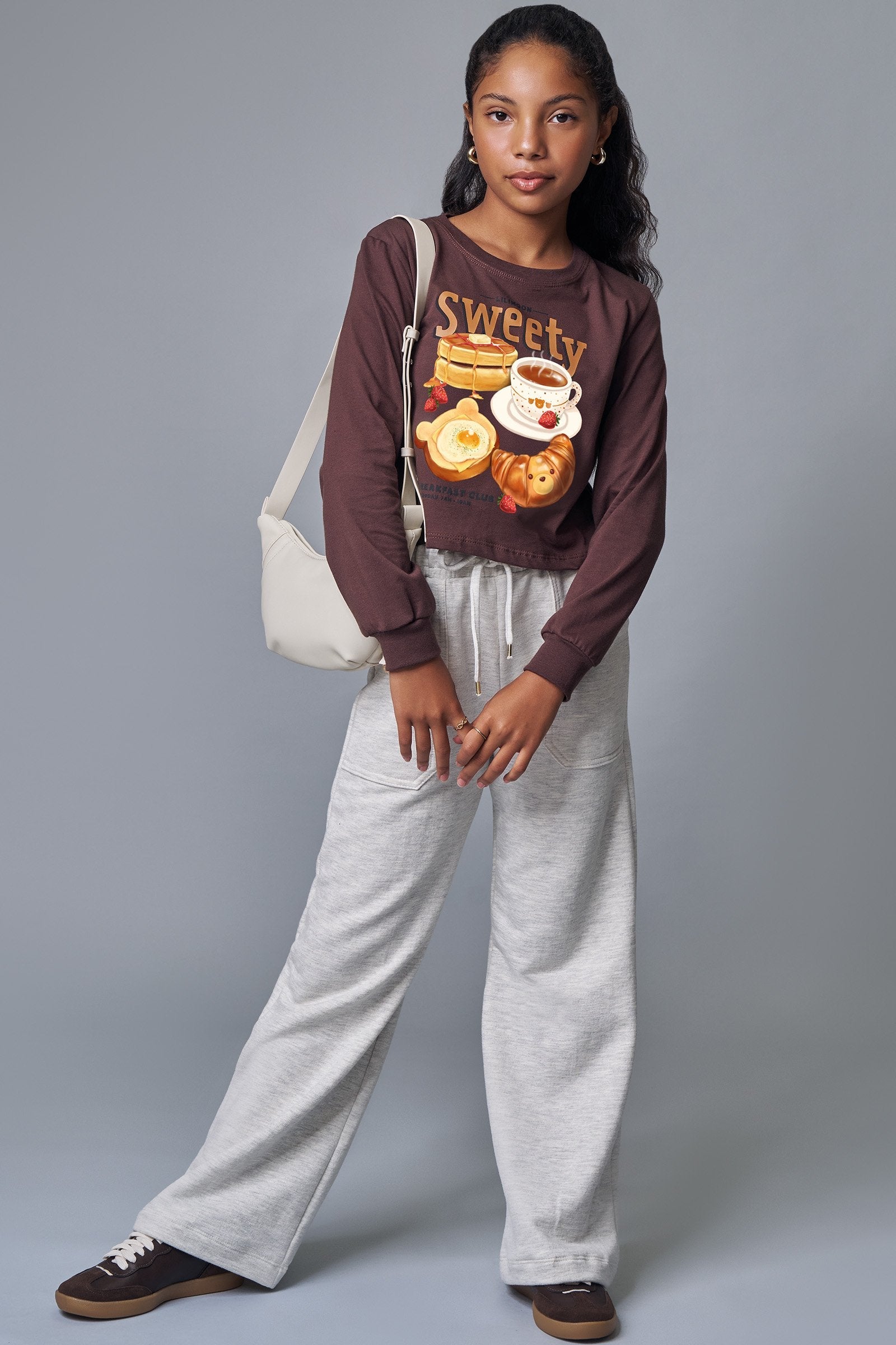 O conjunto de blusa boxy over em meia malha e calça wide leg em moletom sem pelúcia, é a escolha perfeita para as meninas que amam um look cheio de conforto, sem abrir mão do estilo no dia à dia! Disponível em uma cor super estilosa - marrom - ela é uma peça essencial, perfeita para montar diversos looks e deixar o inverno das pequenas ainda mais estiloso! A estampa divertida, adiciona um charme especial à peça.