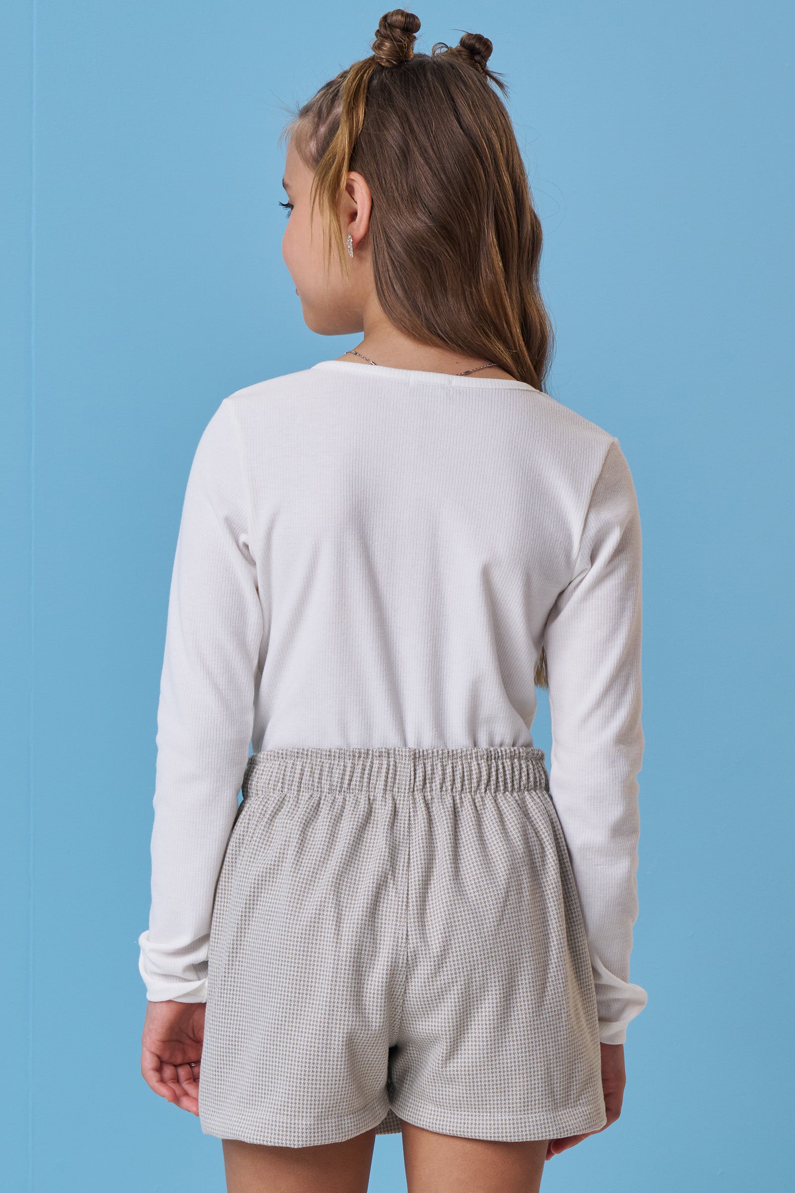 A blusa boxy em canelado liz, é a escolha perfeita para as meninas que amam um look cheio de conforto, sem abrir mão do estilo no dia à dia! Disponível em três cores super estilosas - off white, nude e preto - ela é uma peça essencial, perfeita para montar diversos looks e deixar o inverno das pequenas ainda mais estiloso!