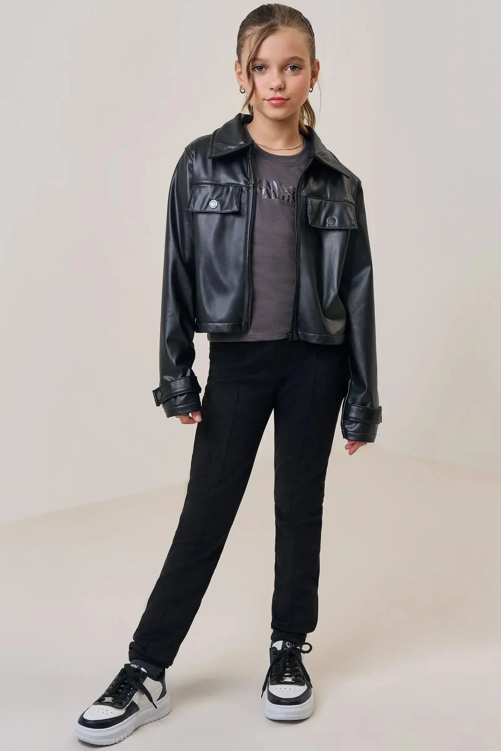A calça em suede twill, é a escolha perfeita para as meninas que amam um look cheio de conforto, sem abrir mão do estilo no dia à dia! Disponível em uma cor super estilosa - preto - ela é uma peça essencial, perfeita para montar diversos looks e deixar o inverno das pequenas ainda mais estiloso!