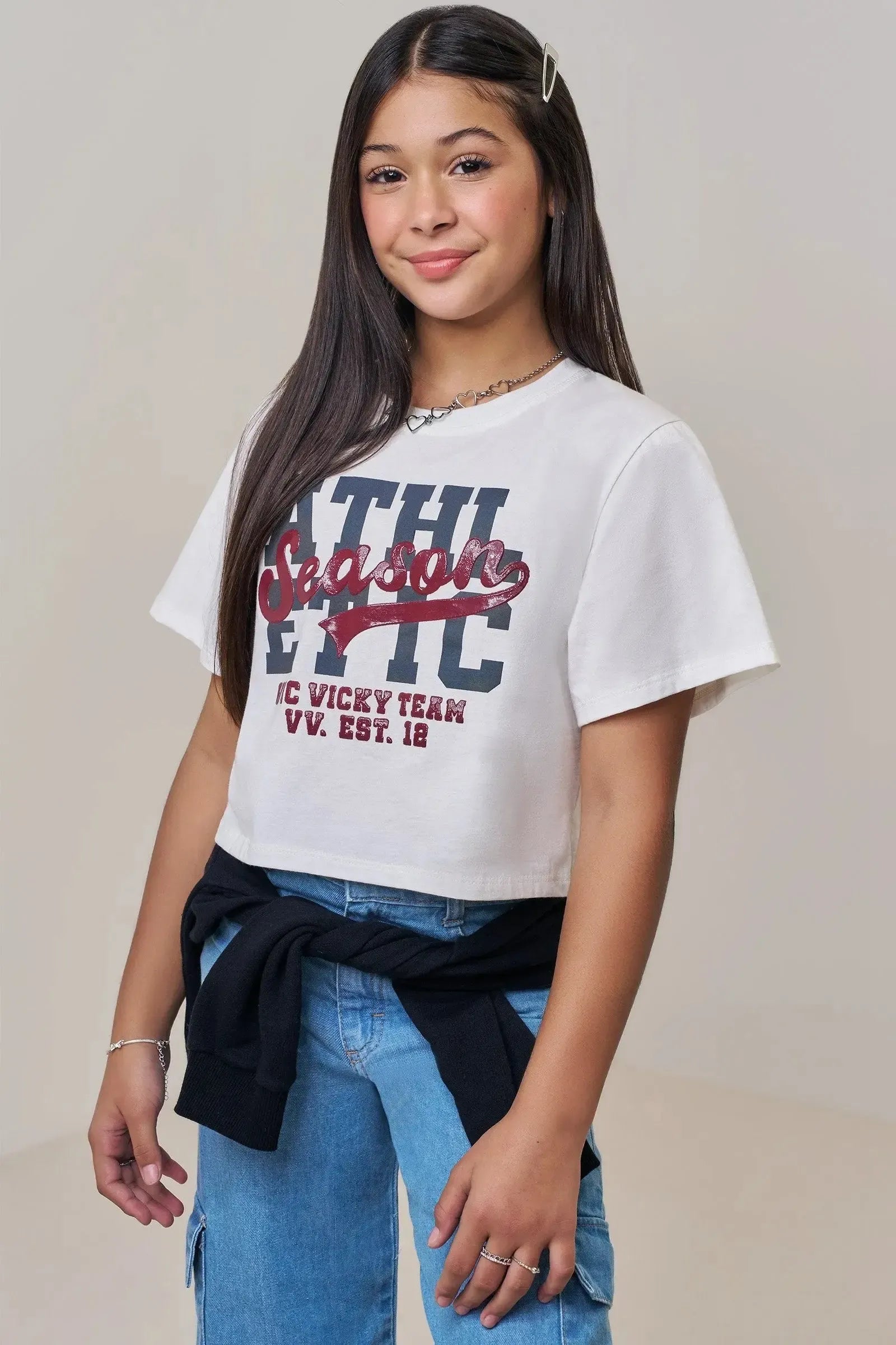 A camiseta boxy over em meia malha, é a escolha perfeita para as meninas que amam um look cheio de conforto, sem abrir mão do estilo no dia à dia! Disponível em uma cor super estilosa - off white - ela é uma peça essencial, perfeita para montar diversos looks e deixar o inverno das pequenas ainda mais estiloso! A estampa divertida, adiciona um charme especial à peça.