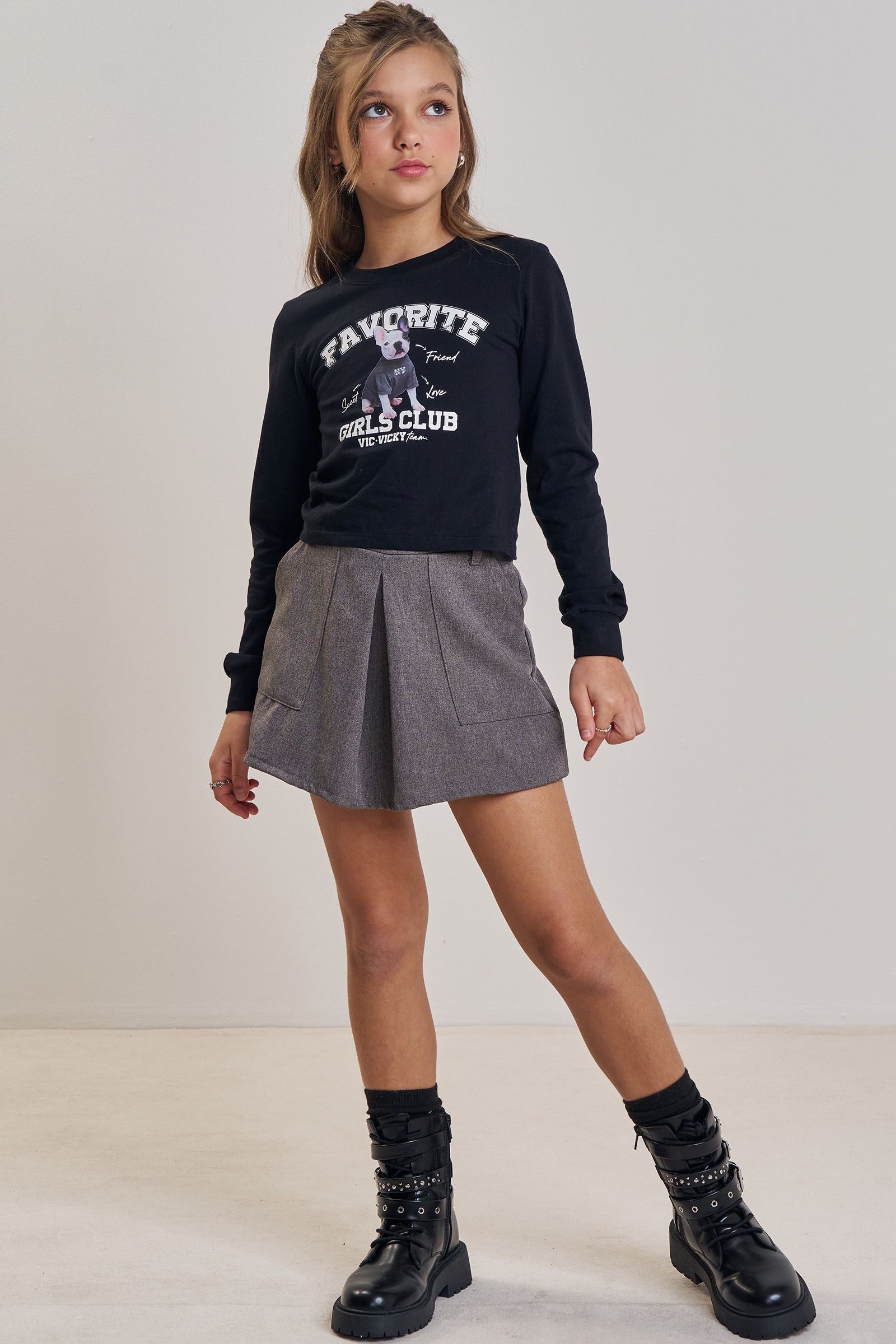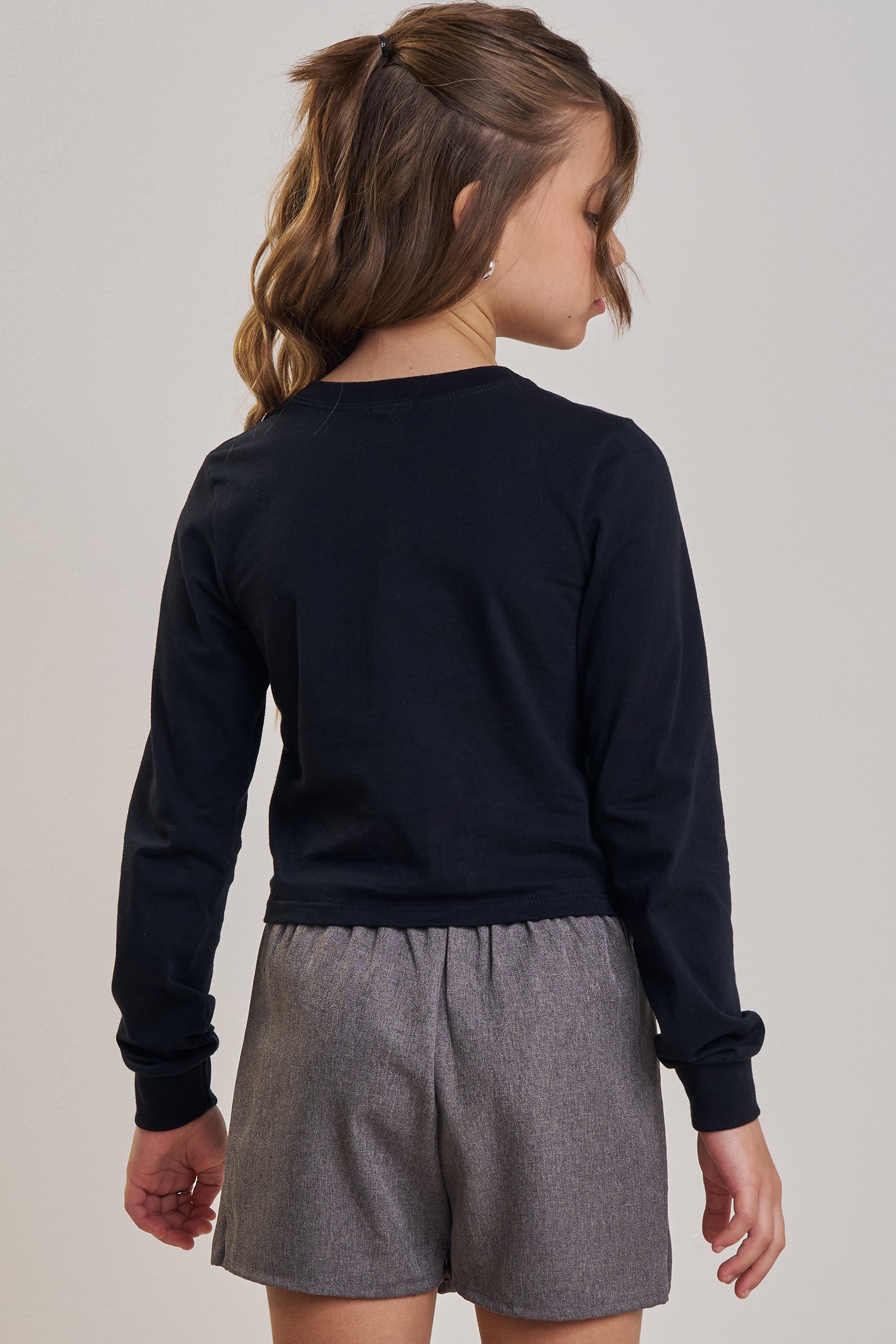 A camiseta boxy over em meia malha, é a escolha perfeita para as meninas que amam um look cheio de conforto, sem abrir mão do estilo no dia à dia! Disponível em uma cor super estilosa - preto - ela é uma peça essencial, perfeita para montar diversos looks e deixar o inverno das pequenas ainda mais estiloso! A estampa divertida, adiciona um charme especial à peça.
