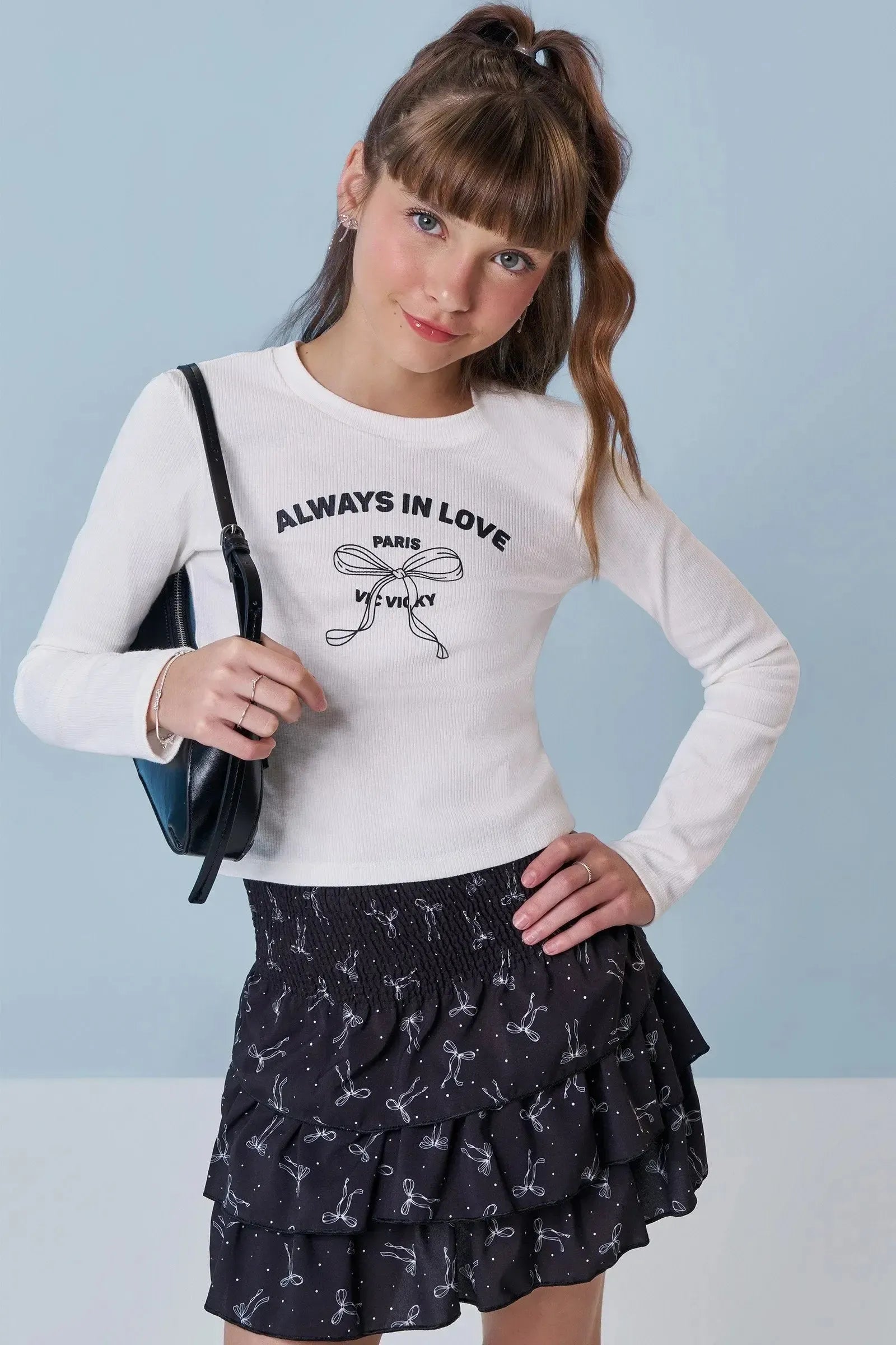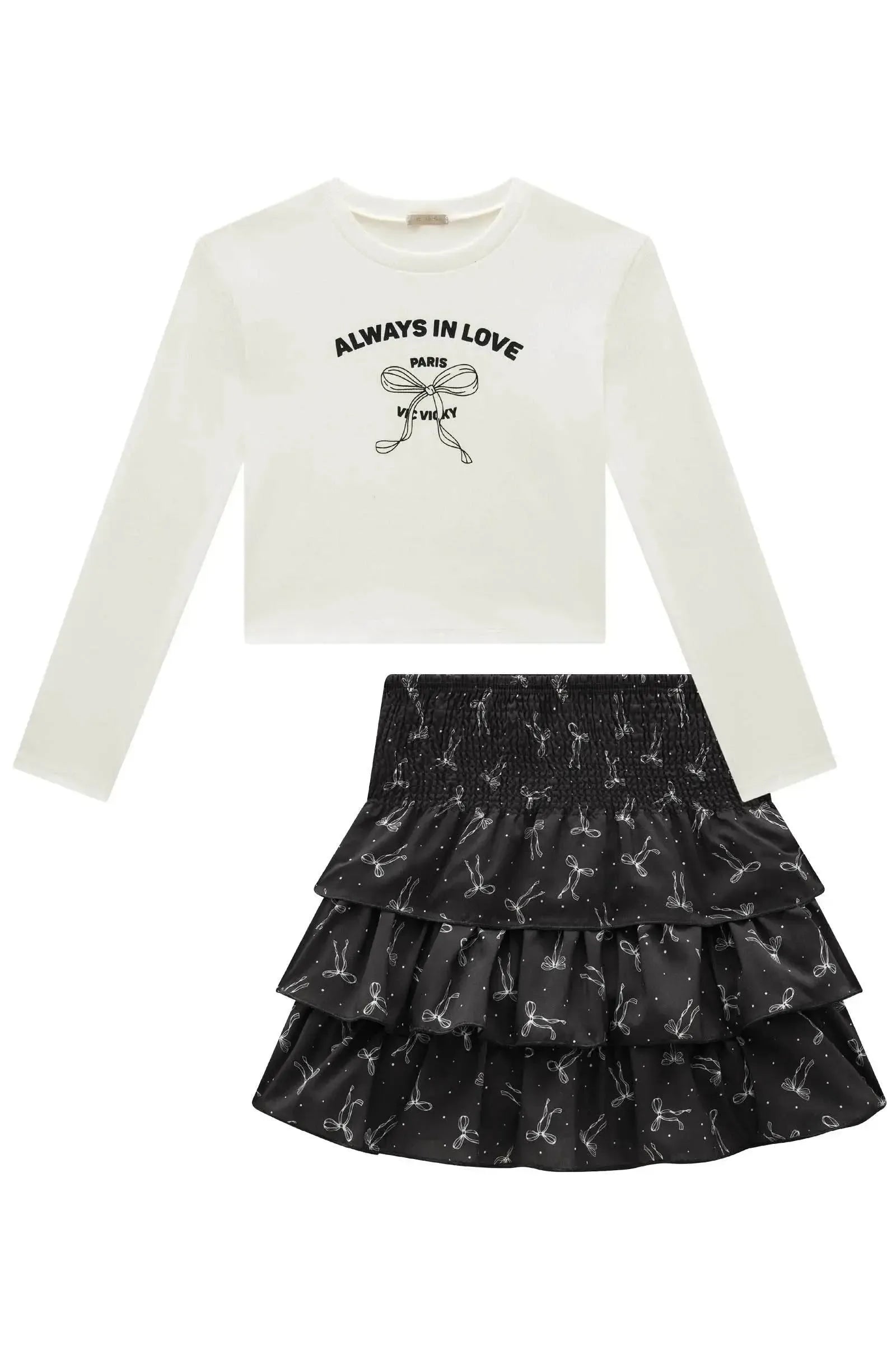 O conjunto de blusa boxy em canelado liz e saia ruffles em light peach, é a escolha perfeita para as meninas que amam um look cheio de conforto, sem abrir mão do estilo no dia à dia! Disponível em uma cor super estilosa - off white - ela é uma peça essencial, perfeita para montar diversos looks e deixar o inverno das pequenas ainda mais estiloso! A estampa divertida, adiciona um charme especial à peça.