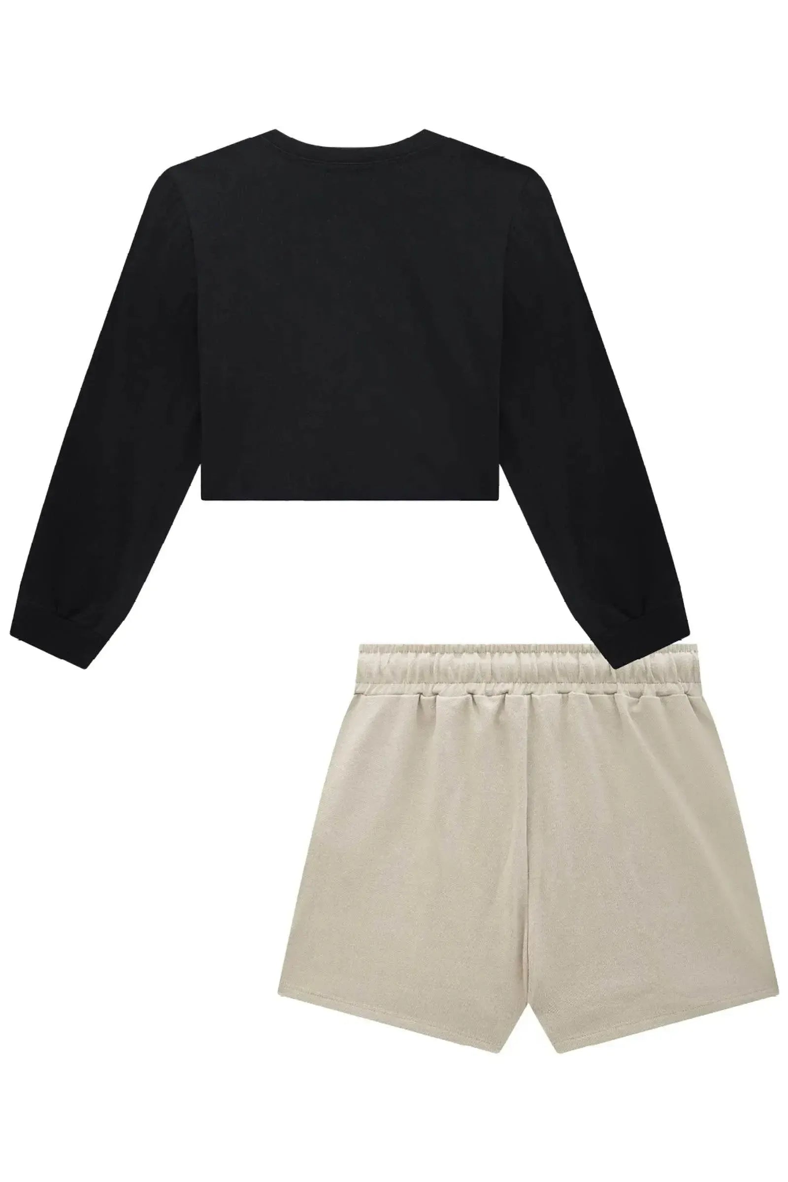 O conjunto de blusa boxy em meia malha e short saia em moletom sem pelúcia, é a escolha perfeita para as meninas que amam um look cheio de conforto, sem abrir mão do estilo no dia à dia! Disponível em uma cor super estilosa - preto - ela é uma peça essencial, perfeita para montar diversos looks e deixar o inverno das pequenas ainda mais estiloso! A estampa divertida, adiciona um charme especial à peça.