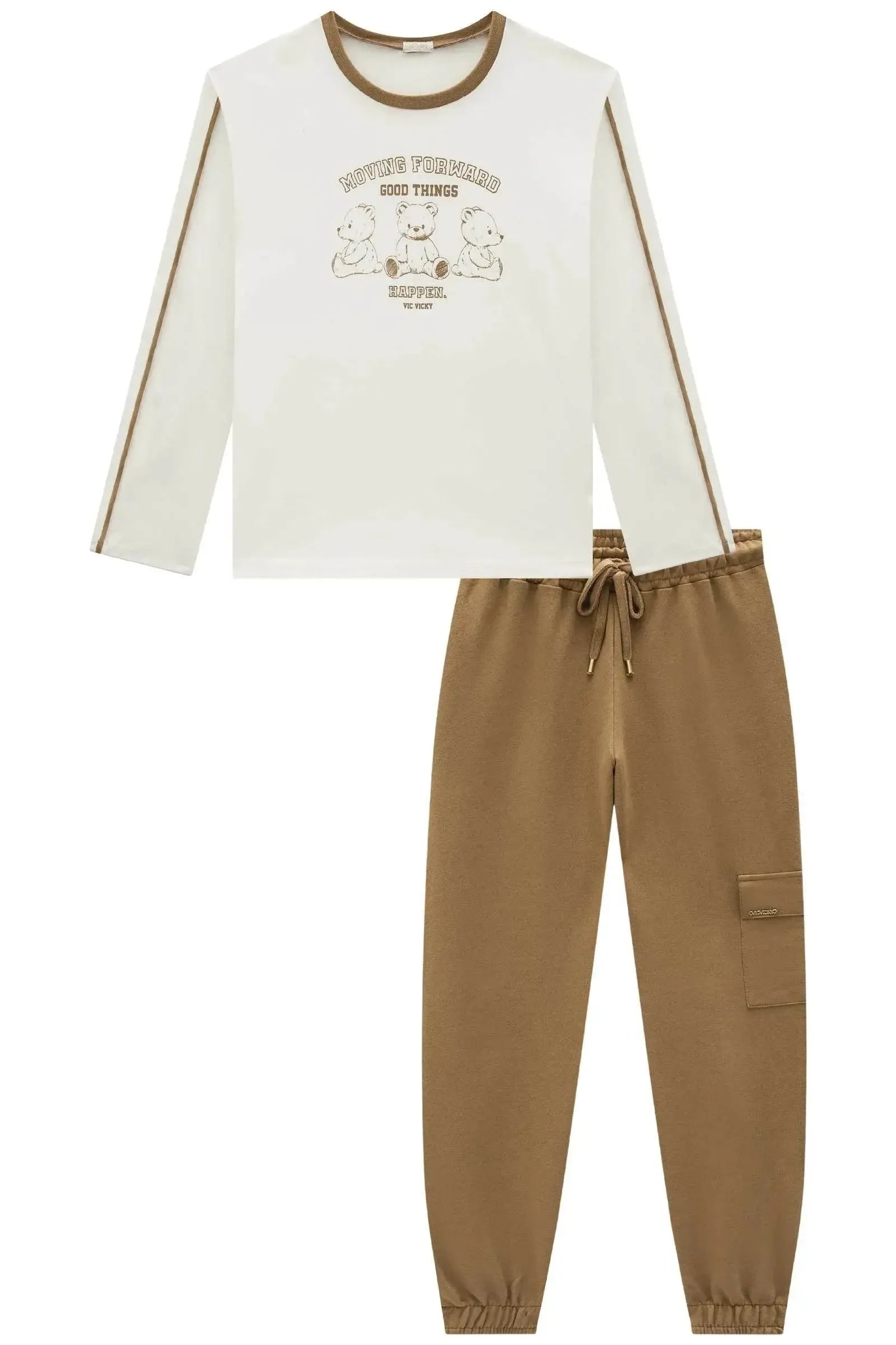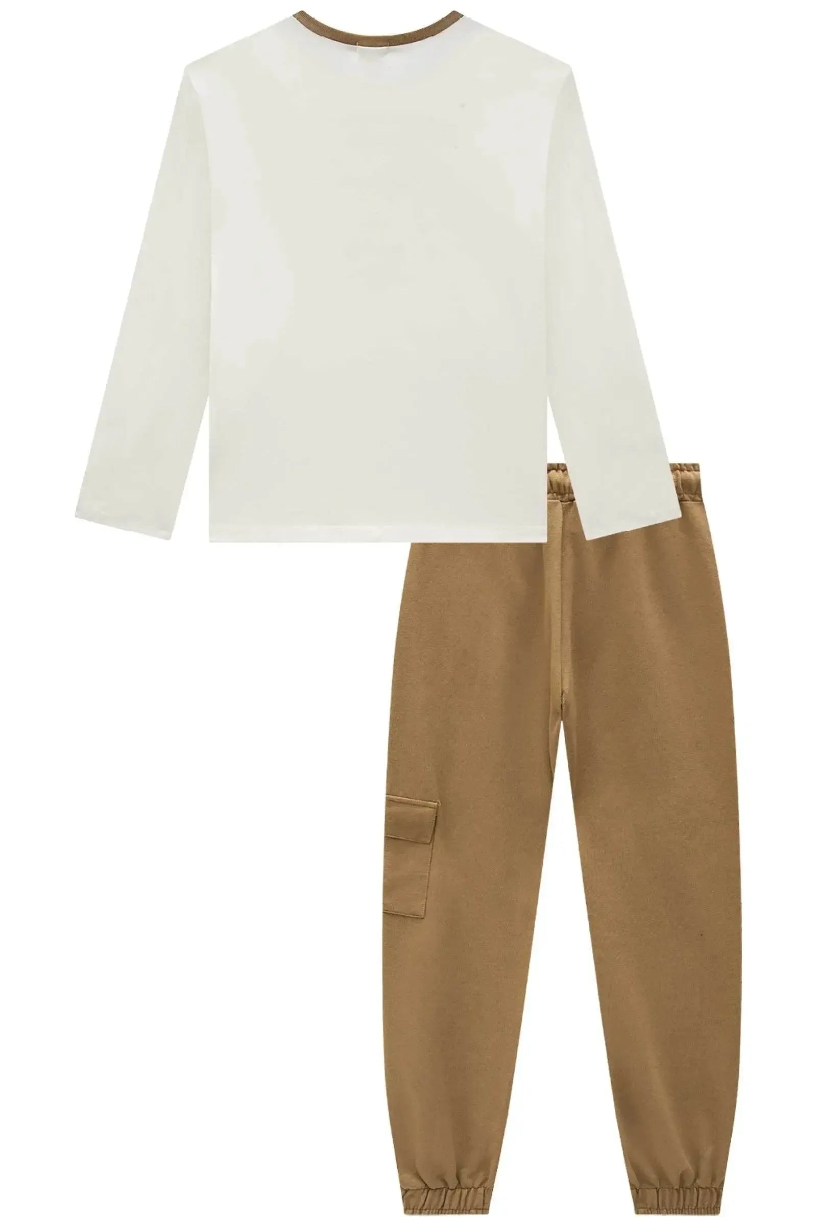 O conjunto de blusa em cotton e calça jogger em moletom sem pelúcia, é a escolha perfeita para as meninas que amam um look cheio de conforto, sem abrir mão do estilo no dia à dia! Disponível em uma cor super estilosa - off white - ela é uma peça essencial, perfeita para montar diversos looks e deixar o inverno das pequenas ainda mais estiloso! A estampa divertida, adiciona um charme especial à peça.