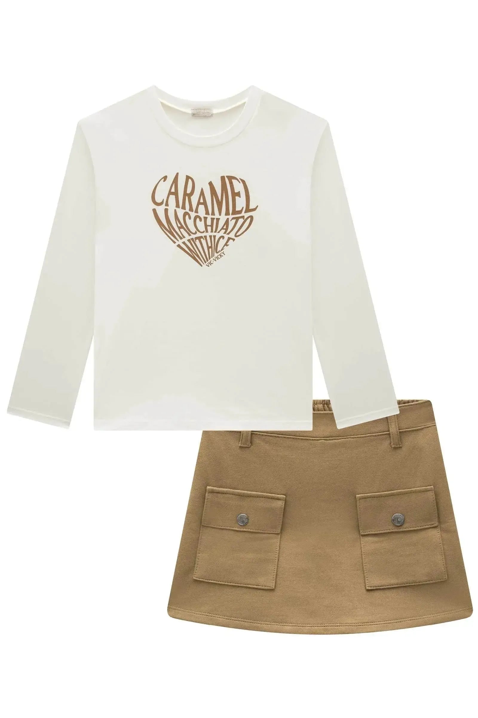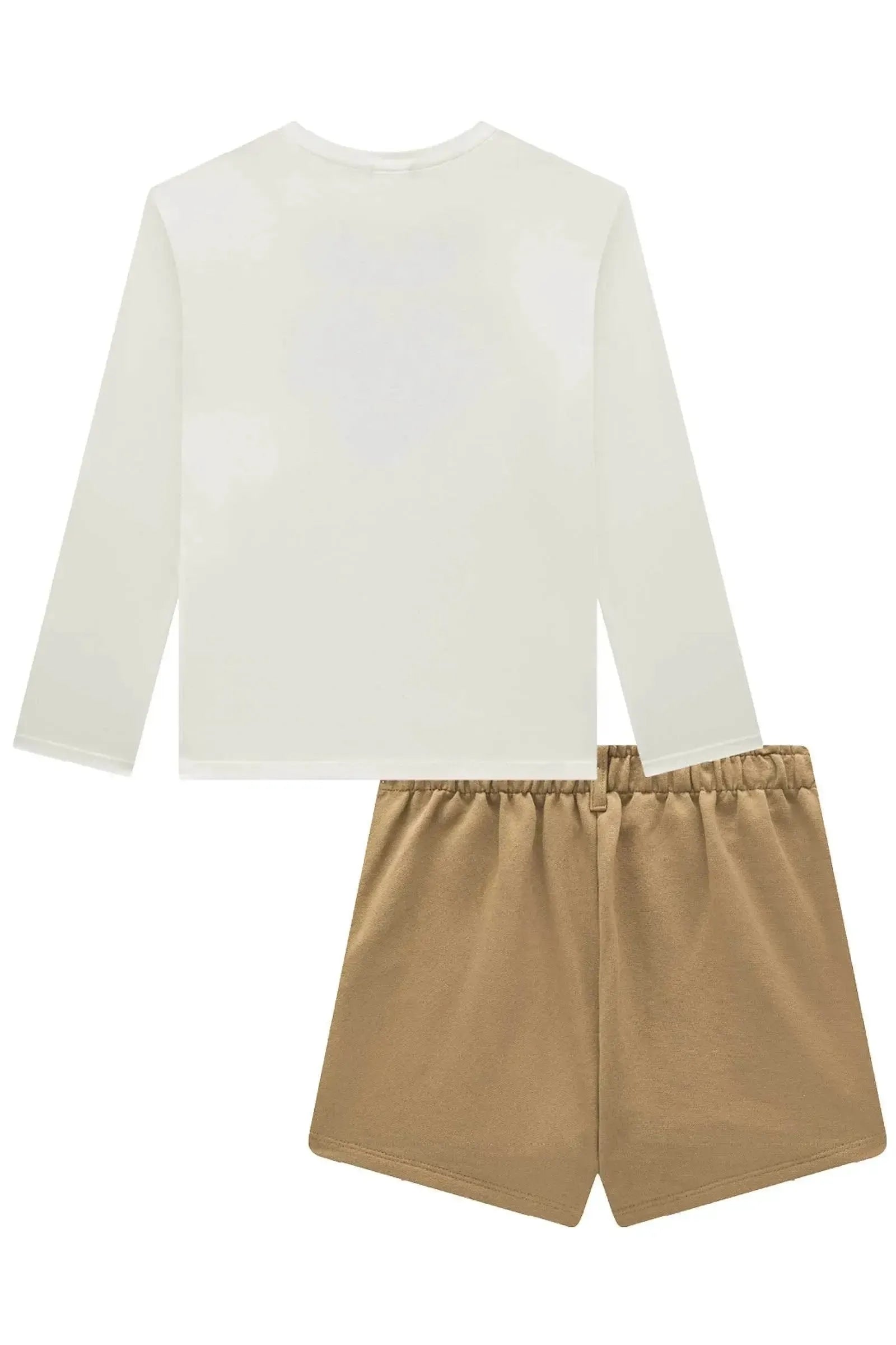 O conjunto de blusa em cotton e short saia em moletom sem pelúcia, é a escolha perfeita para as meninas que amam um look cheio de conforto, sem abrir mão do estilo no dia à dia! Disponível em uma cor super estilosa - off white - ela é uma peça essencial, perfeita para montar diversos looks e deixar o inverno das pequenas ainda mais estiloso! A estampa divertida, adiciona um charme especial à peça.