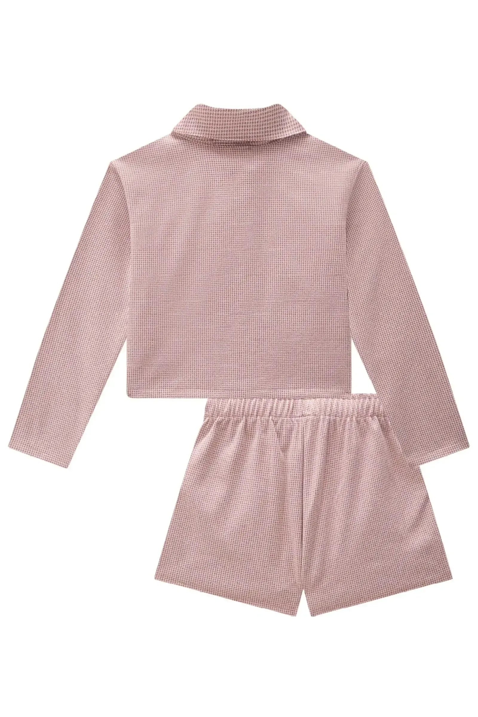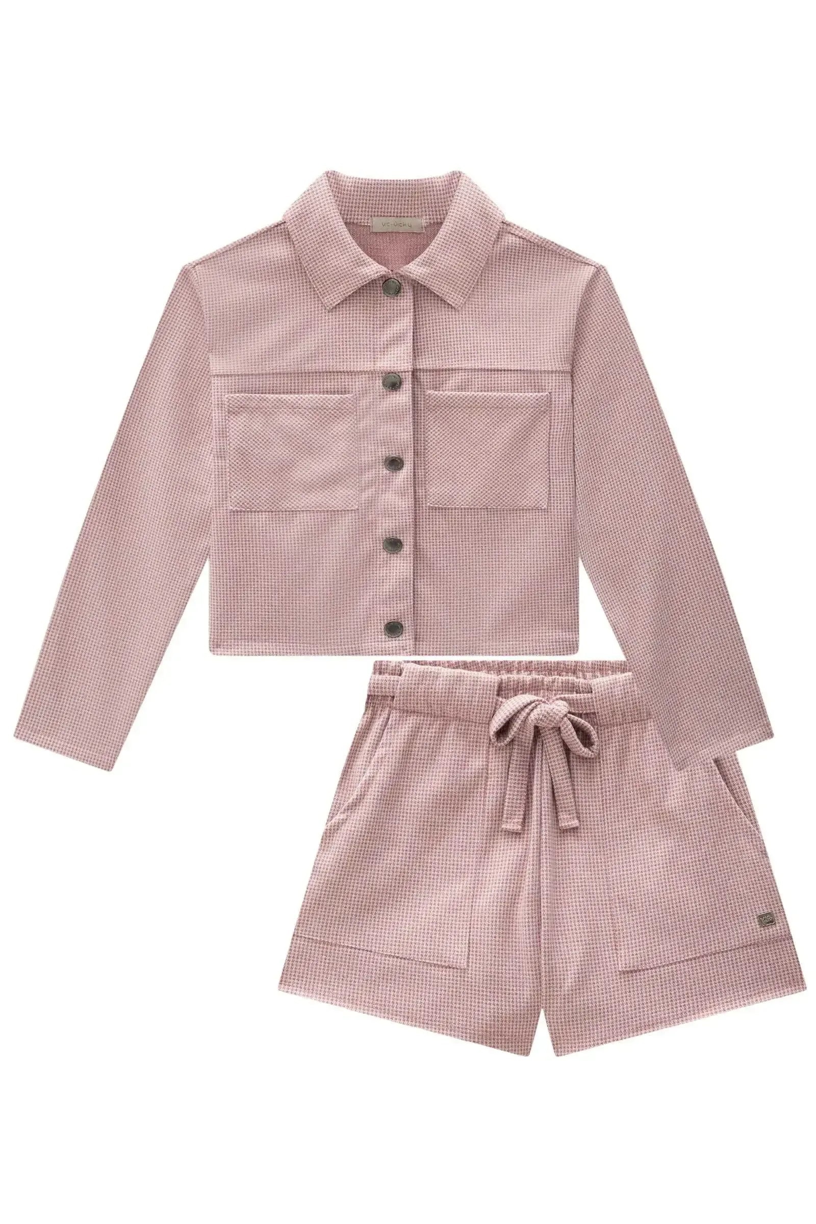 O conjunto de jaqueta shacket e shorts em flanela versalhes, é a escolha perfeita para as meninas que amam um look cheio de conforto, sem abrir mão do estilo no dia à dia! Disponível em uma cor super estilosa - nude - ela é uma peça essencial, perfeita para montar diversos looks e deixar o inverno das pequenas ainda mais estiloso!