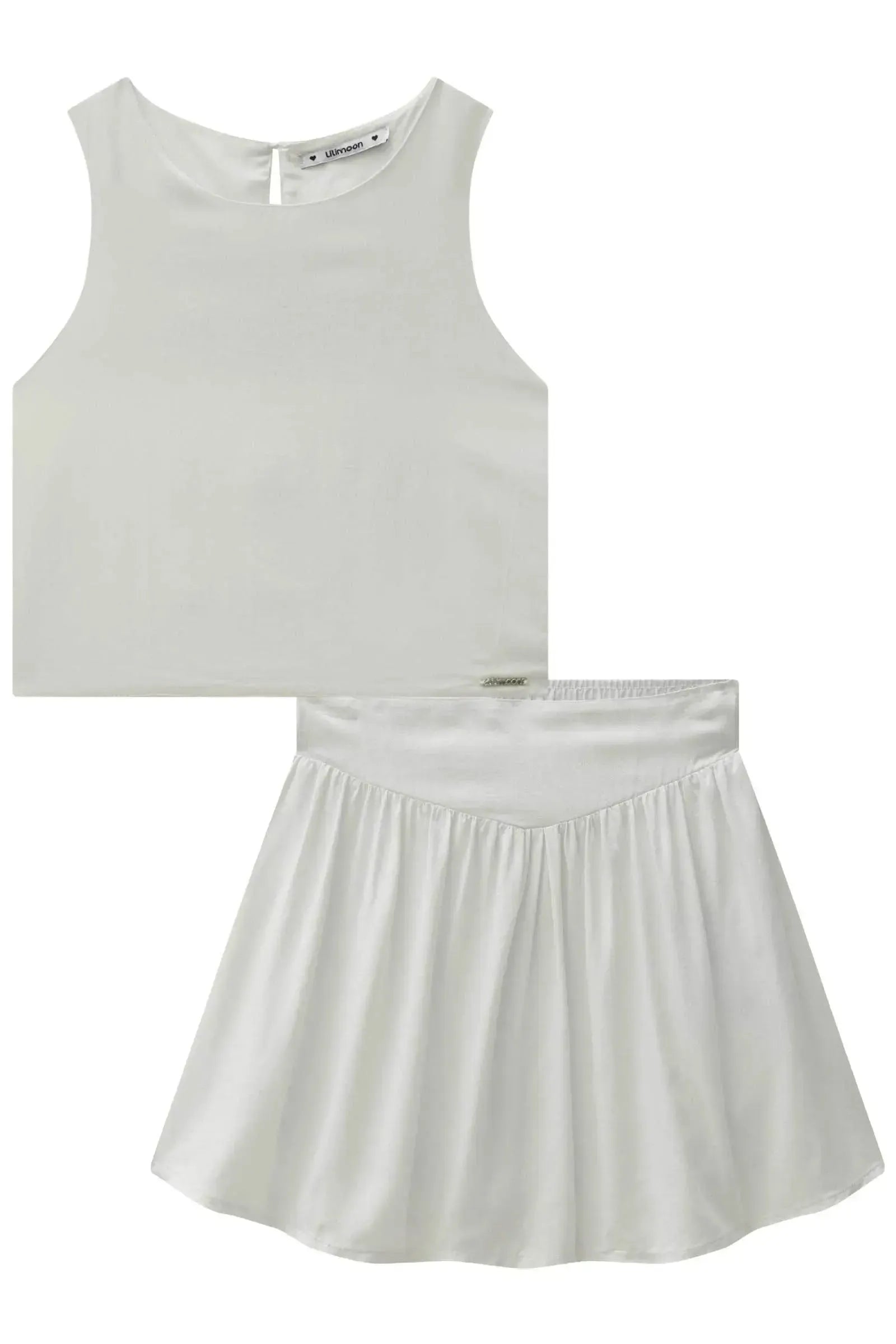 O conjunto de blusa cropped e saia em viscose light shine, é perfeito para as meninas que amam um look cheio de estilo e personalidade! disponível em duas cores super estilosas - preto e branco - ele oferece um toque super macio e confortável, ideal para o dia a dia e para manter a pele fresquinha.