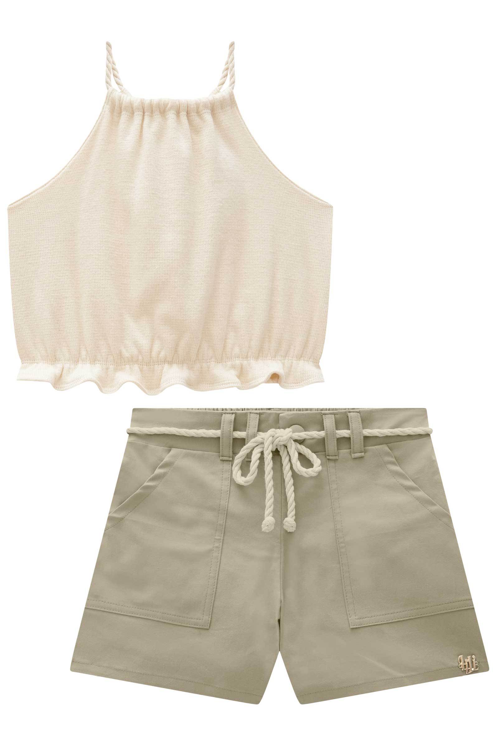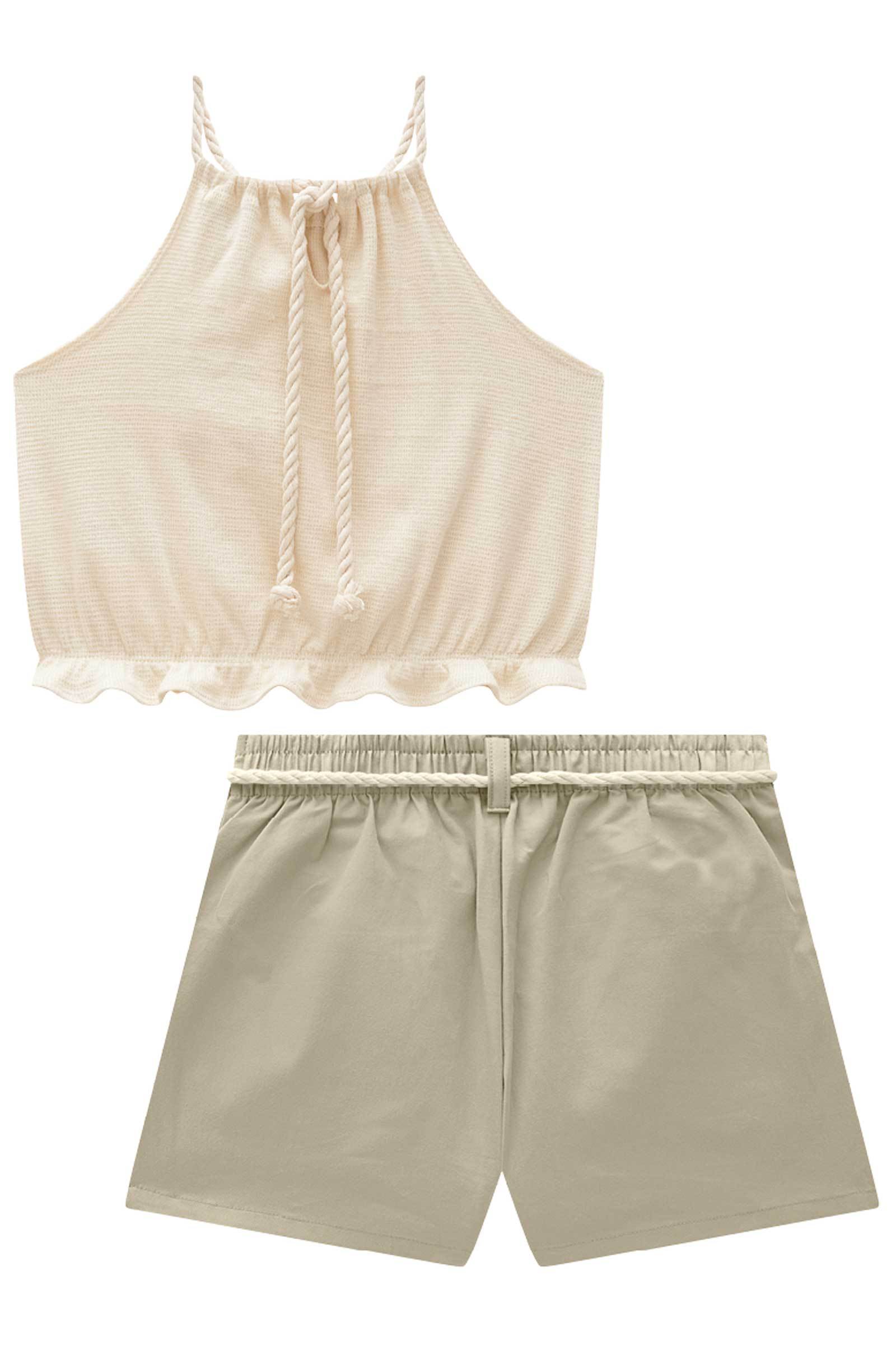 O conjunto de blusa cropped em malha little waffle e shorts em sarja com elastano é perfeito para quem busca conforto, leveza e muito estilo. Disponível em uma cor super estilosa - off white - este conjunto é a escolha ideal para os dias mais quentes