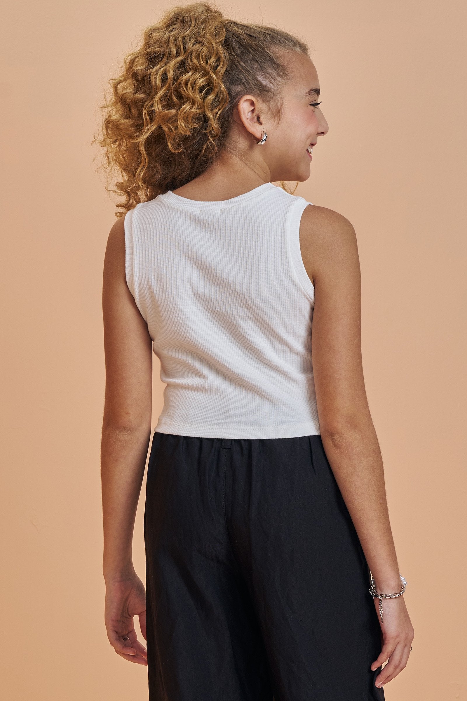 A regata cropped em canelado Liz Vic é a peça básica e estilosa que não pode faltar no guarda-roupa das meninas modernas!