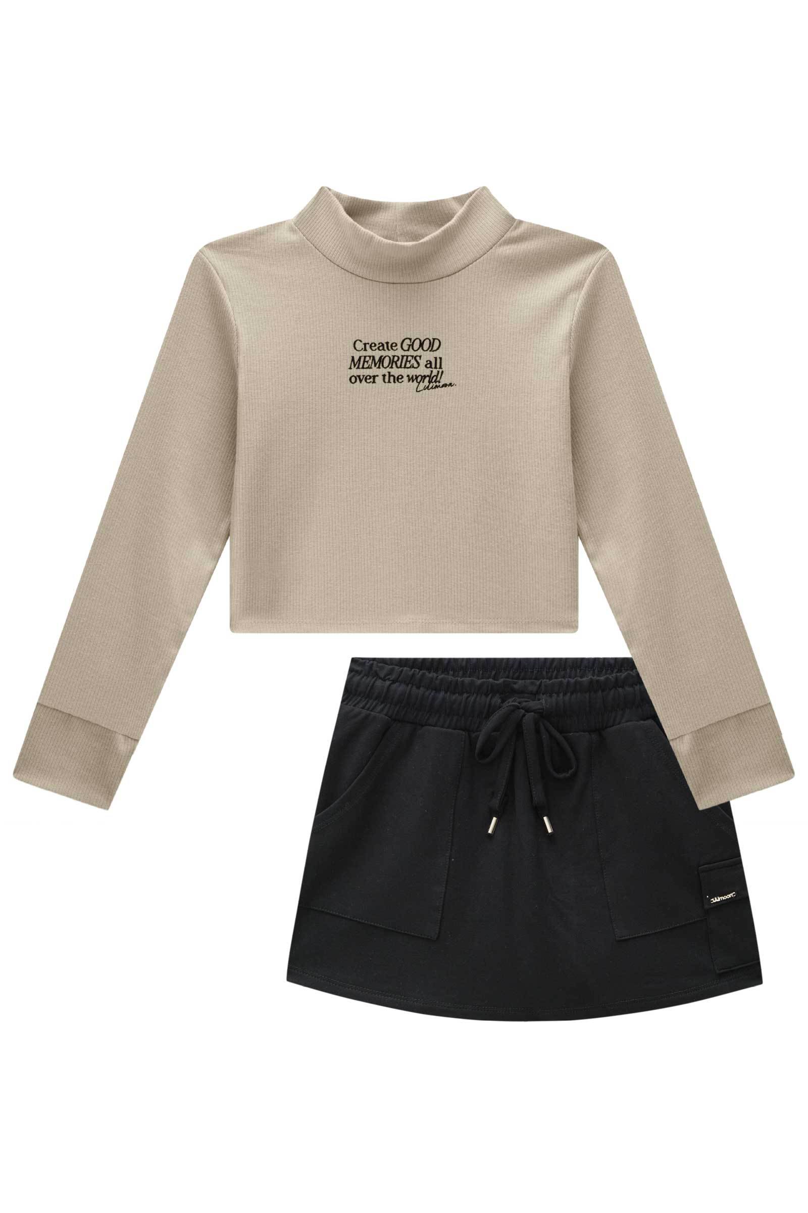 O conjunto de blusa boxy em canelado liz e short saia em molevisco, é a escolha perfeita para as meninas que amam um look cheio de conforto, sem abrir mão do estilo no dia à dia! Disponível em uma cor super estilosa - cinza - ela é uma peça essencial, perfeita para montar diversos looks e deixar o inverno das pequenas ainda mais estiloso! A estampa divertida, adiciona um charme especial à peça.