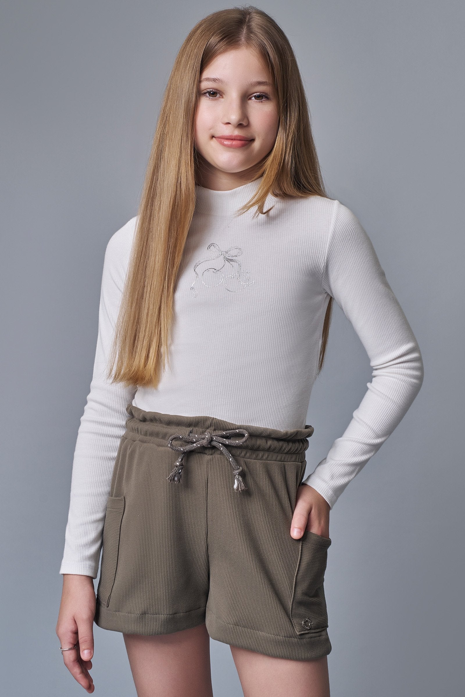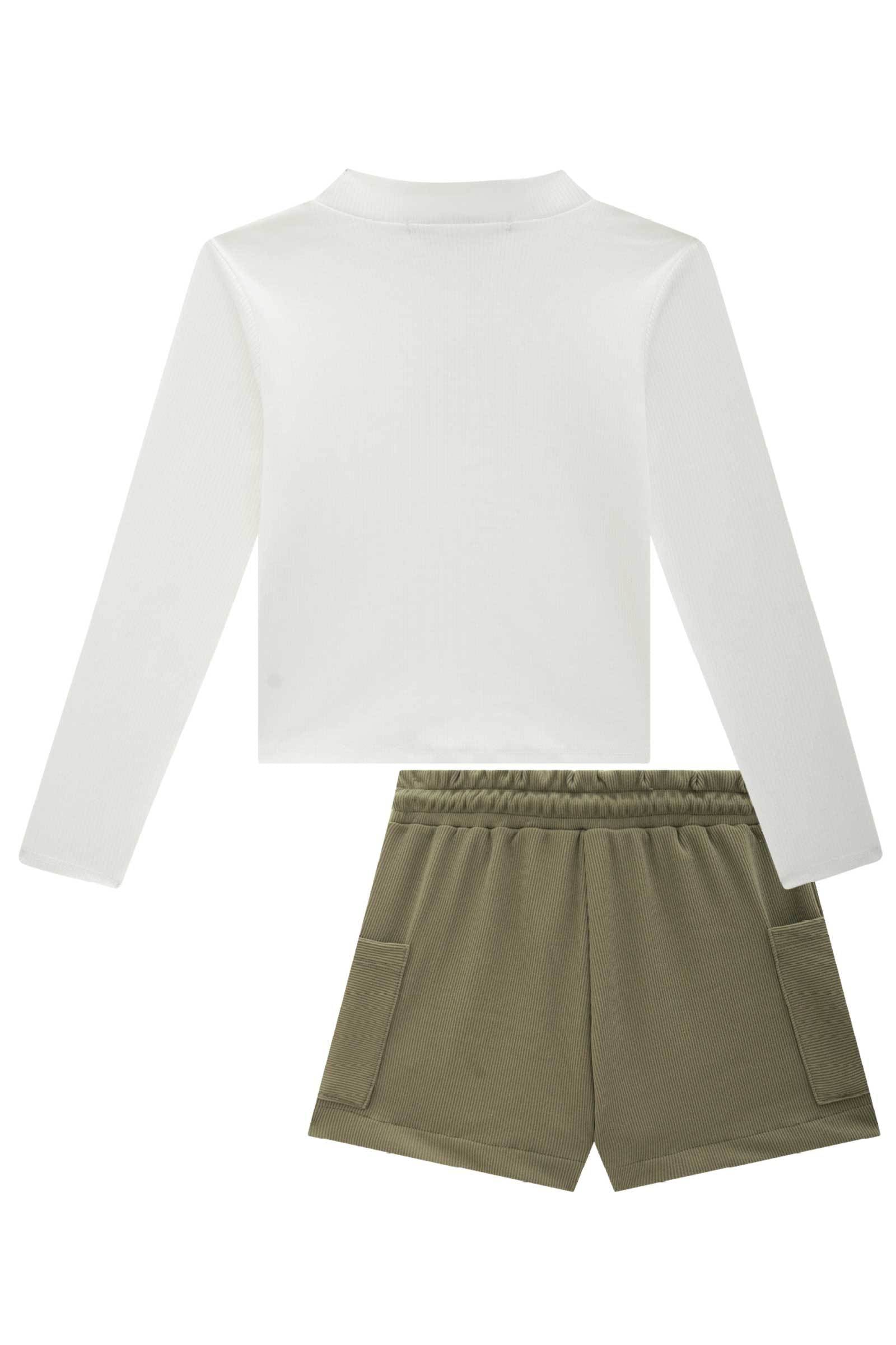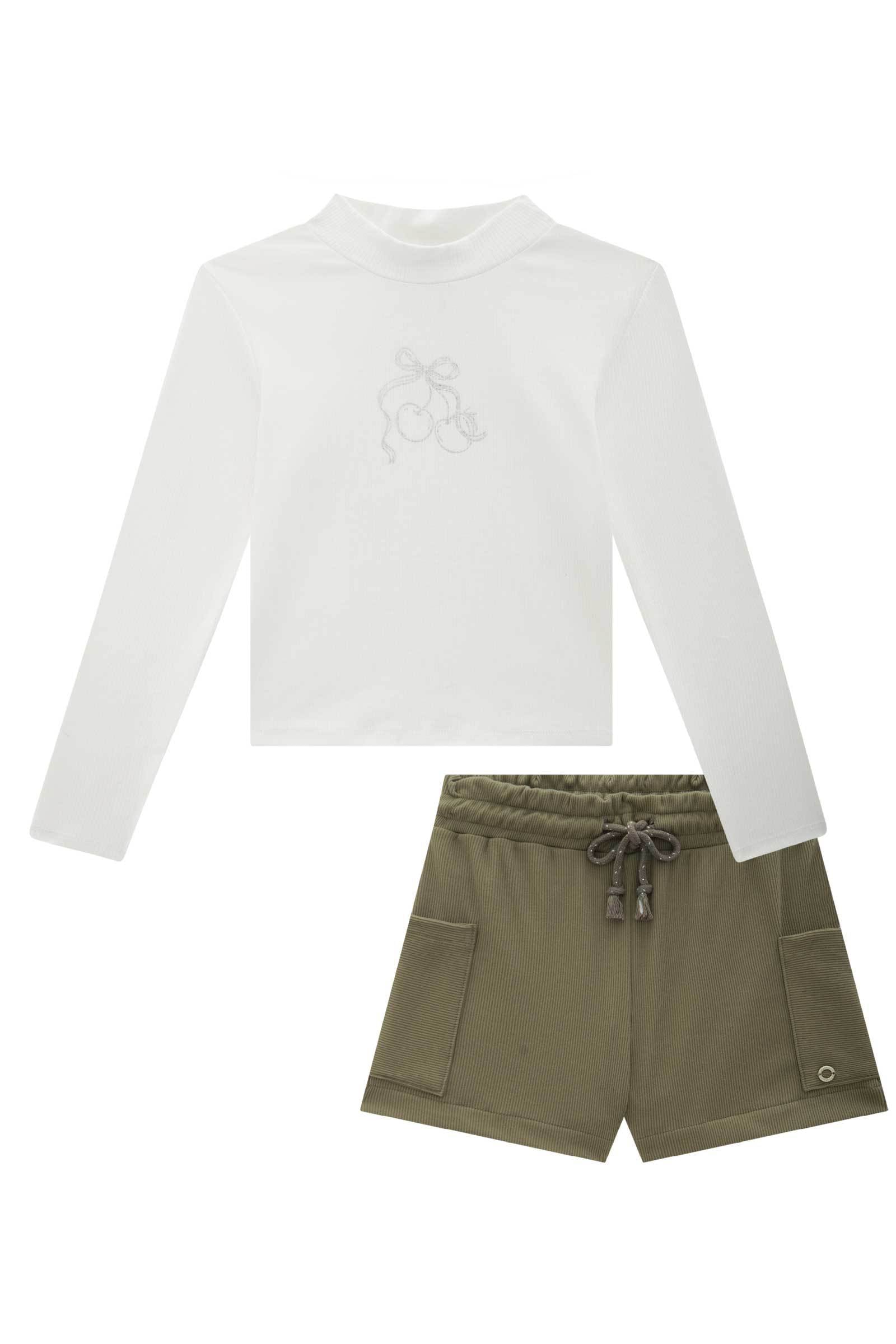 O conjunto de blusa boxy em canelado liz e shorts em canelado soft, é a escolha perfeita para as meninas que amam um look cheio de conforto, sem abrir mão do estilo no dia à dia! Disponível em uma cor super estilosa - off white - ela é uma peça essencial, perfeita para montar diversos looks e deixar o inverno das pequenas ainda mais estiloso! A estampa divertida e delicada, adiciona um charme especial à peça.