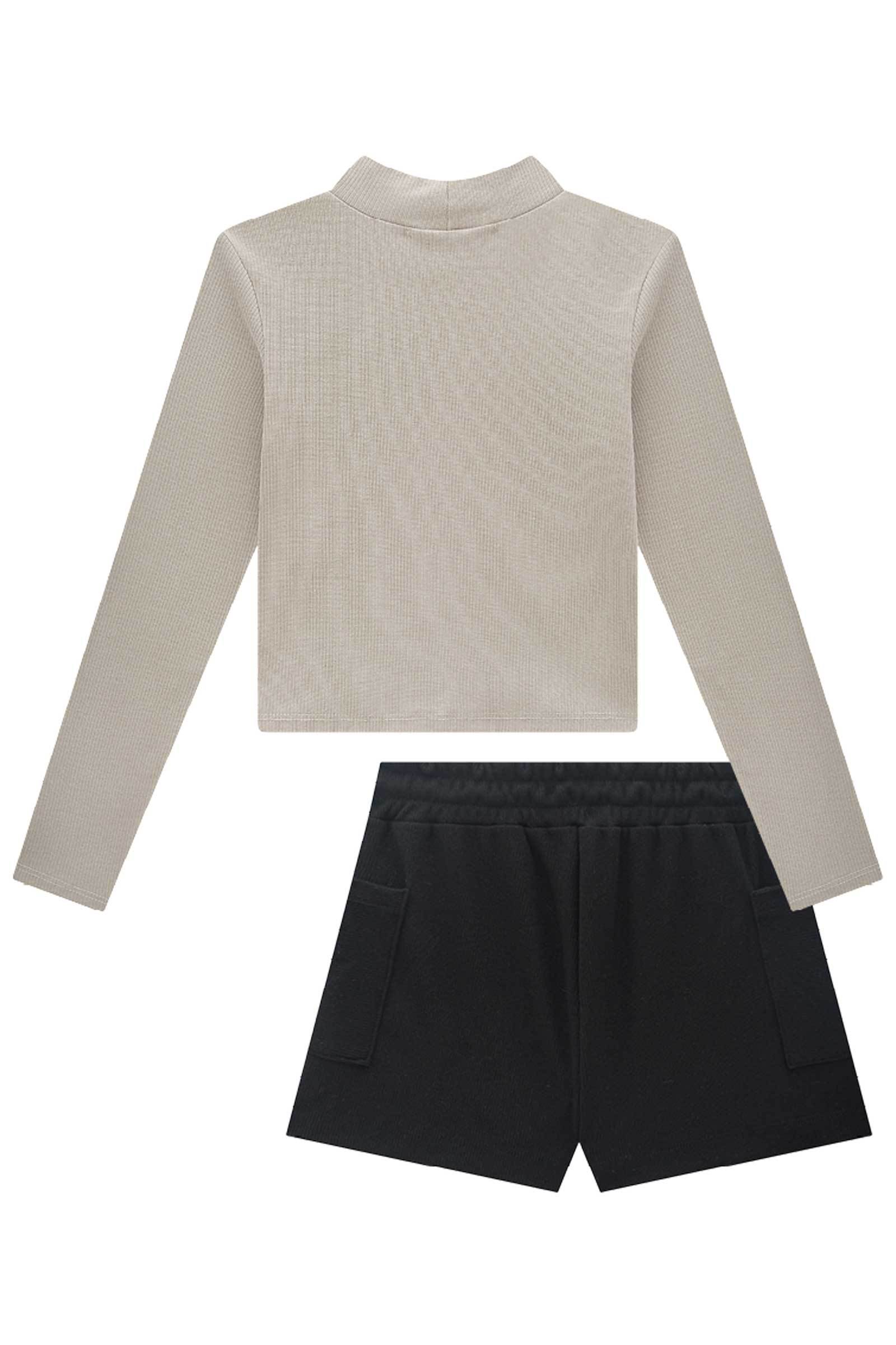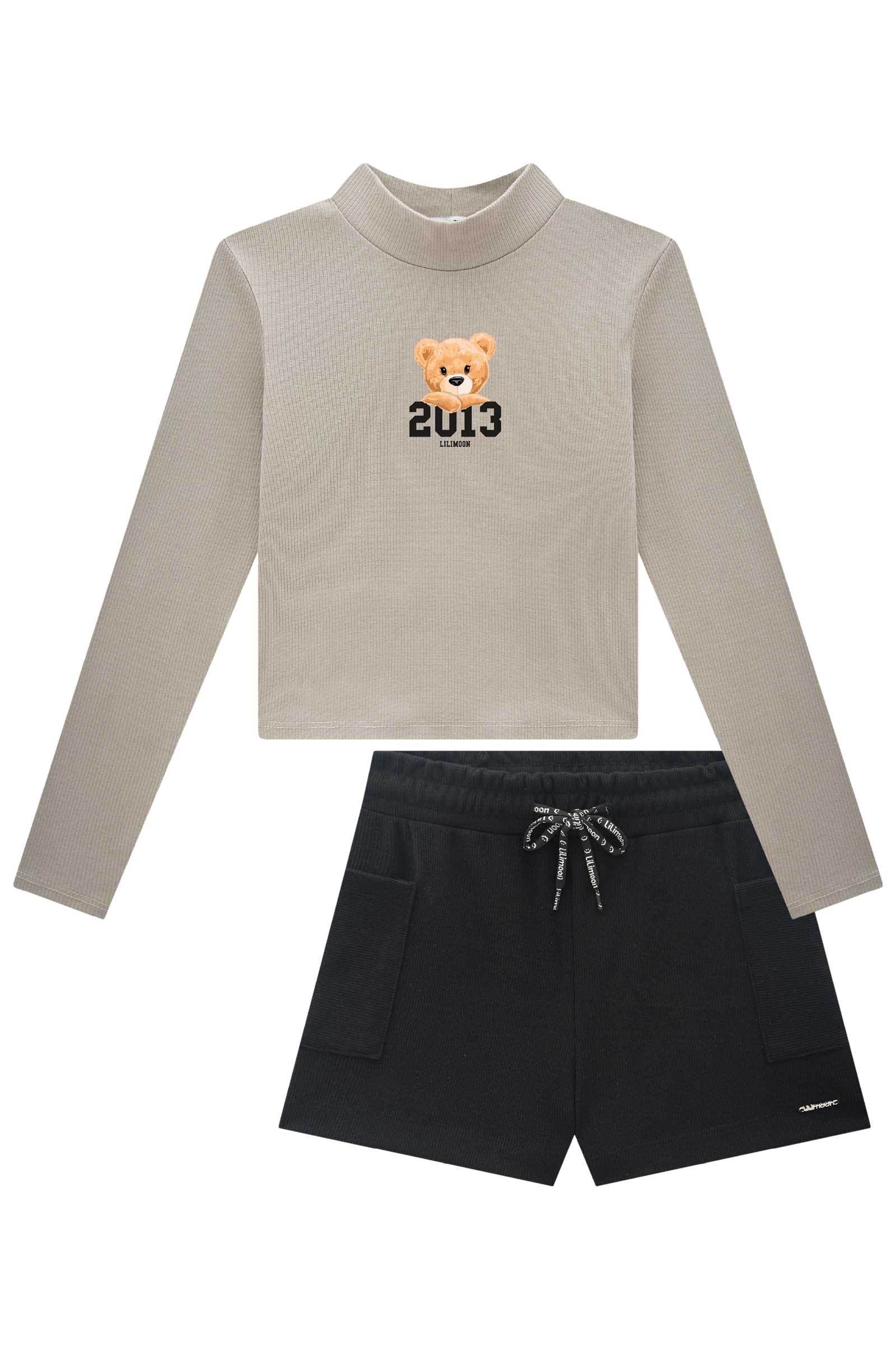 O conjunto de blusa boxy em canelado liz e shorts em canelado soft, é a escolha perfeita para as meninas que amam um look cheio de conforto, sem abrir mão do estilo no dia à dia! Disponível em uma cor super estilosa - cinza - ela é uma peça essencial, perfeita para montar diversos looks e deixar o inverno das pequenas ainda mais estiloso! O DTF divertido, adiciona um charme especial à peça.