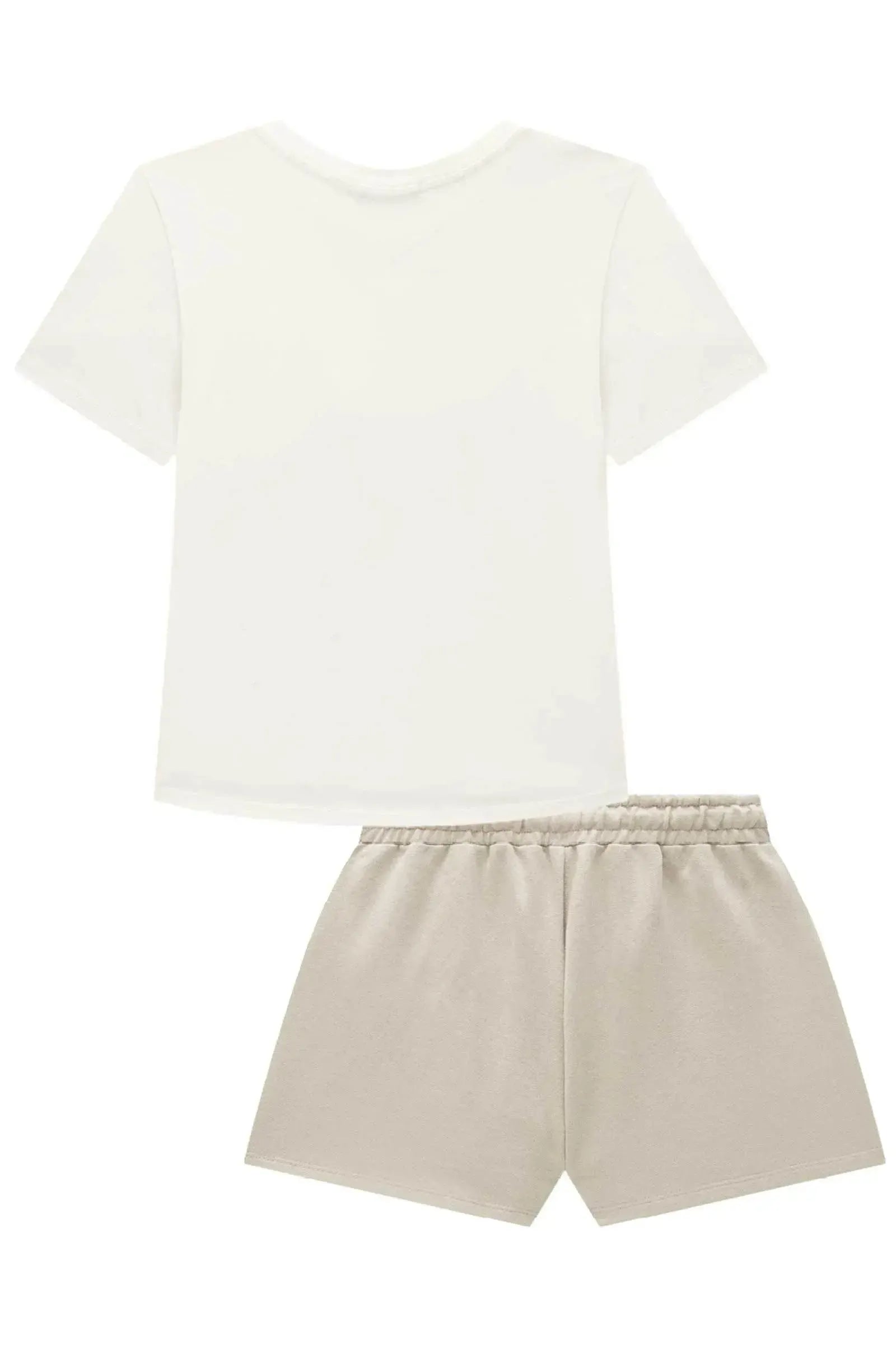 Conjunto Infantil Feminino Lilimoon - Blusa Comfy em Meia Malha e Shorts em Moletom sem Pelúcia