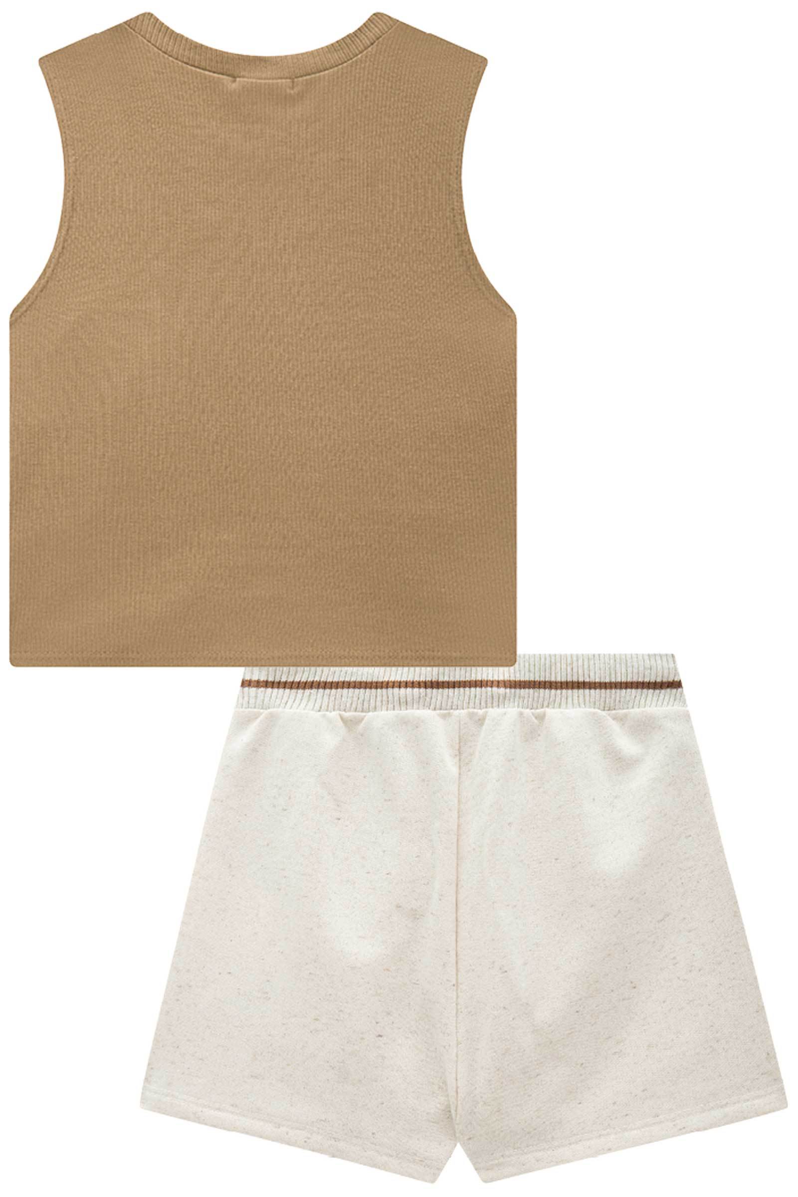Conjunto de Regata Cropped em Canelado Liz e Short Saia em Moletom Sem Pelúcia