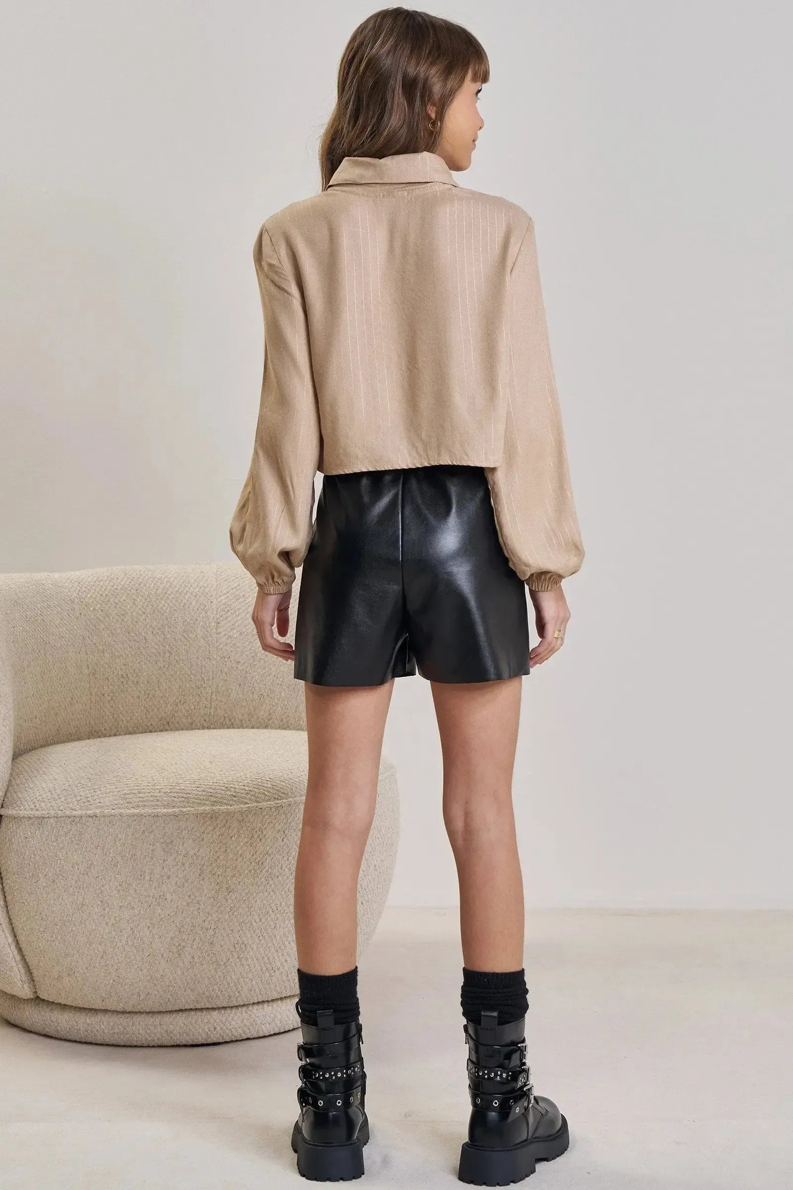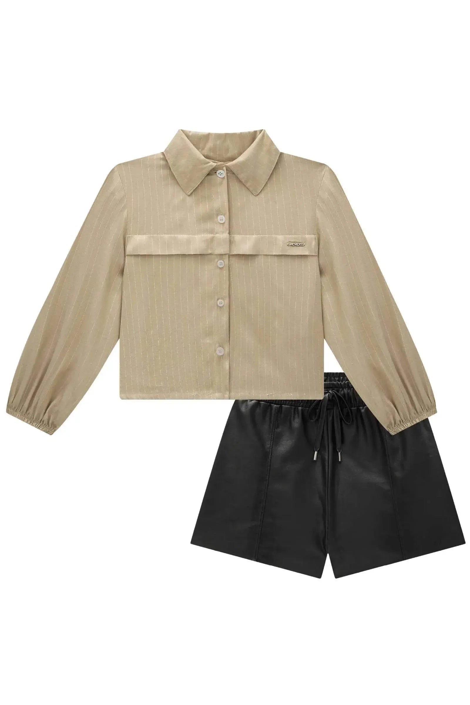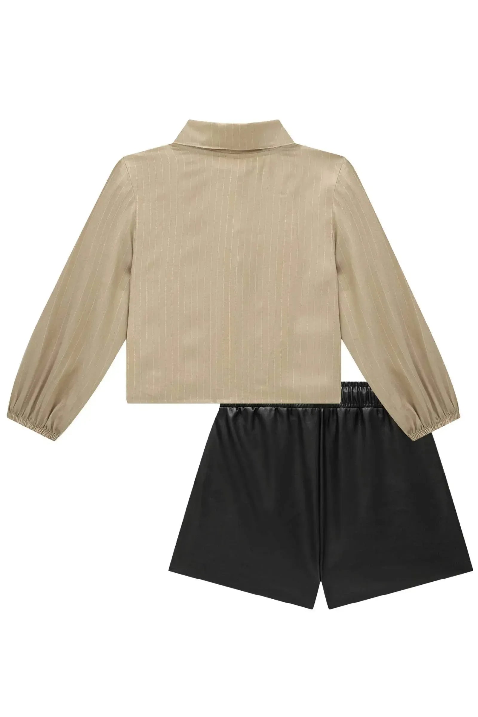 O conjunto de camisa em visco shine e shorts em couro sintético, é a escolha perfeita para as meninas que amam um look cheio de conforto, sem abrir mão do estilo no dia à dia! Disponível em uma cor super estilosa - bege - ela é uma peça essencial, perfeita para montar diversos looks e deixar o inverno das pequenas ainda mais estiloso!