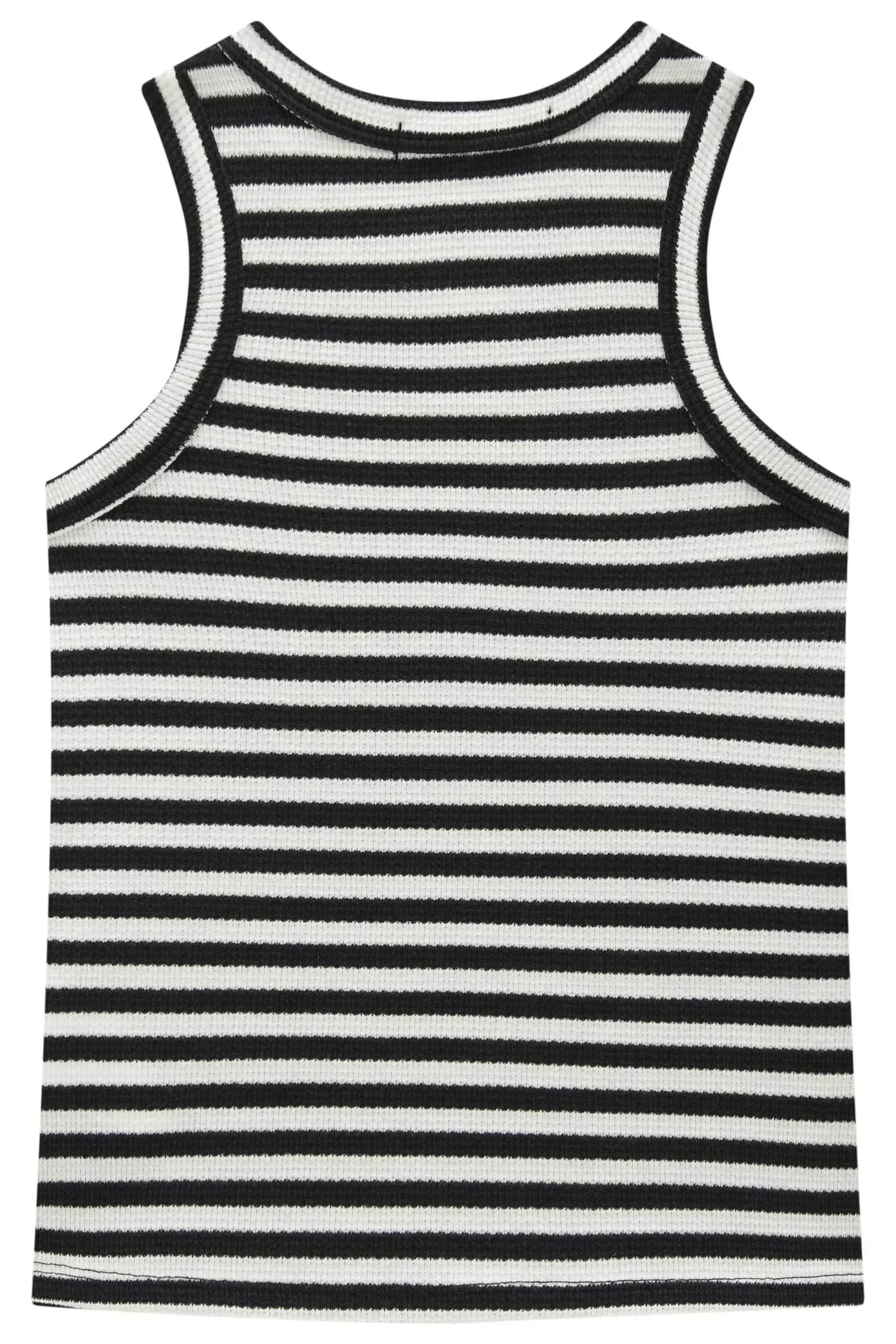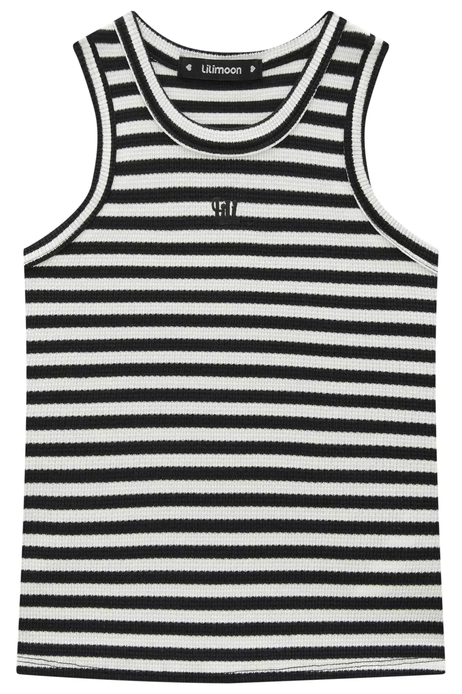 Regata em Malha Waffle Listrada A regata em malha waffle listrada Lilimoon é a escolha perfeita para compor looks estilosos e confortáveis em qualquer ocasião! Confeccionada em malha waffle macia e leve, essa peça traz textura diferenciada e caimento impecável, garantindo o máximo de conforto para o dia a dia das meninas. As listras em preto e off-white dão um toque moderno e atemporal, combinando facilmente com shorts, saias ou jeans. O decote arredondado e o acabamento canelado reforçam o estilo urbano e descolado da marca. A regata é perfeita para criar produções casuais com um toque fashion, seja para passeios, momentos de lazer ou para o dia a dia!