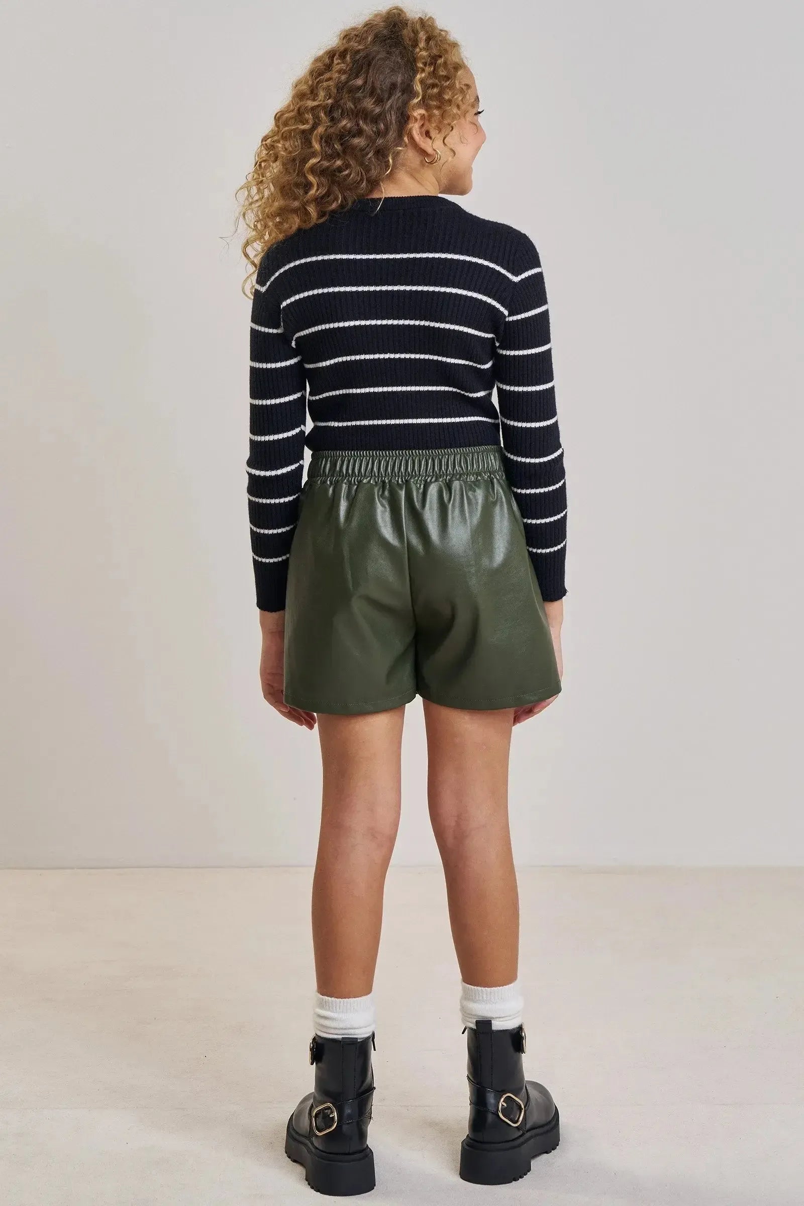 O short saia em couro sintético, é a escolha perfeita para as meninas que amam um look cheio de conforto, sem abrir mão do estilo no dia à dia! Disponível em duas cores super estilosas - verde e preto - ela é uma peça essencial, perfeita para montar diversos looks e deixar o inverno das pequenas ainda mais estiloso! O aviamento de metal, adiciona um charme especial à peça.