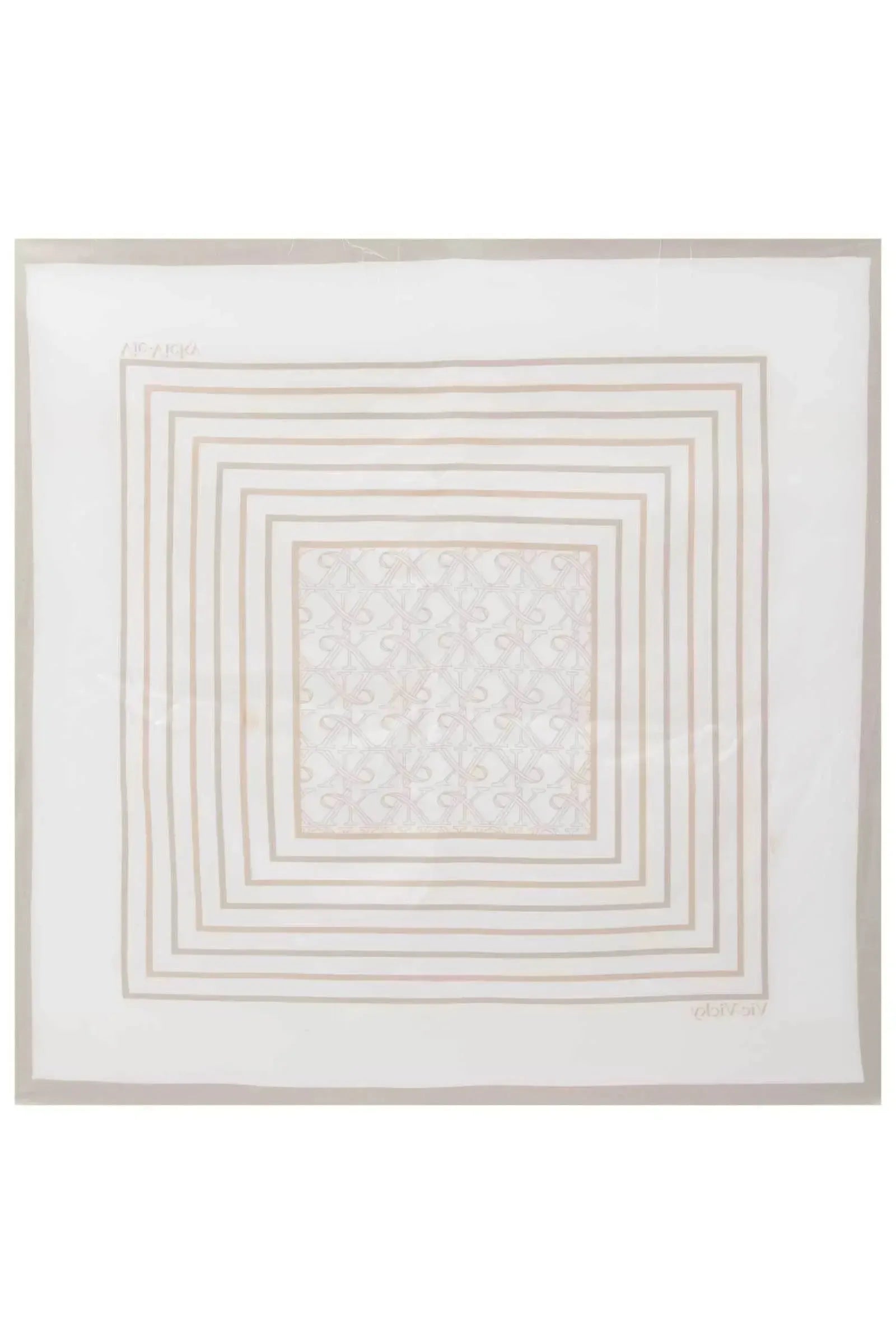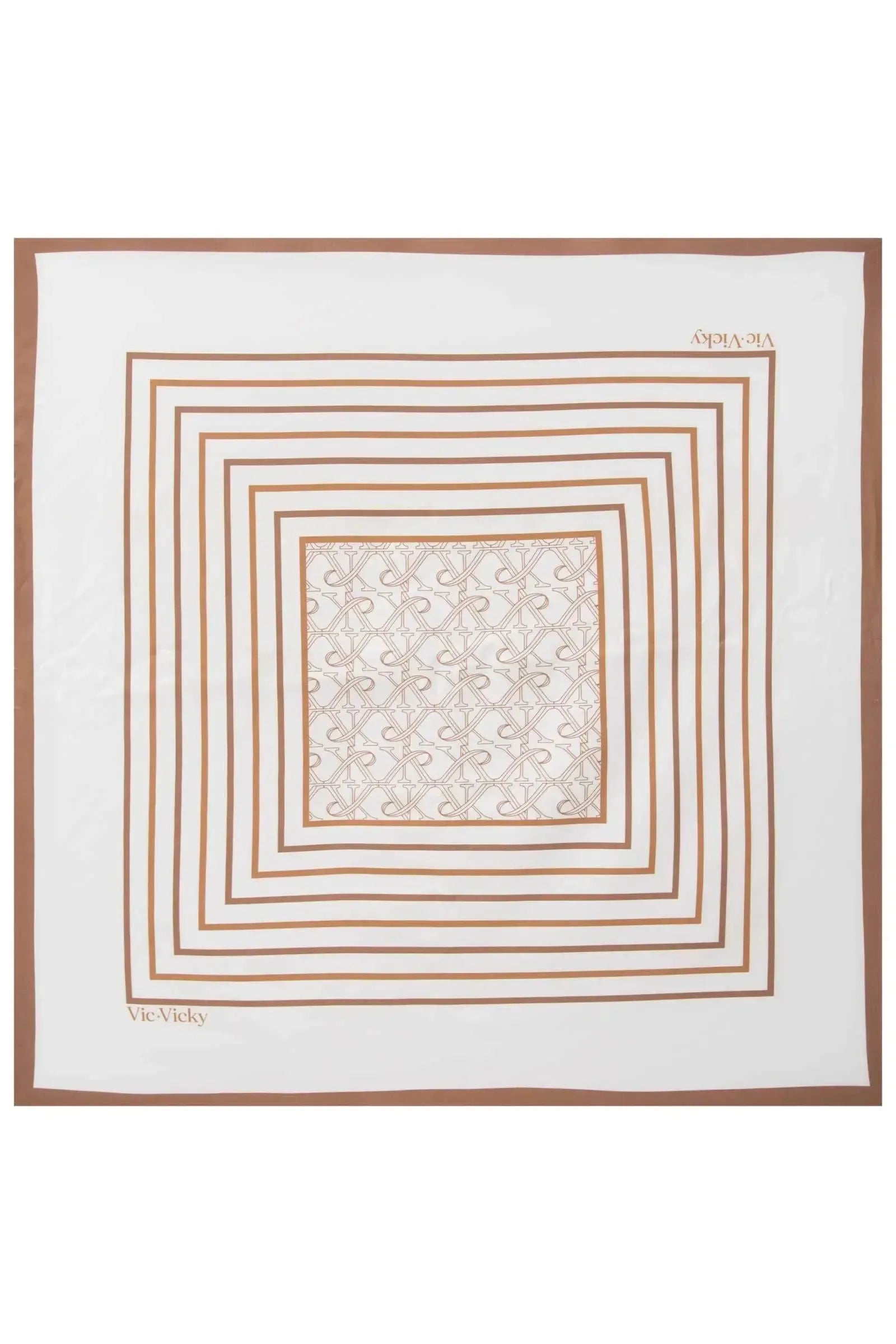 Adicione um toque de sofisticação e versatilidade ao seu visual com o Lenço em crepe. Confeccionado em tecido leve e fluido, este lenço apresenta um elegante padrão geométrico em tons terrosos, com múltiplos quadrados concêntricos que emolduram um delicado desenho central.