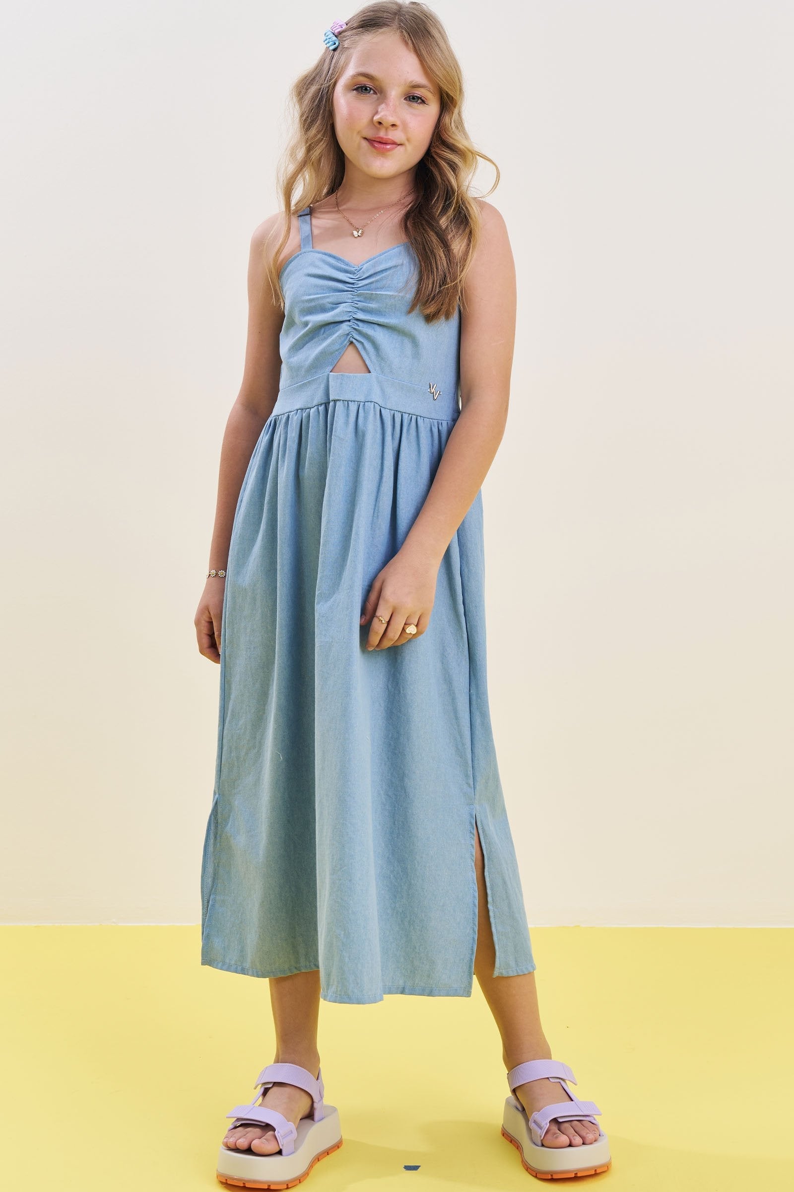 O vestido midi em chambray é uma peça extremamente confortável e versátil, perfeita para o dia a dia e ocasiões casuais. Disponível em uma cor super estilosa - azul - ideal para criar looks práticos e estilosos, proporcionando muito estilo e conforto. A plaquinha Vic&Vicky adiciona um charme especial à peça.