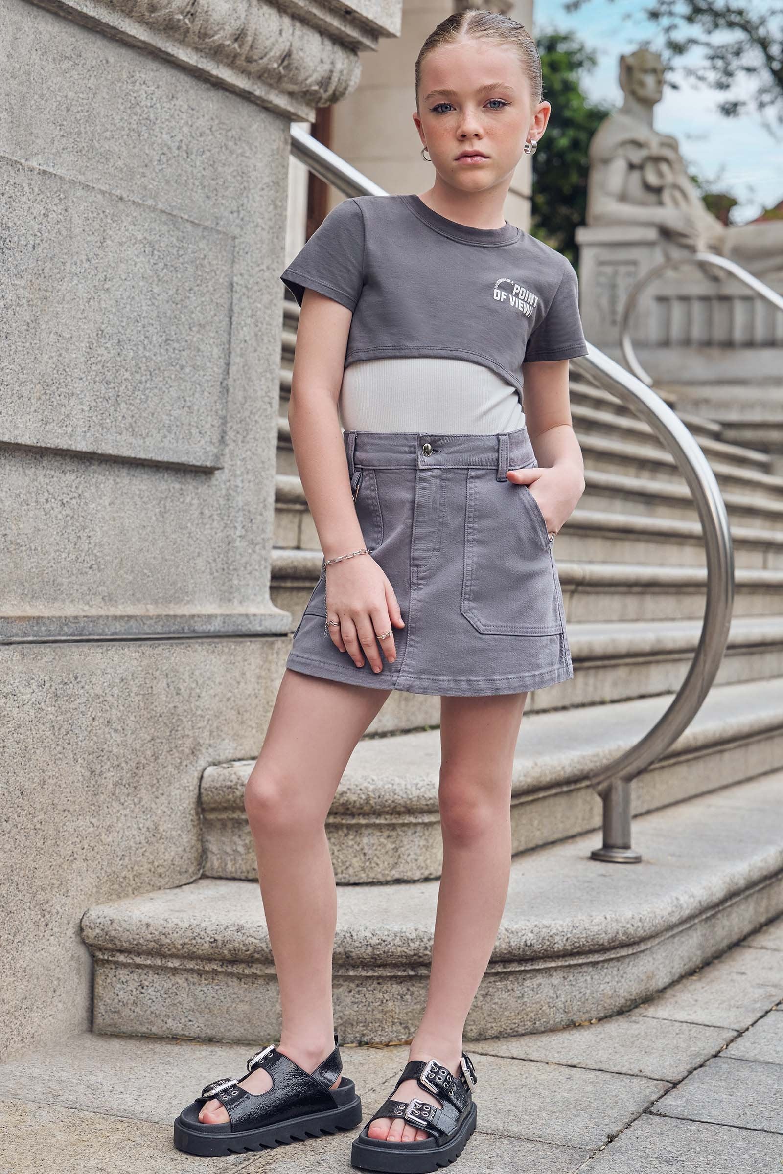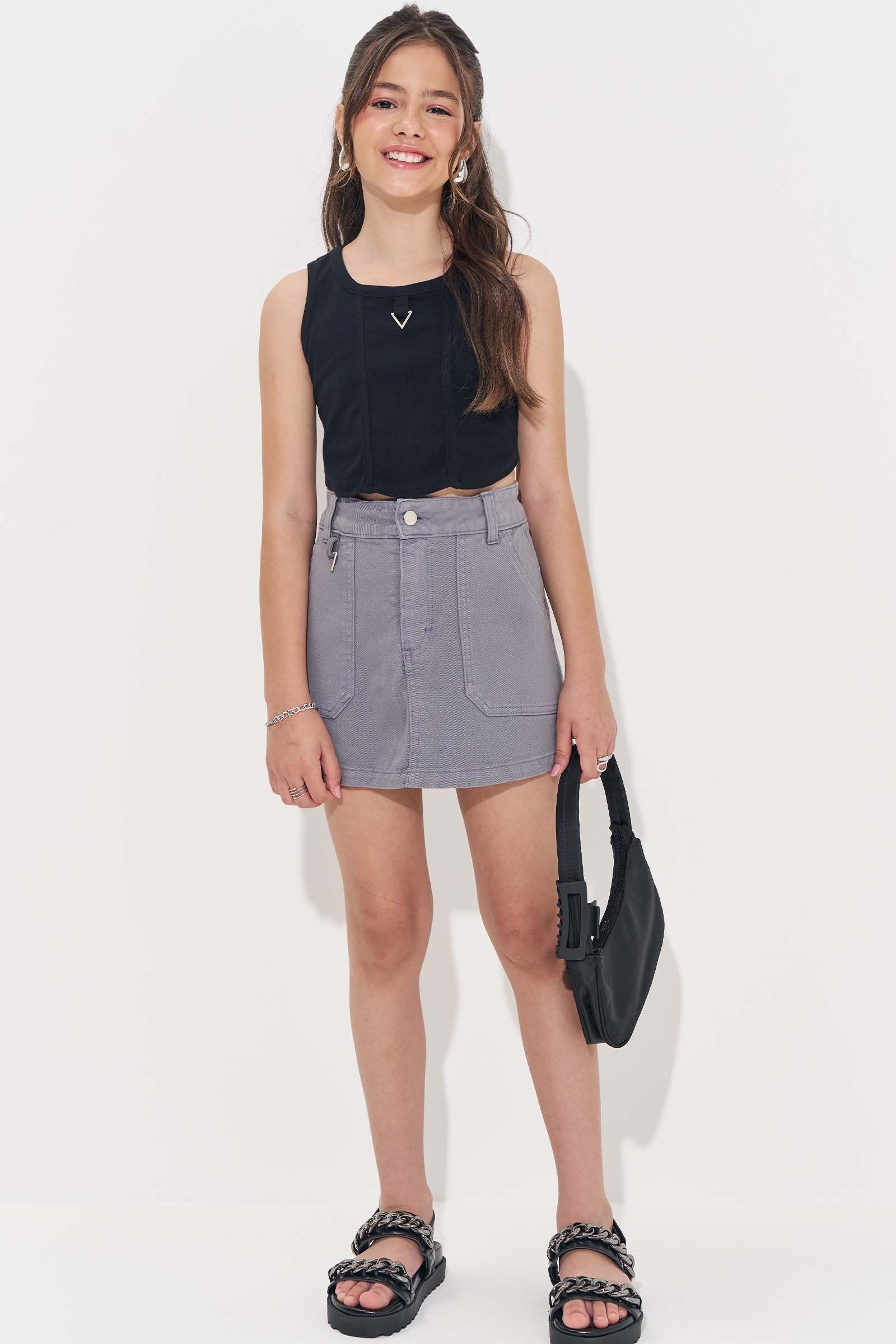 A saia em sarja com elastano é uma peça extremamente confortável e versátil, perfeita para diversas ocasiões. Disponível em três cores super estilosas - bege cinza e preto - ideal para criar looks práticos e estilosos, proporcionando muito estilo e conforto.