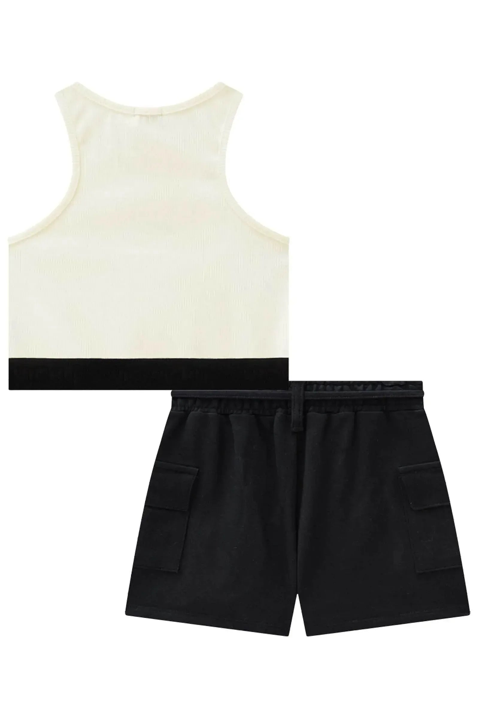Conjunto de Cropped em Canelado Liz e Shorts em Moletom sem Pelúcia 86923 Vic&Vicky Teen Menina