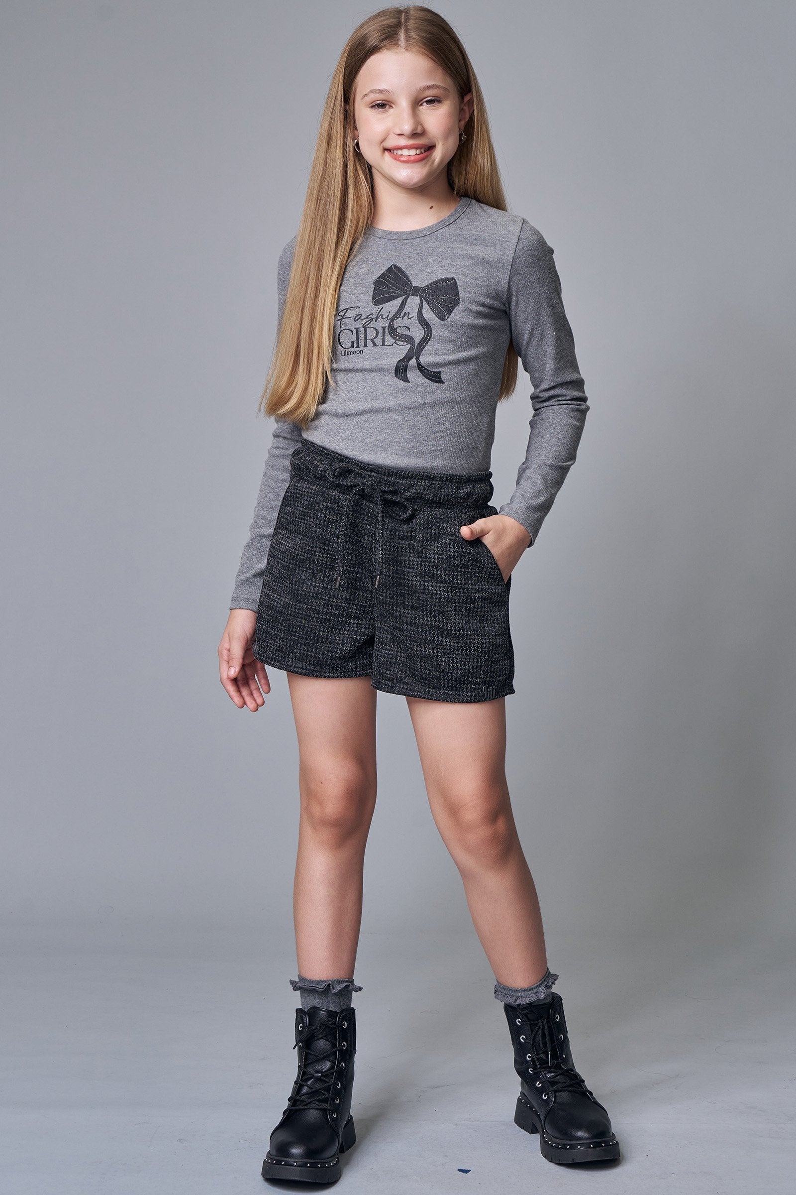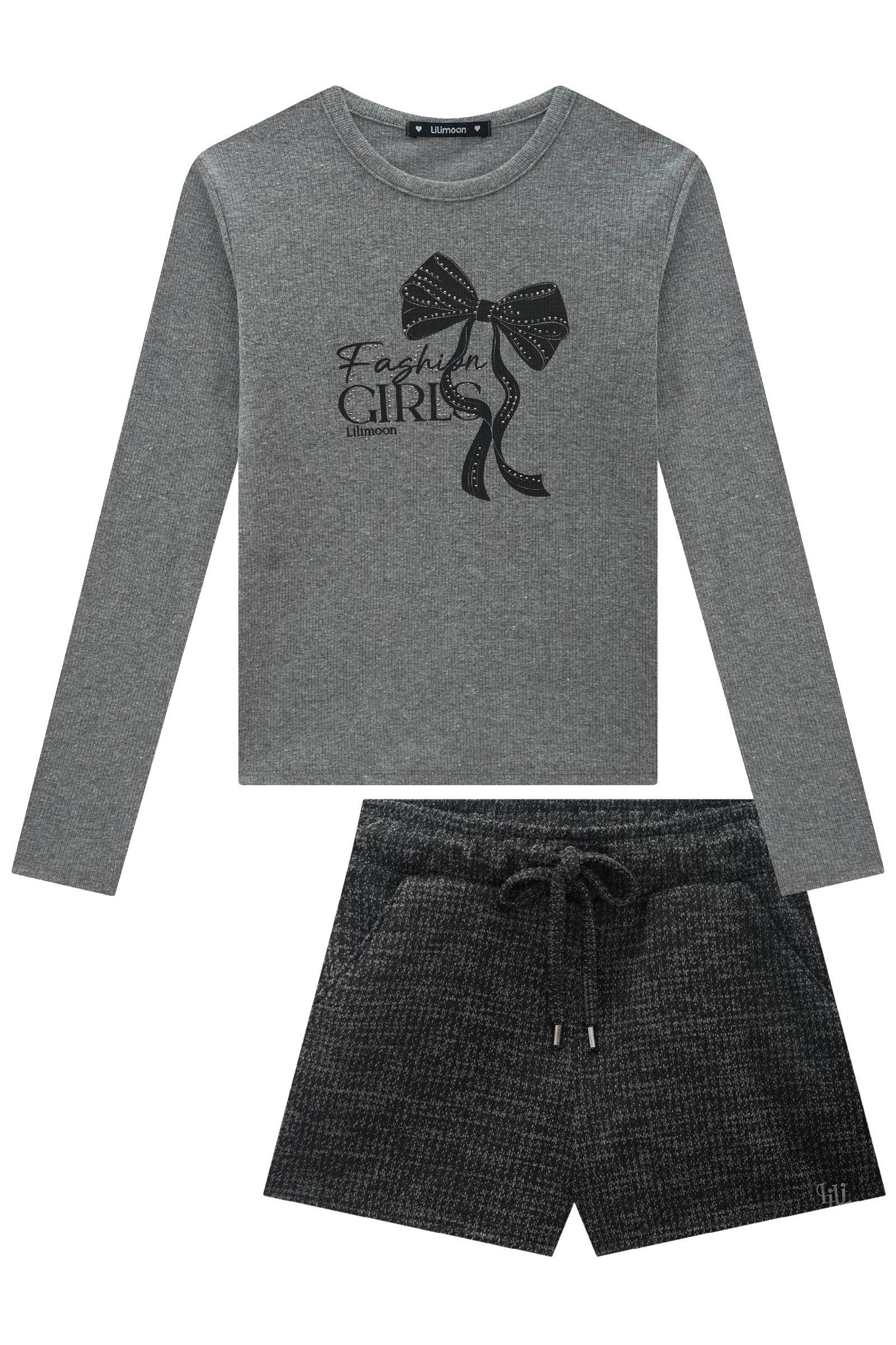 Conjunto de Blusa em Canelado Liz e Shorts em Malha Tweed Drika 91769 Lilimoon Teen Menina