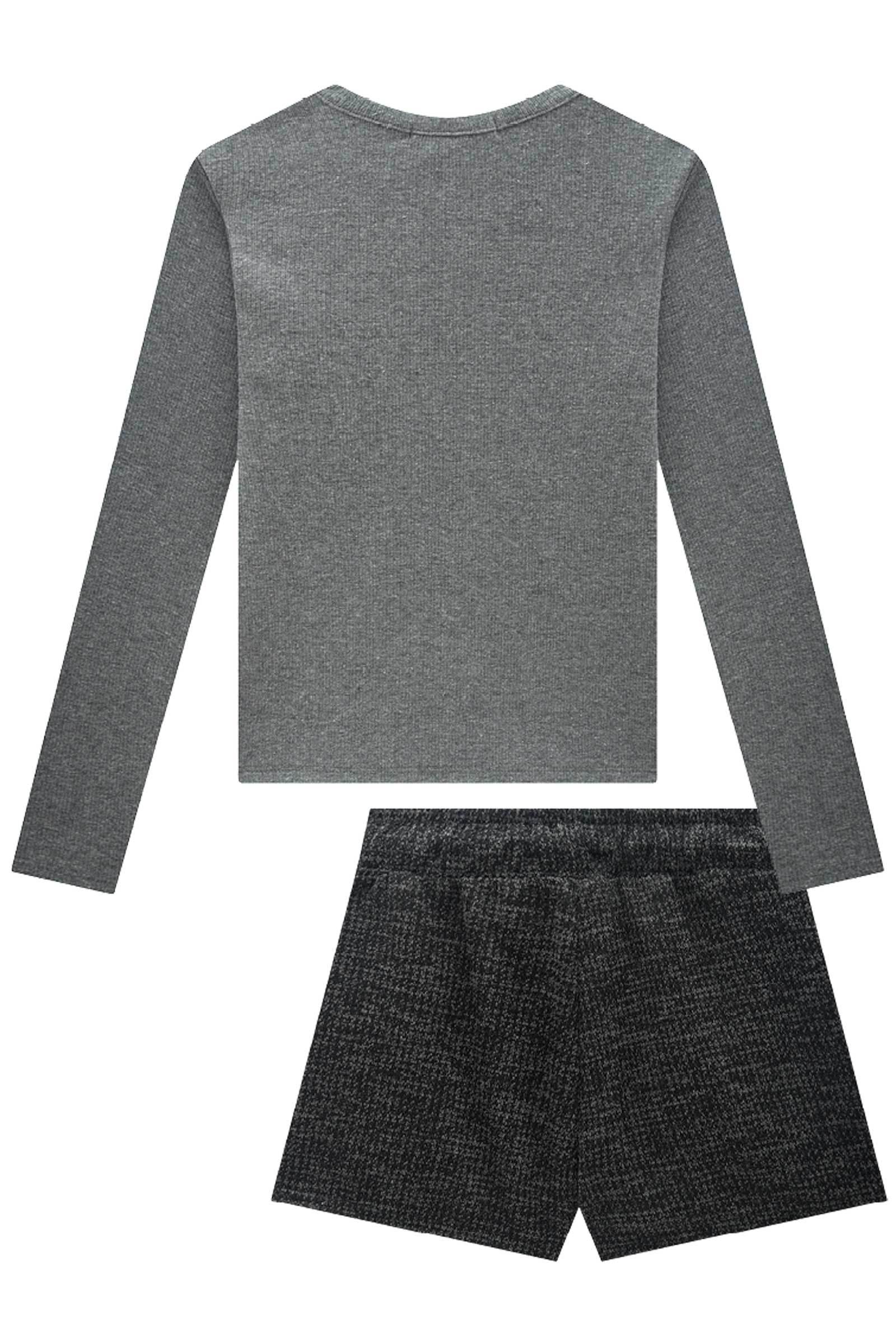 O conjunto de blusa em canelado liz e shorts em malha tweed drika, é a escolha perfeita para as meninas que amam um look cheio de conforto, sem abrir mão do estilo no dia à dia! Disponível em uma cor super estilosa - cinza - ela é uma peça essencial, perfeita para montar diversos looks e deixar o inverno das pequenas ainda mais estiloso! A estampa divertida, adiciona um charme especial à peça.