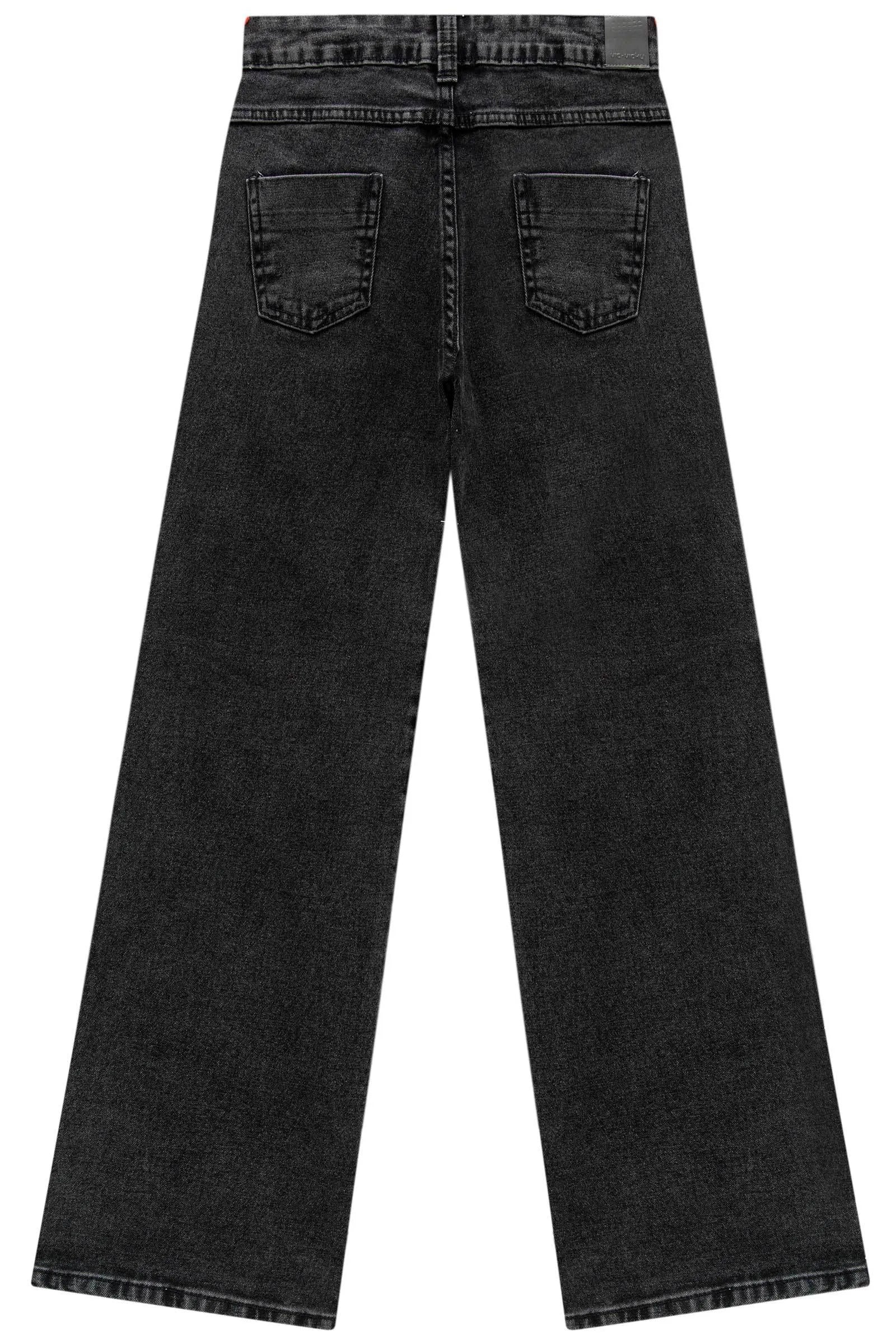 A calça wide leg em jeans com elastano, é uma peça delicada e cheia de charme, perfeita para as meninas que amam um look cheio de estilo e personalidade! disponível em uma cor super estilosa - preto - ela oferece um toque super macio e confortável, ideal para o dia a dia e diversas ocasiões.